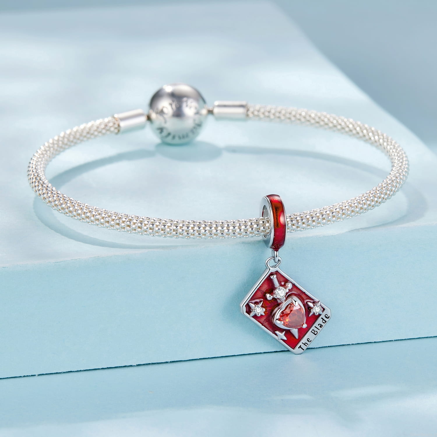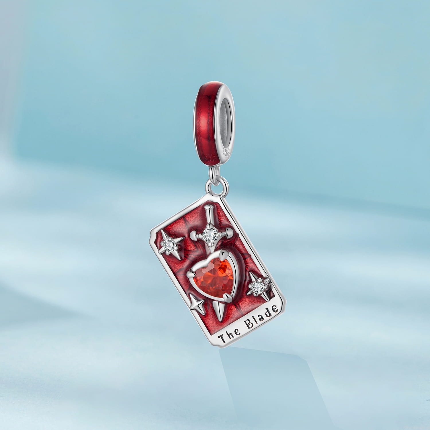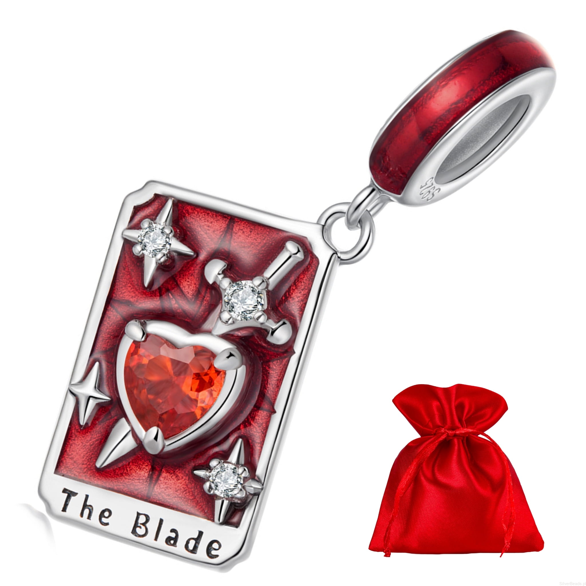 Srebrna zawieszka charms: karta Tarota ostrze.