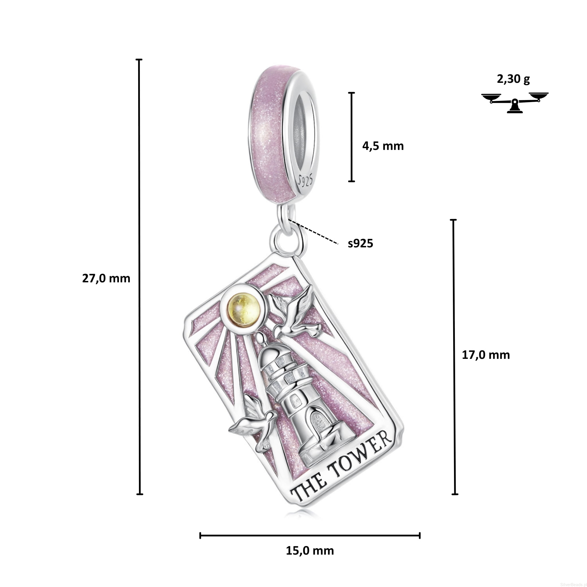 Karta Tarota WIEŻA charms srebro 925 zawieszka do bransoletki