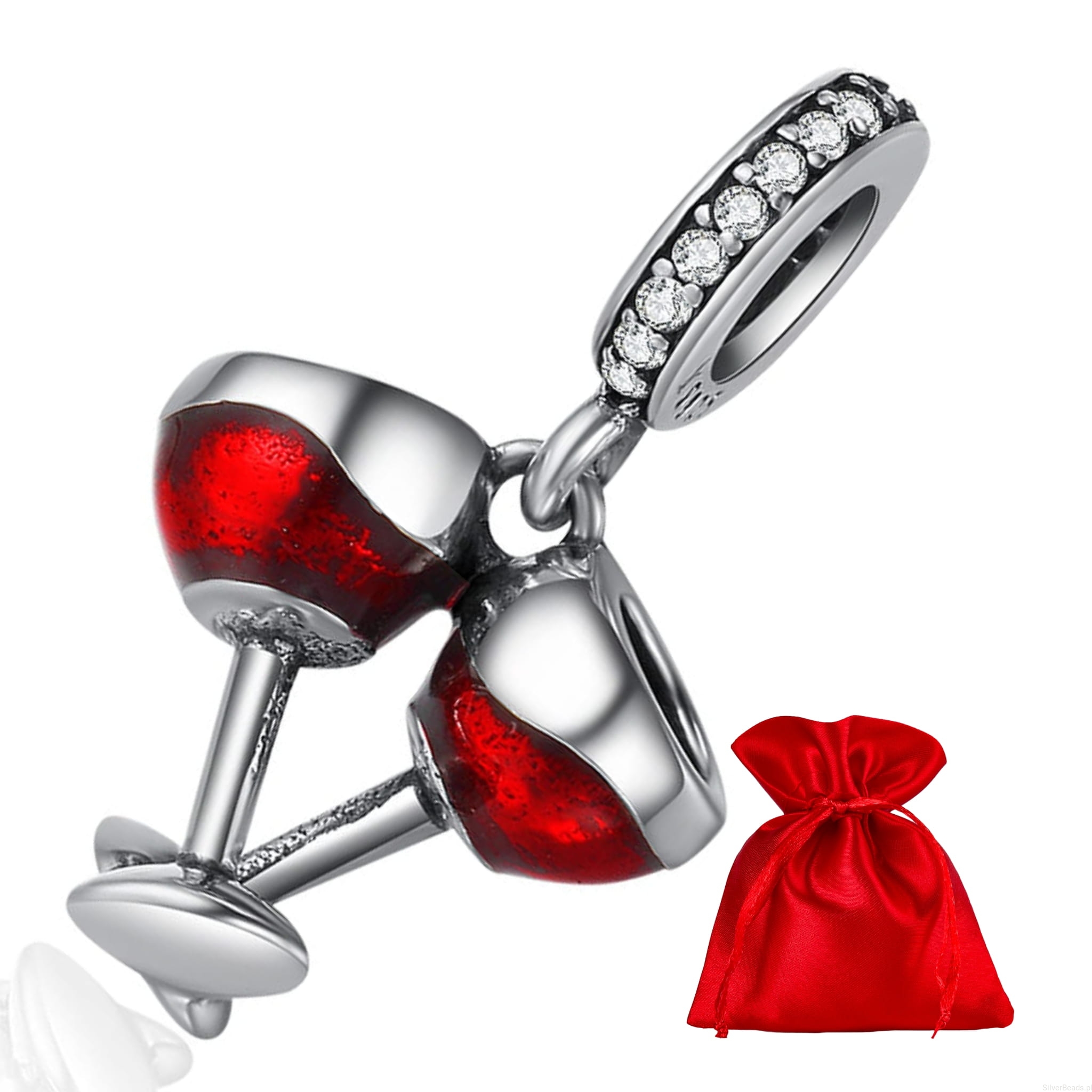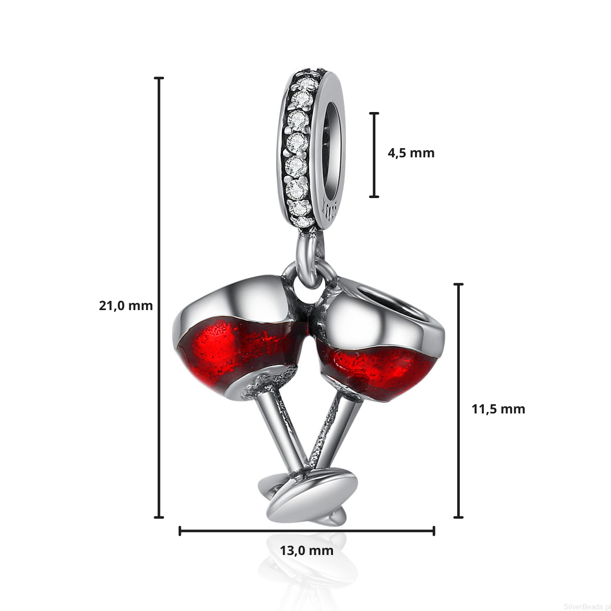 Kieliszki czerwonego wina srebrny charms zawieszka srebro 925