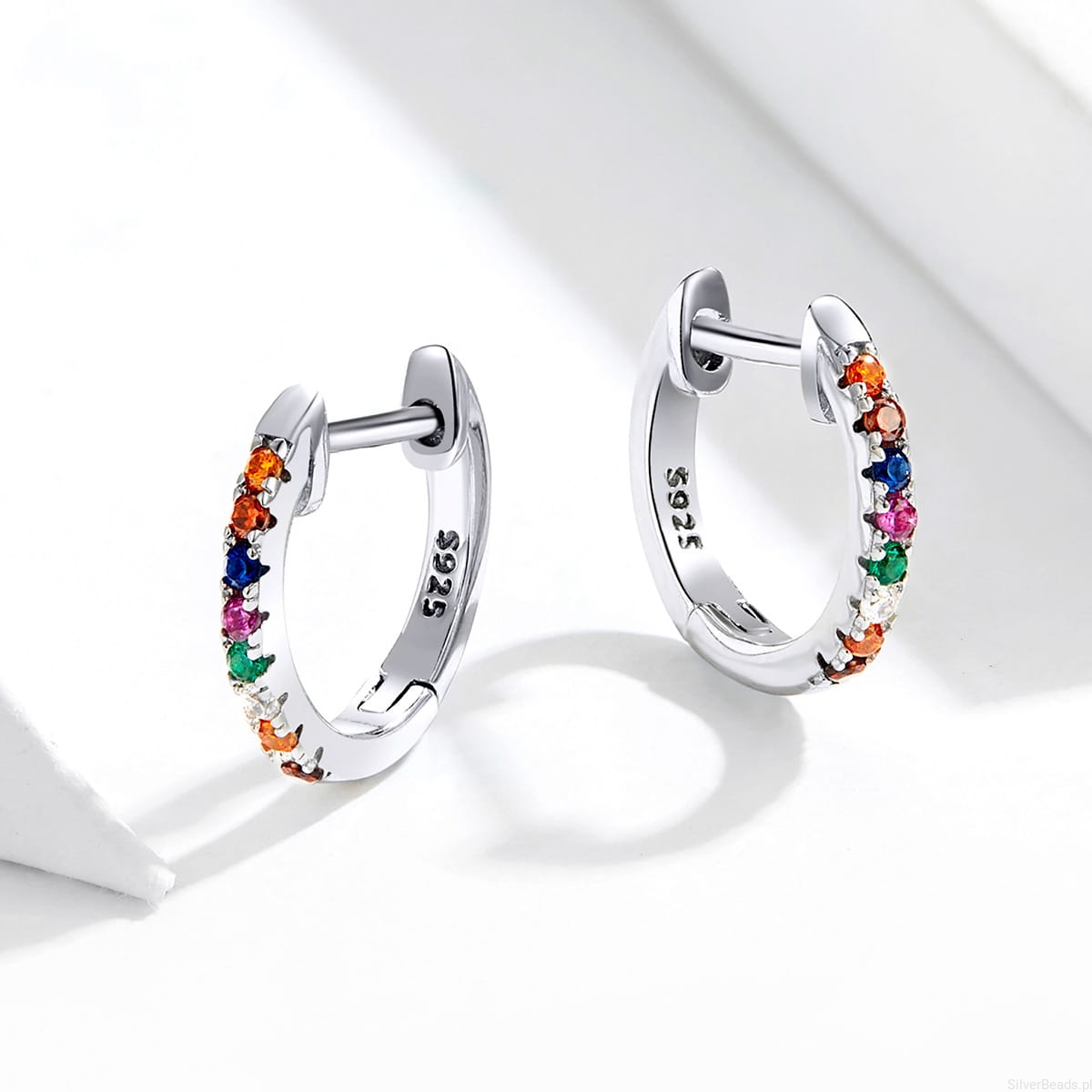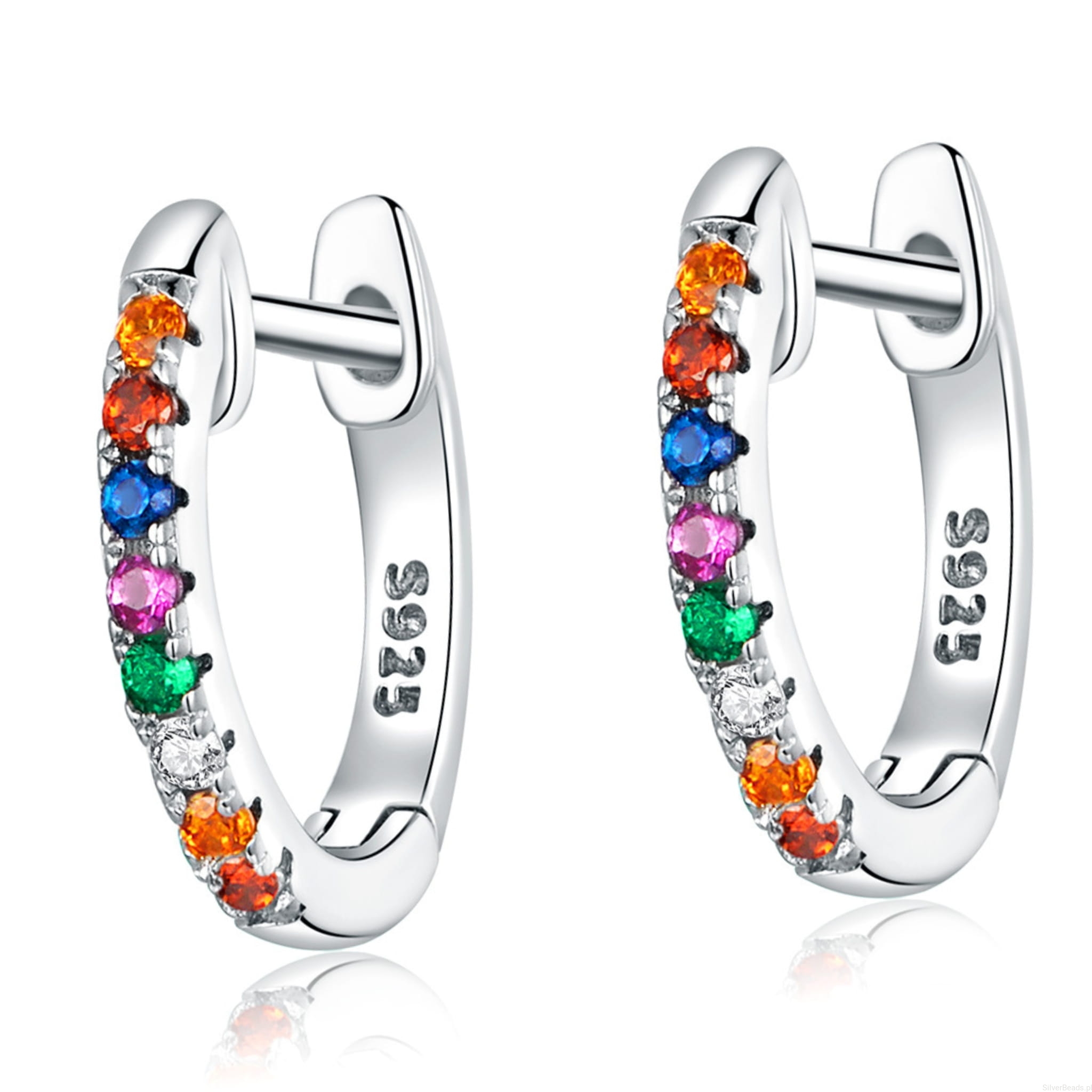 Srebrne kolczyki: koła w kolorowe kryształy.