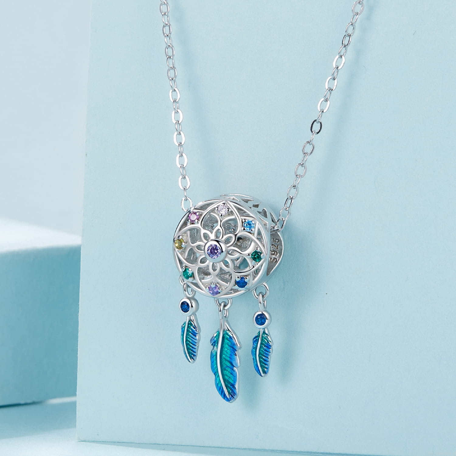 Łapacz snów w kryształki w kolorach tęczy srebrny charms koralik beads
