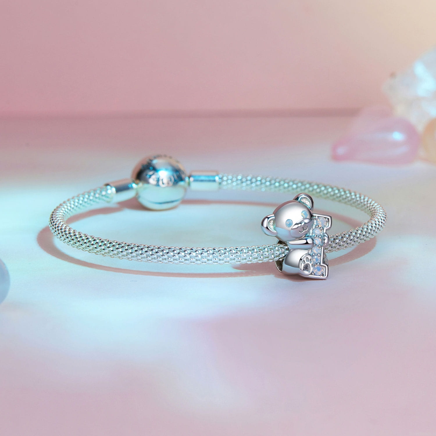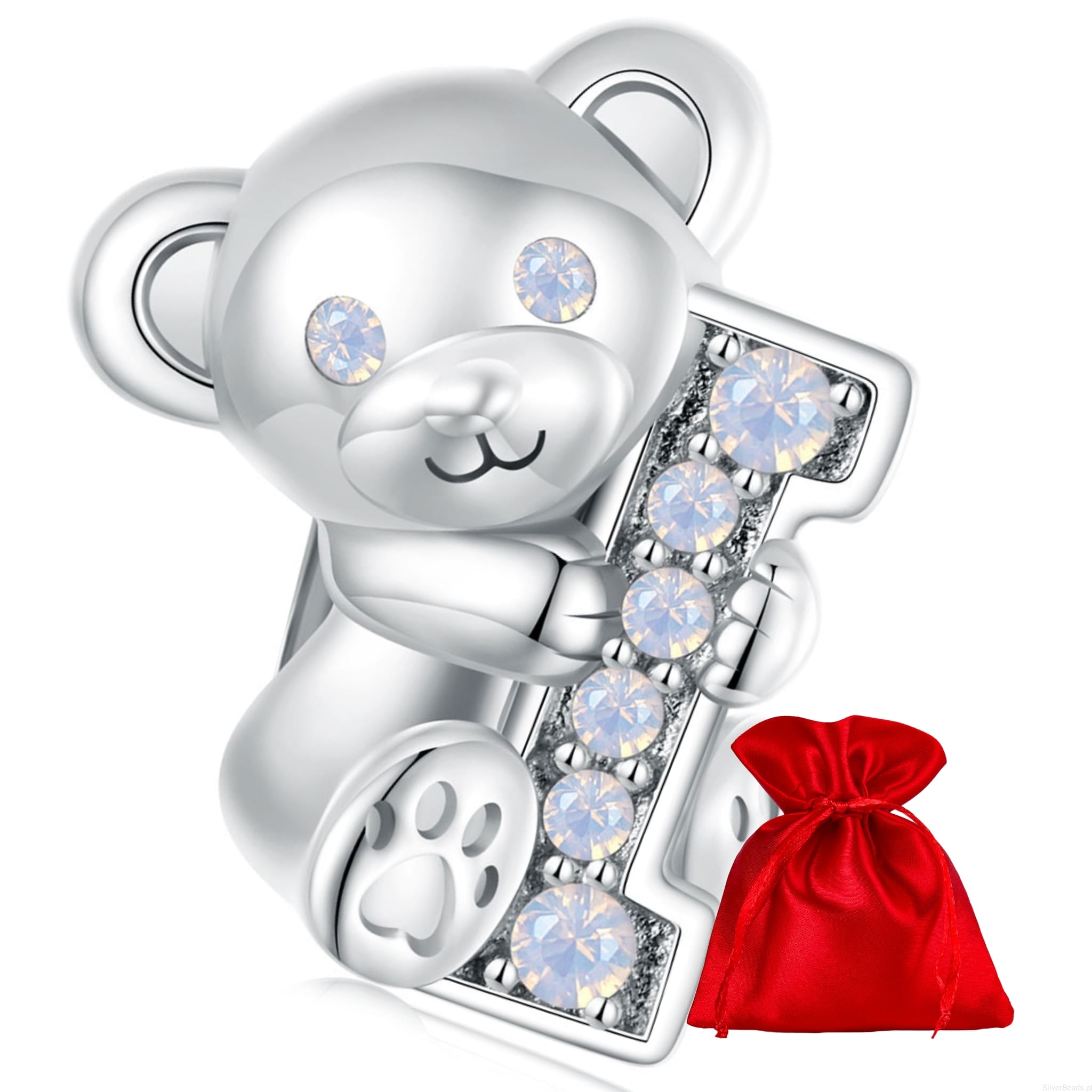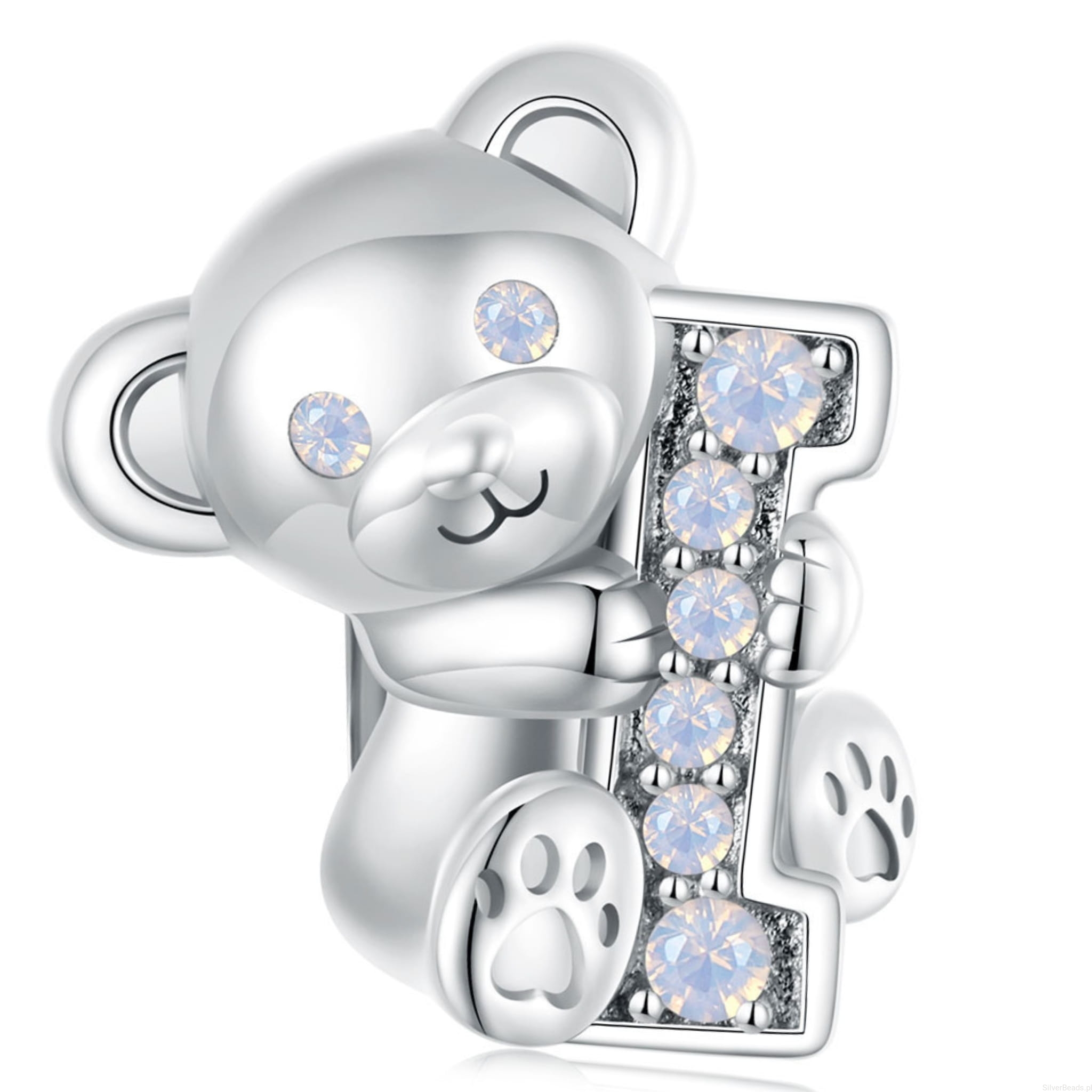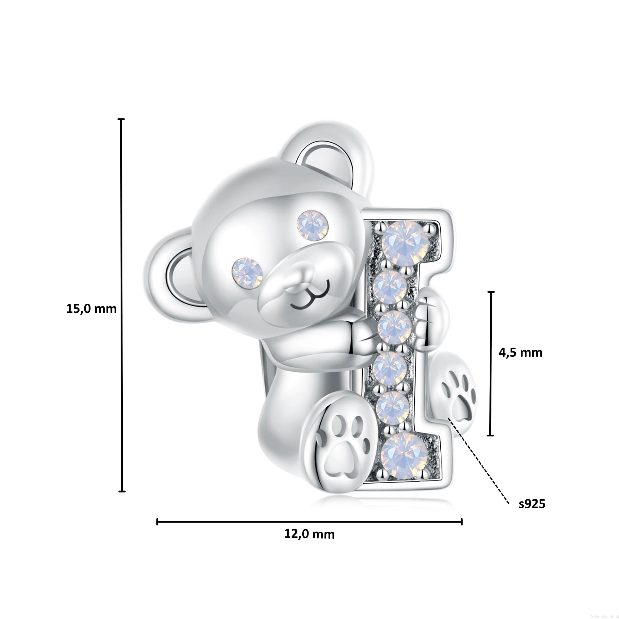 Miś trzymający literkę ,,I" charms koralik beads srebro 925