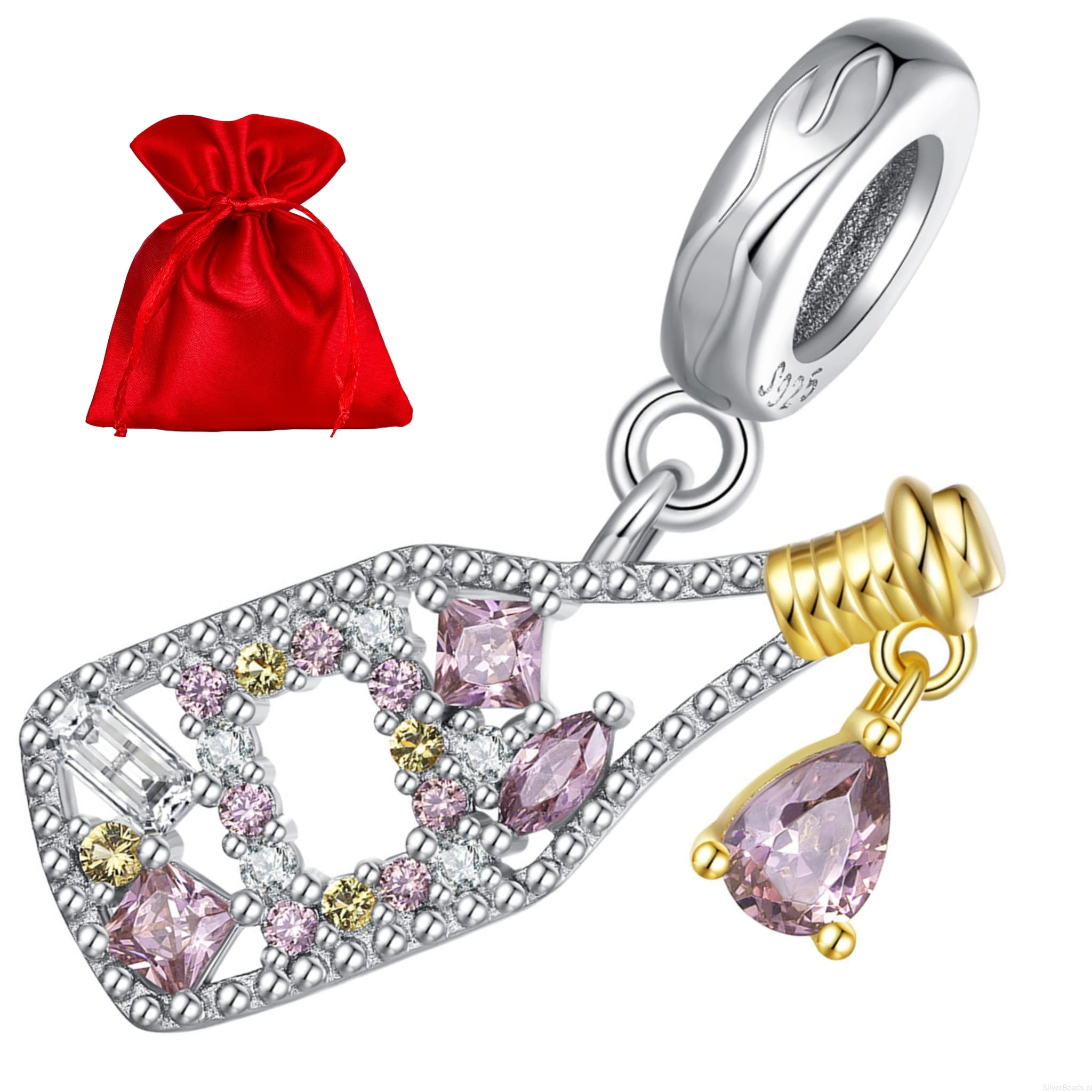 Pozłacany szampan w kryształy srebrny charms zawieszka beads