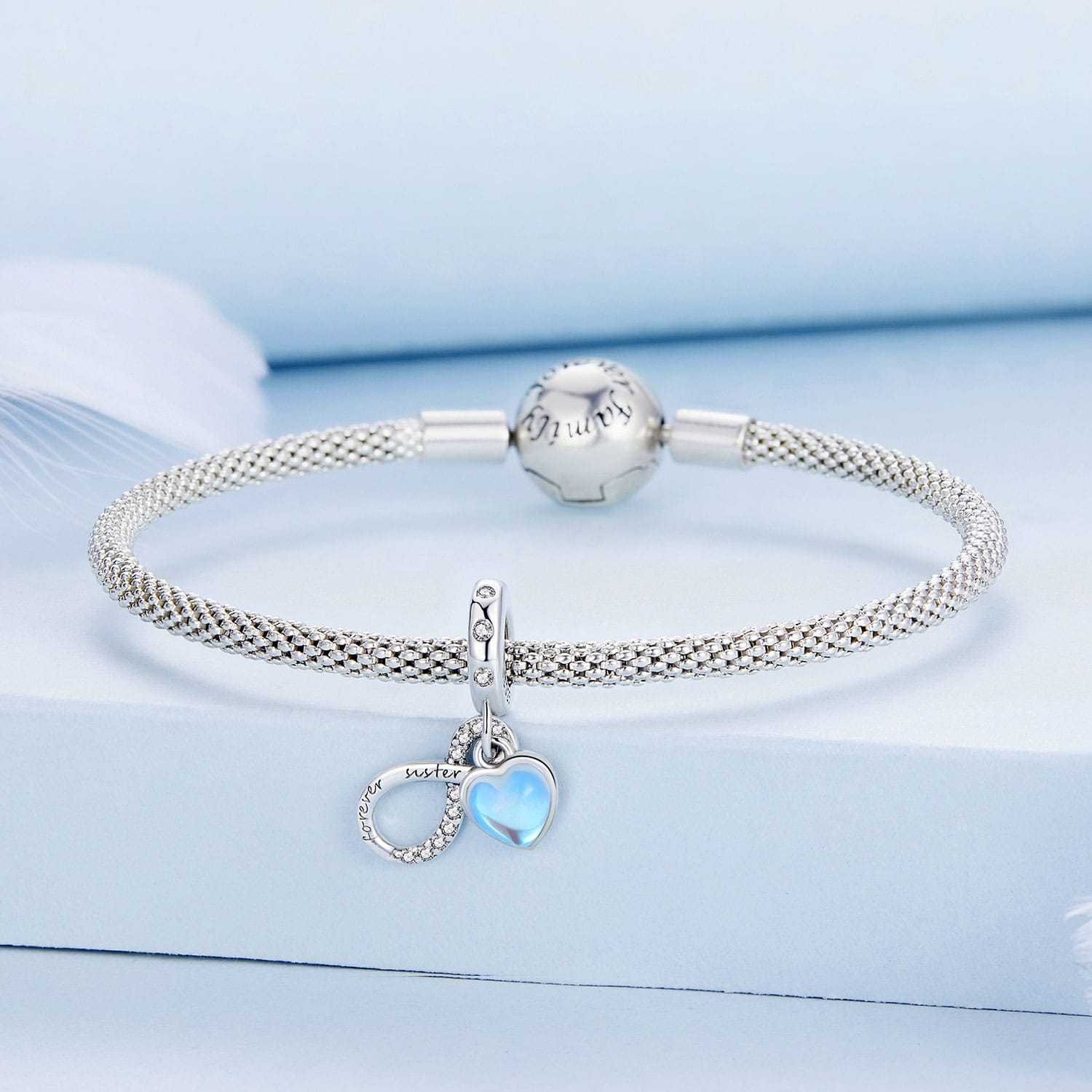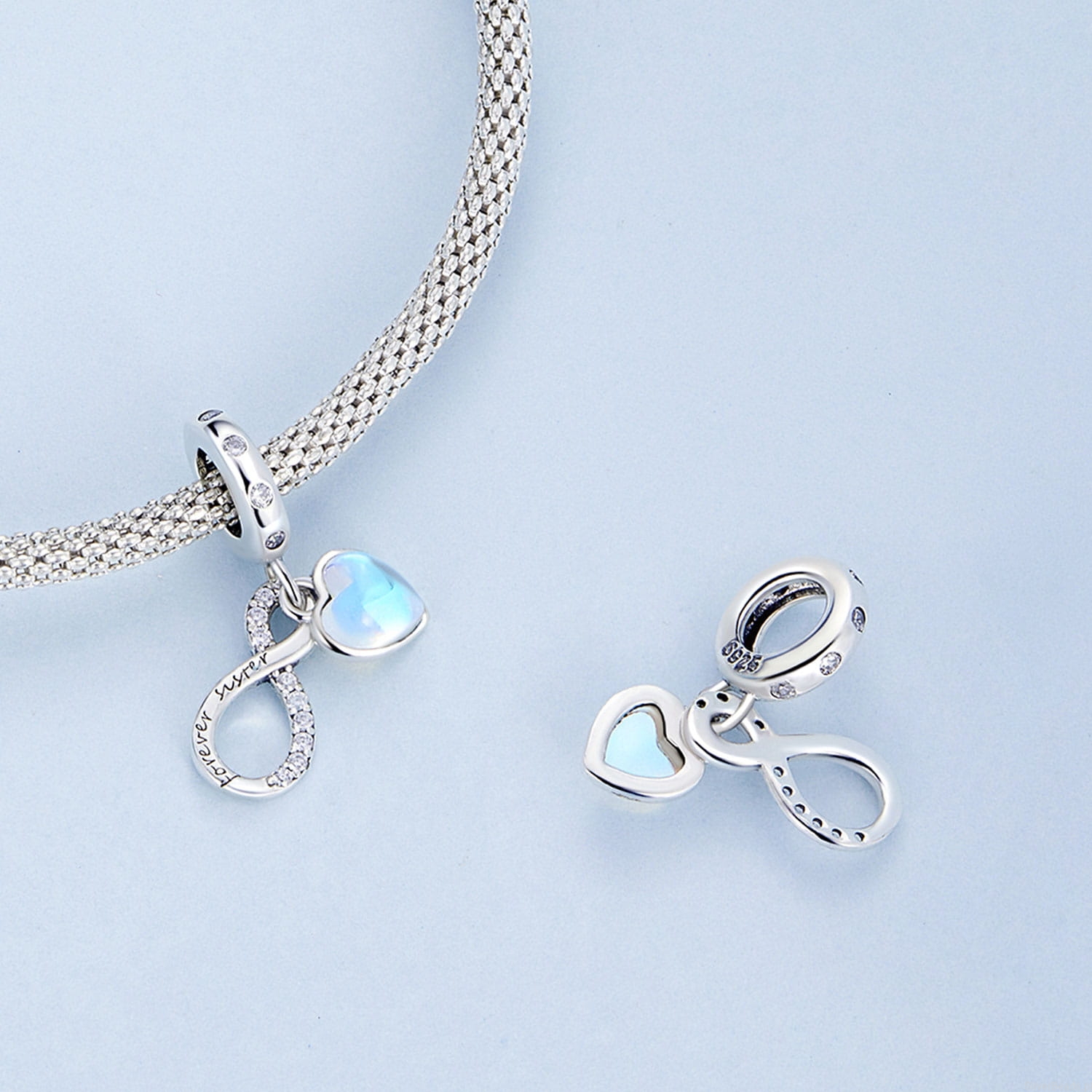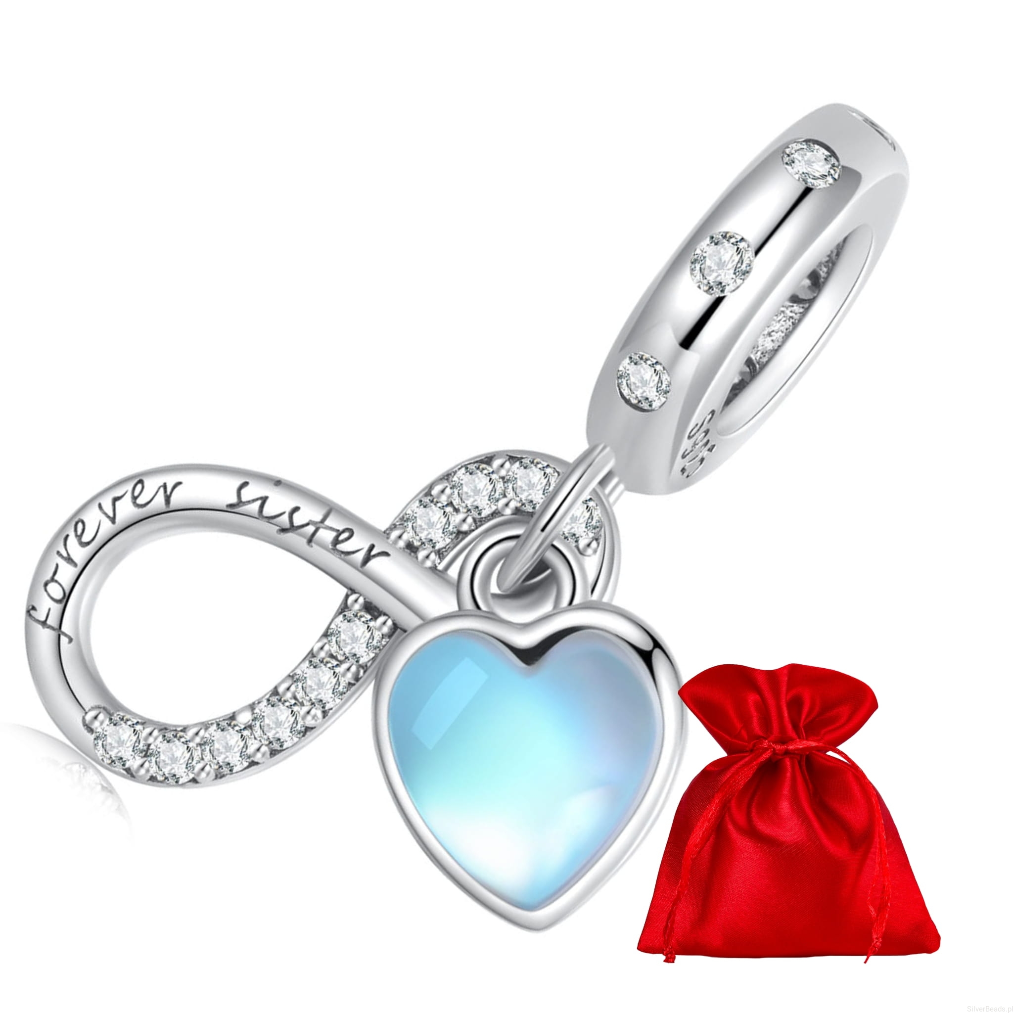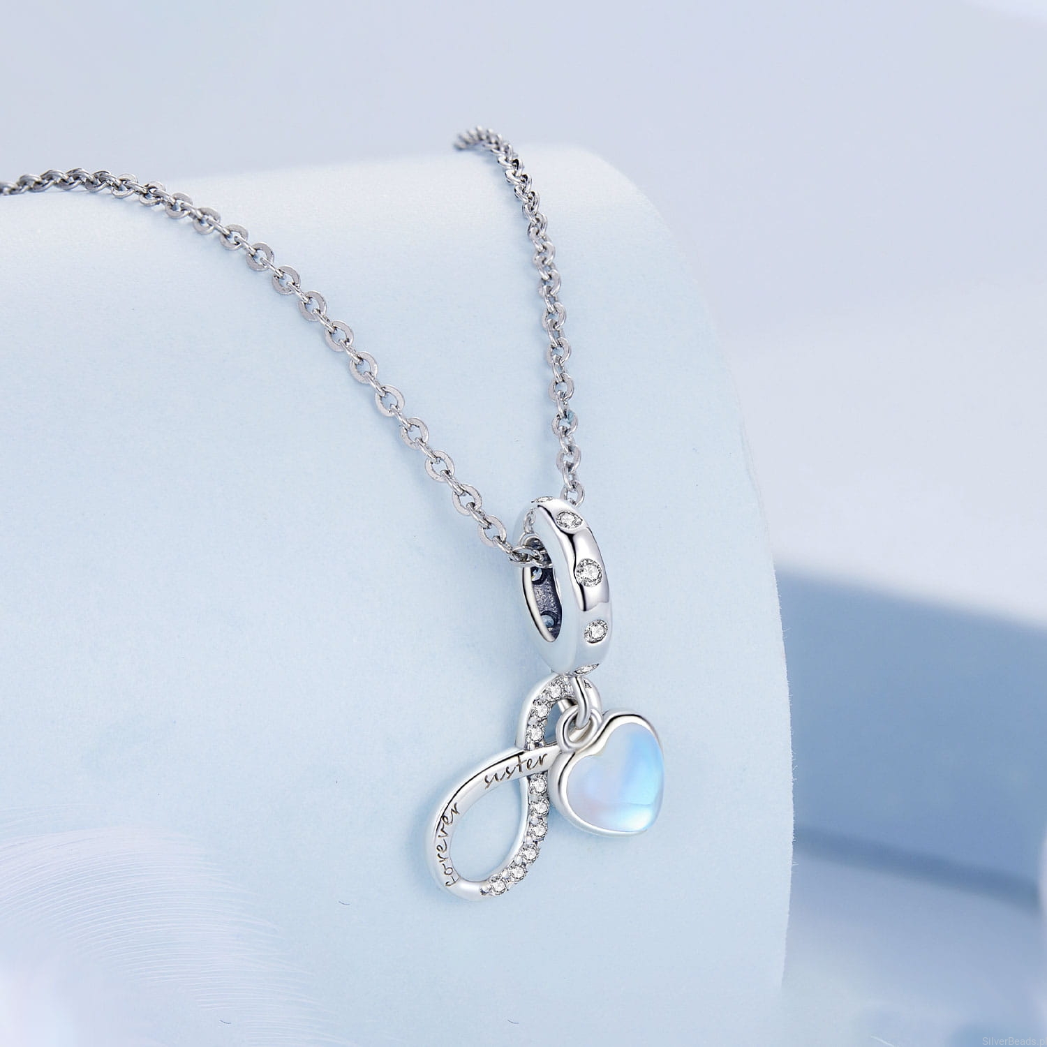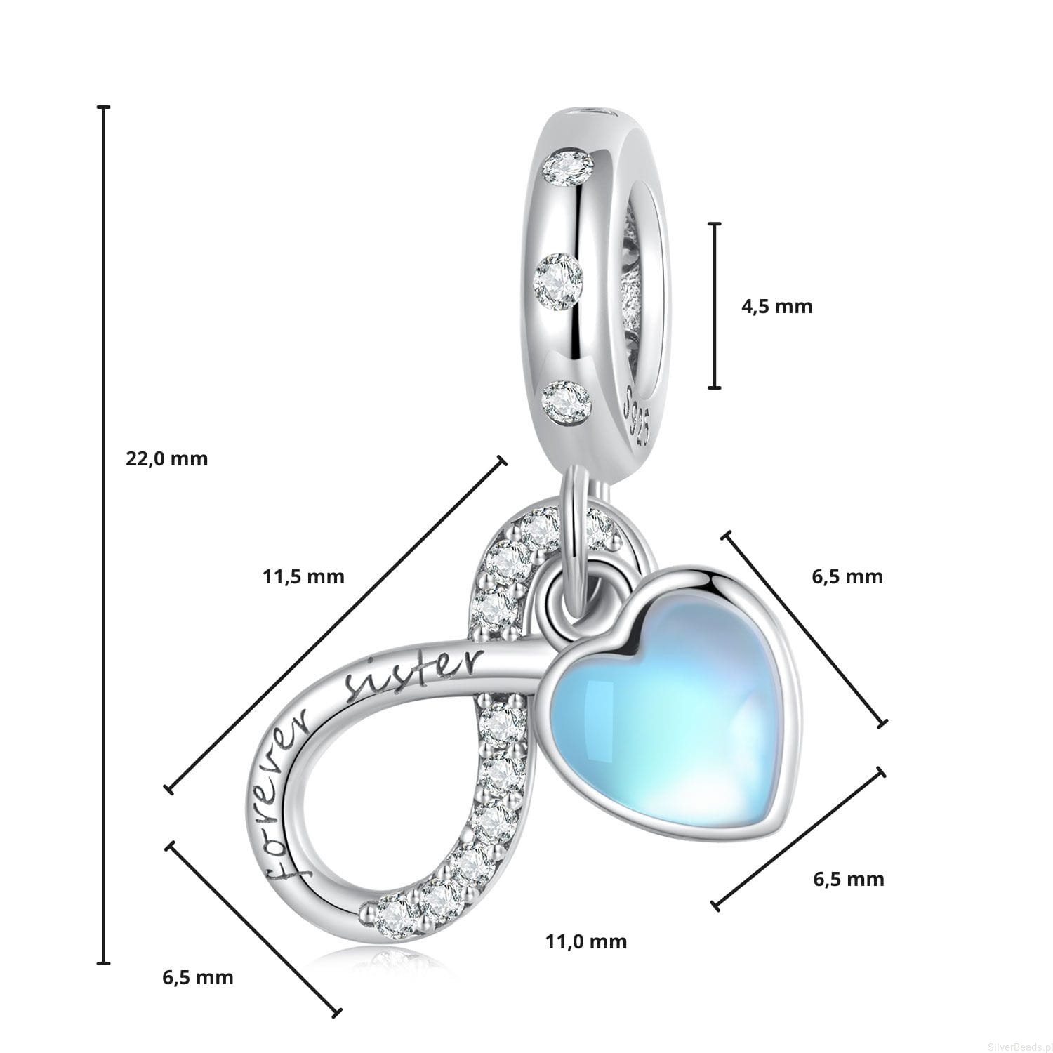 Serce ze znakiem nieskończoności ,,Siostry na zawsze" charms zawieszka srebro 925