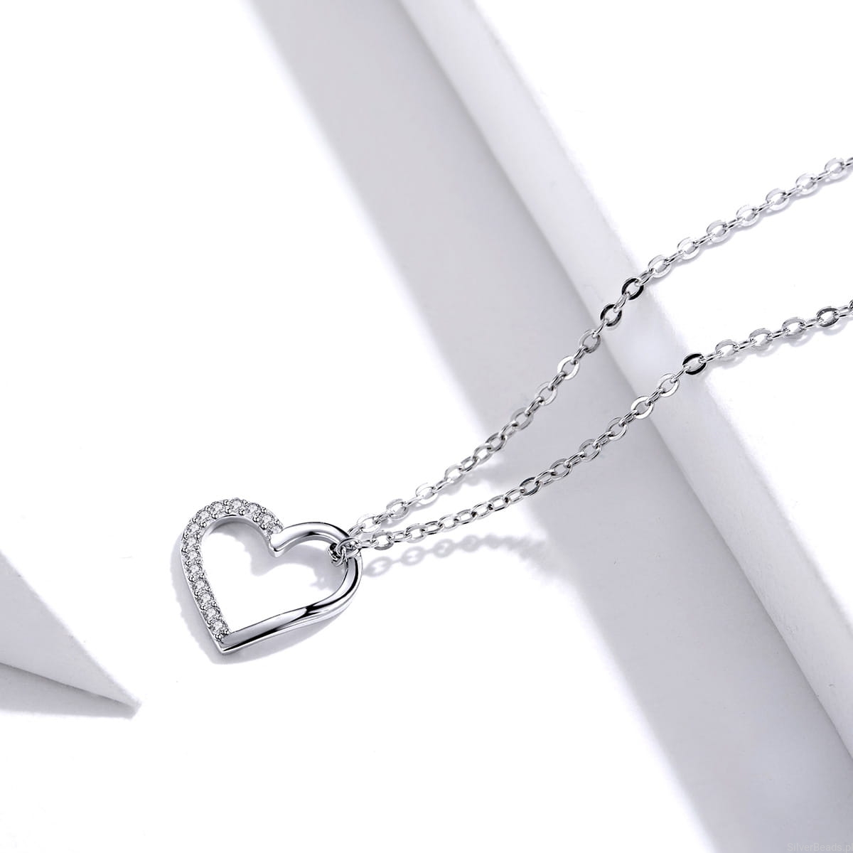 Srebrny naszyjnik: serduszko ozdobione kryształkami.