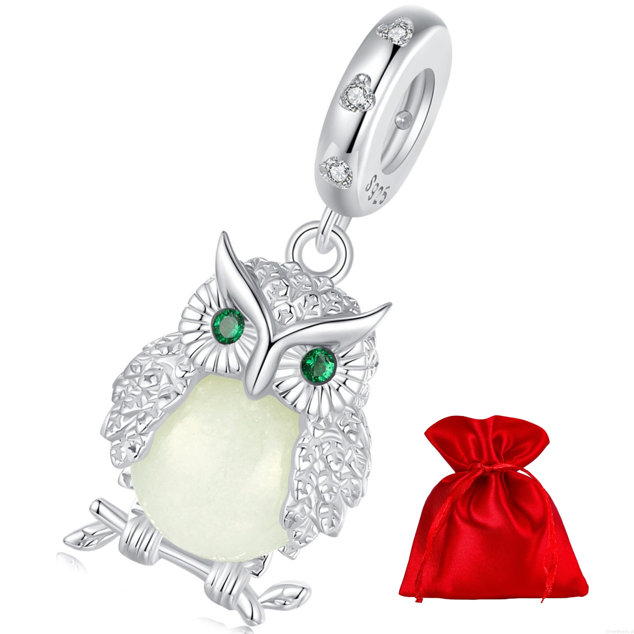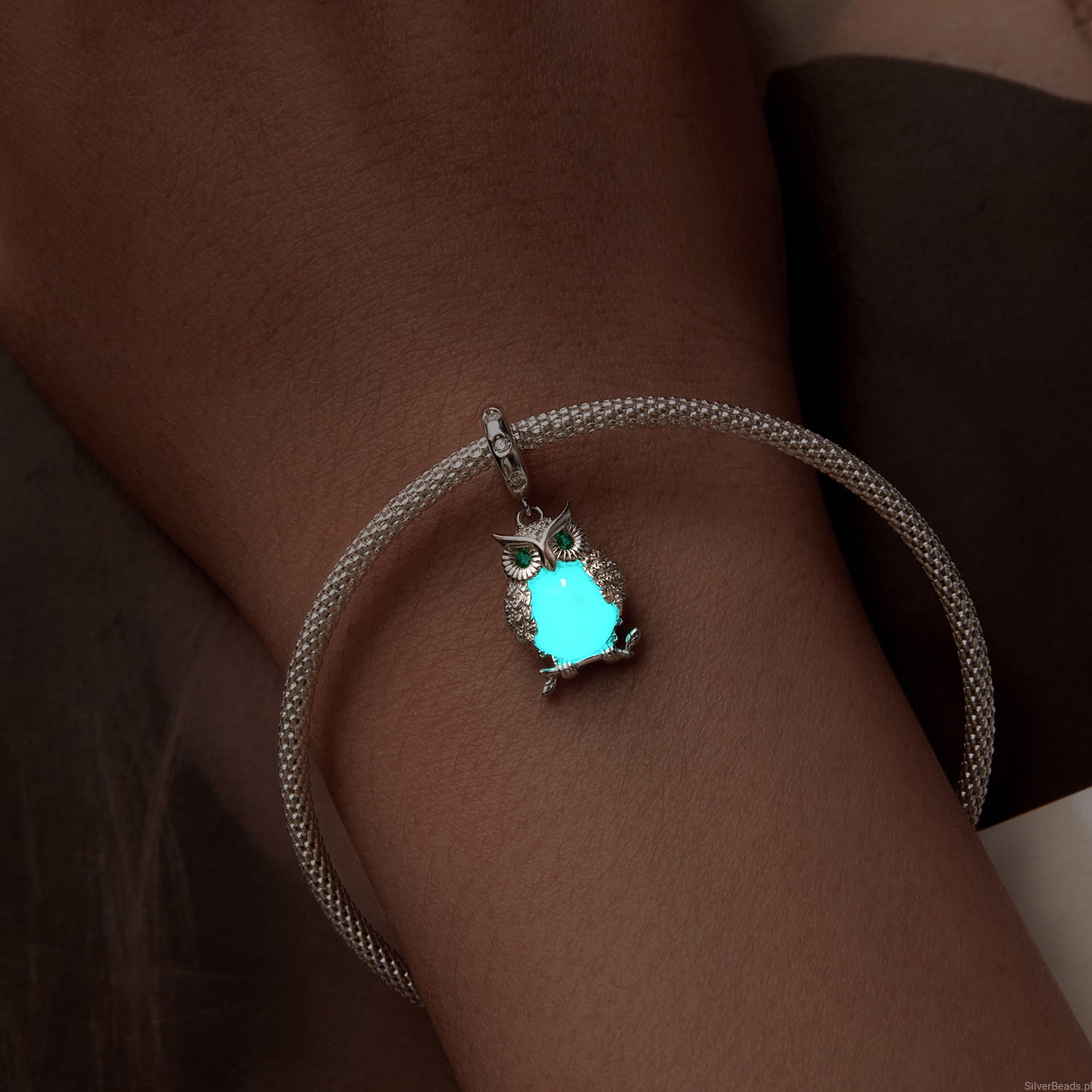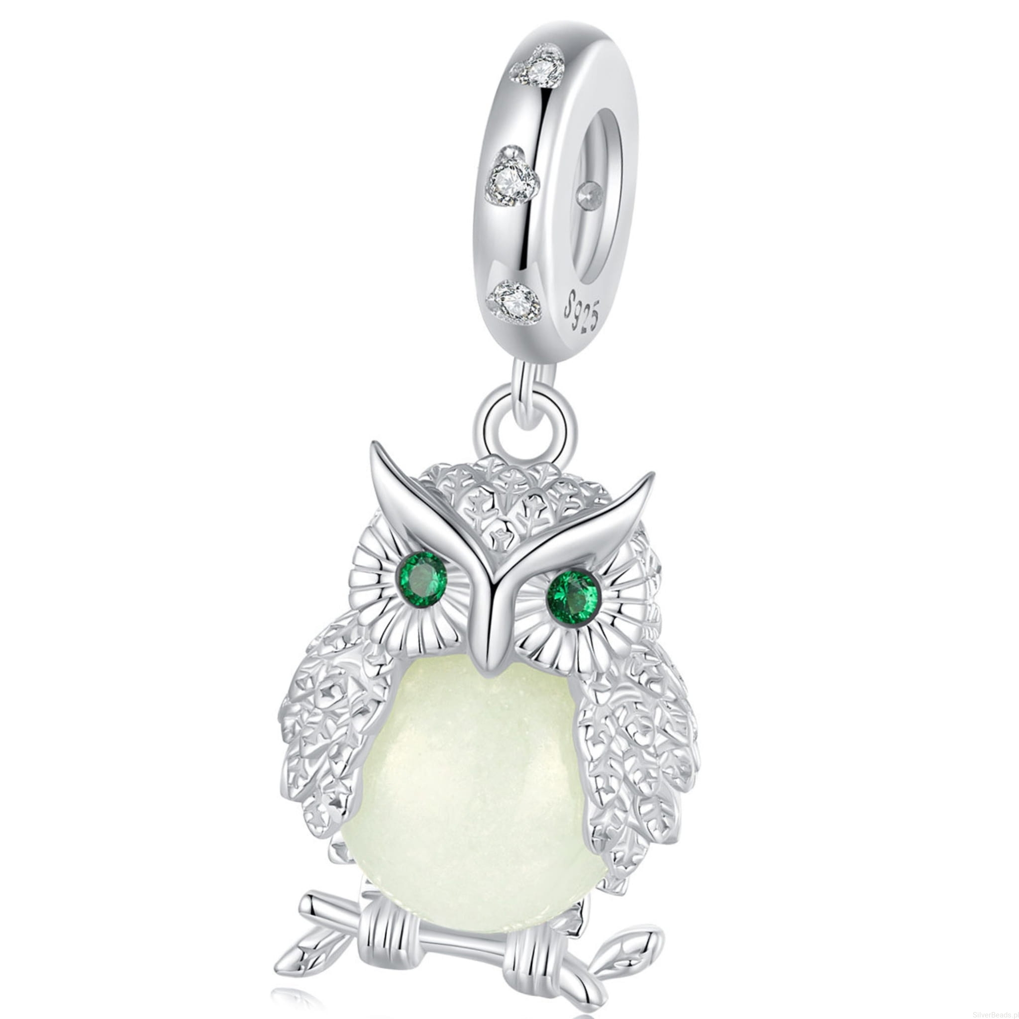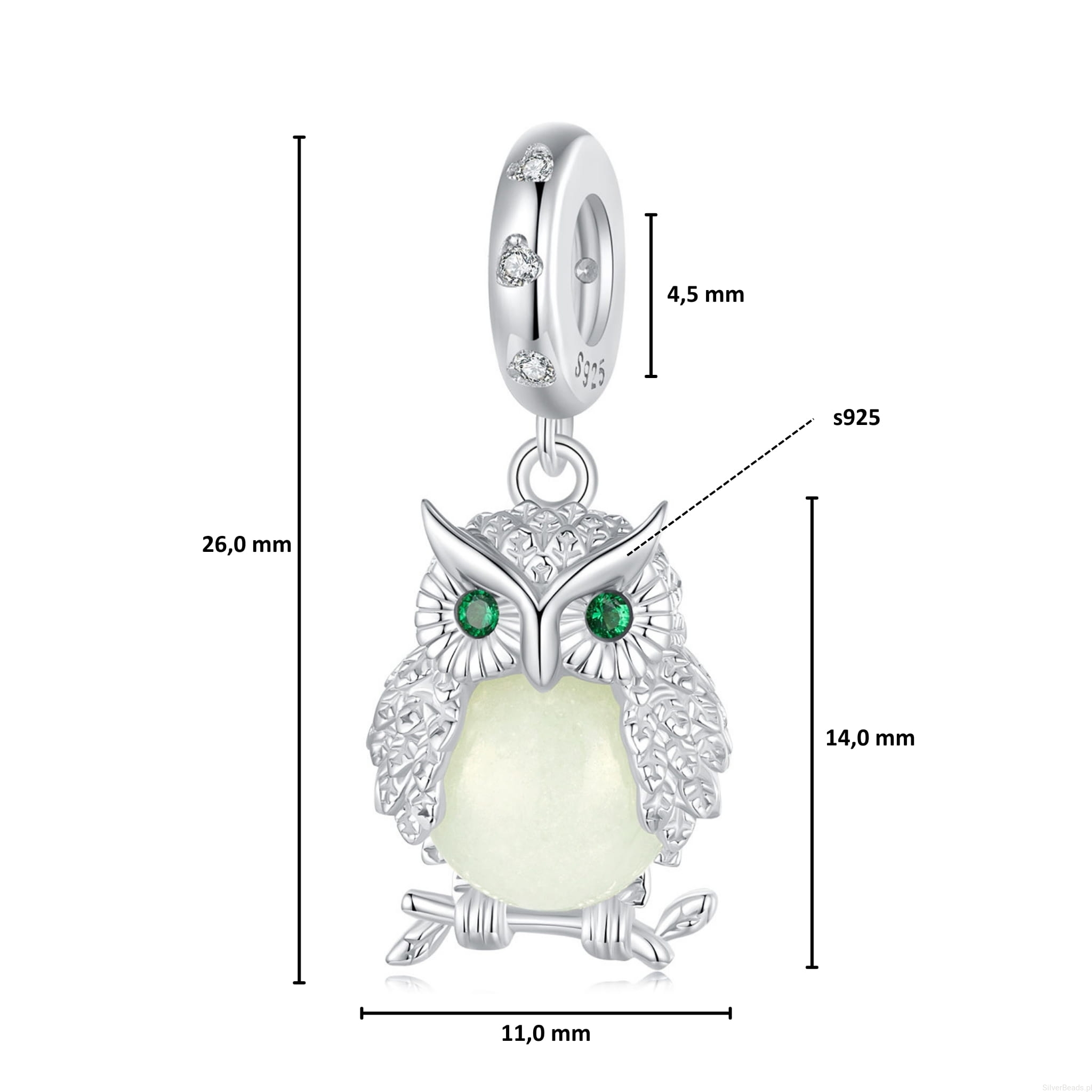Sowa świecąca w ciemności srebrny charms koralik beads