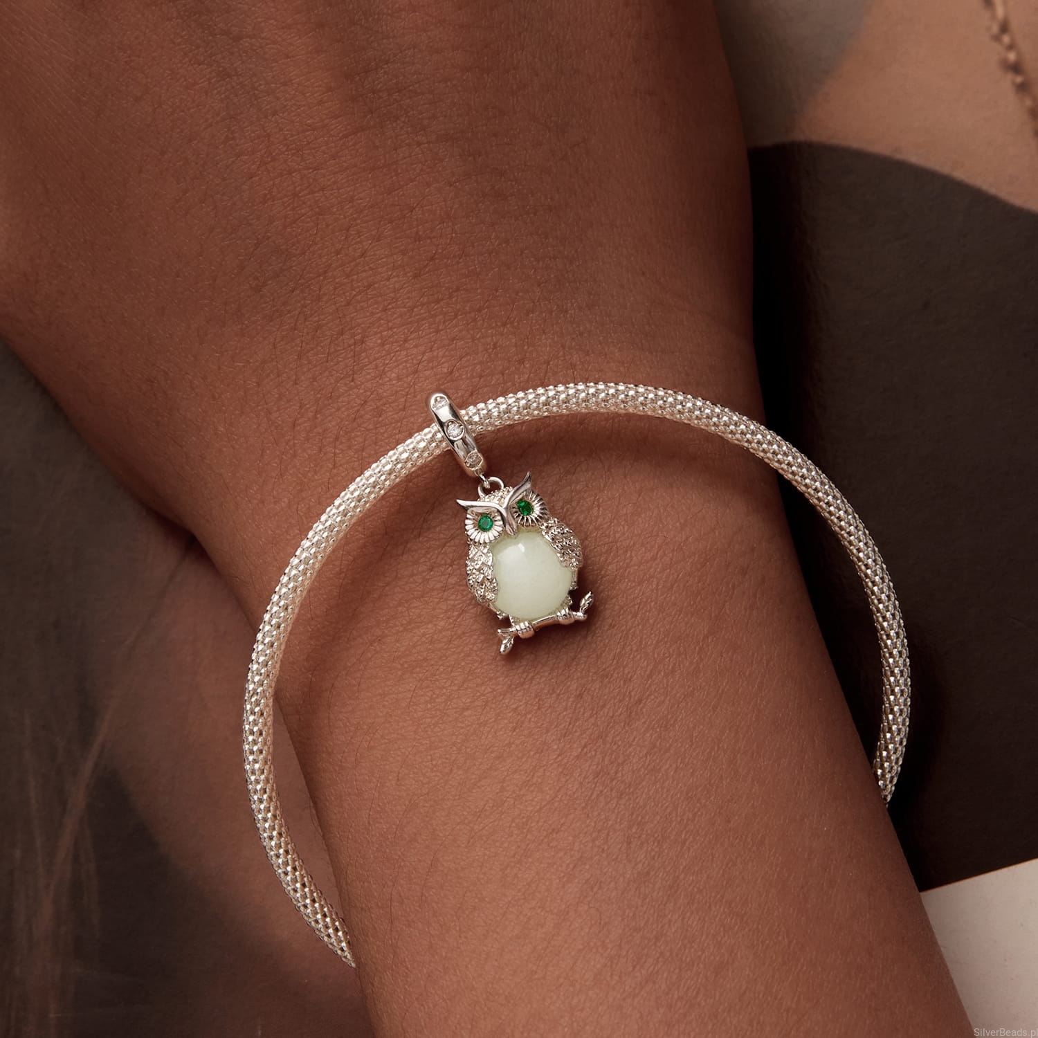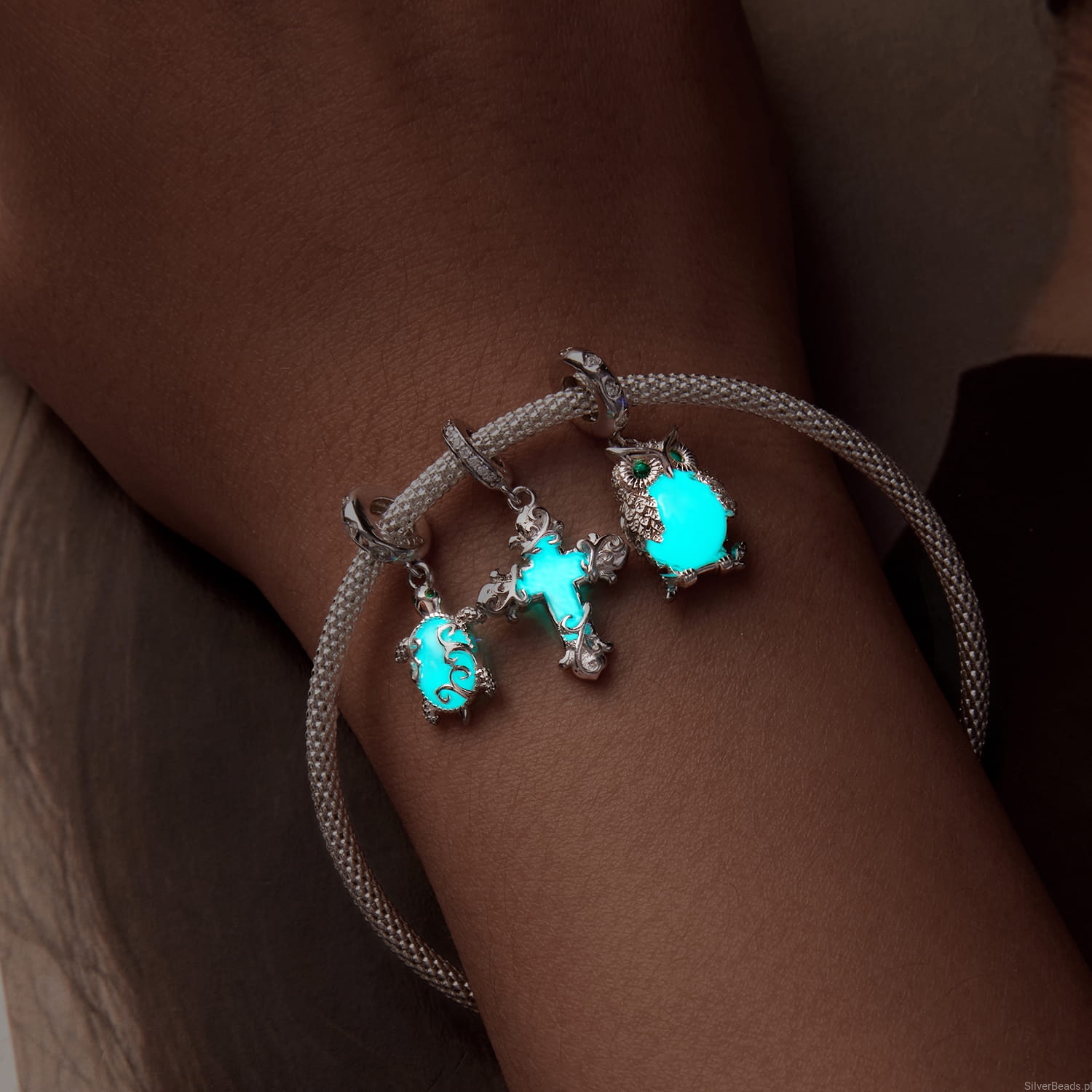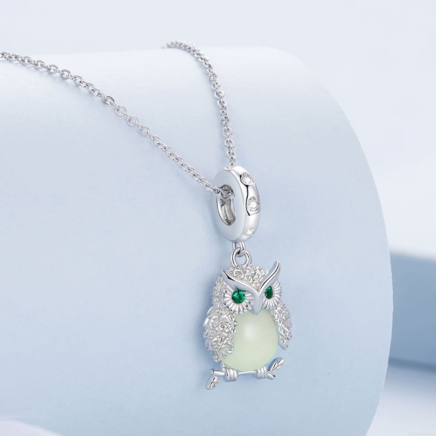 Sowa świecąca w ciemności srebrny charms koralik beads
