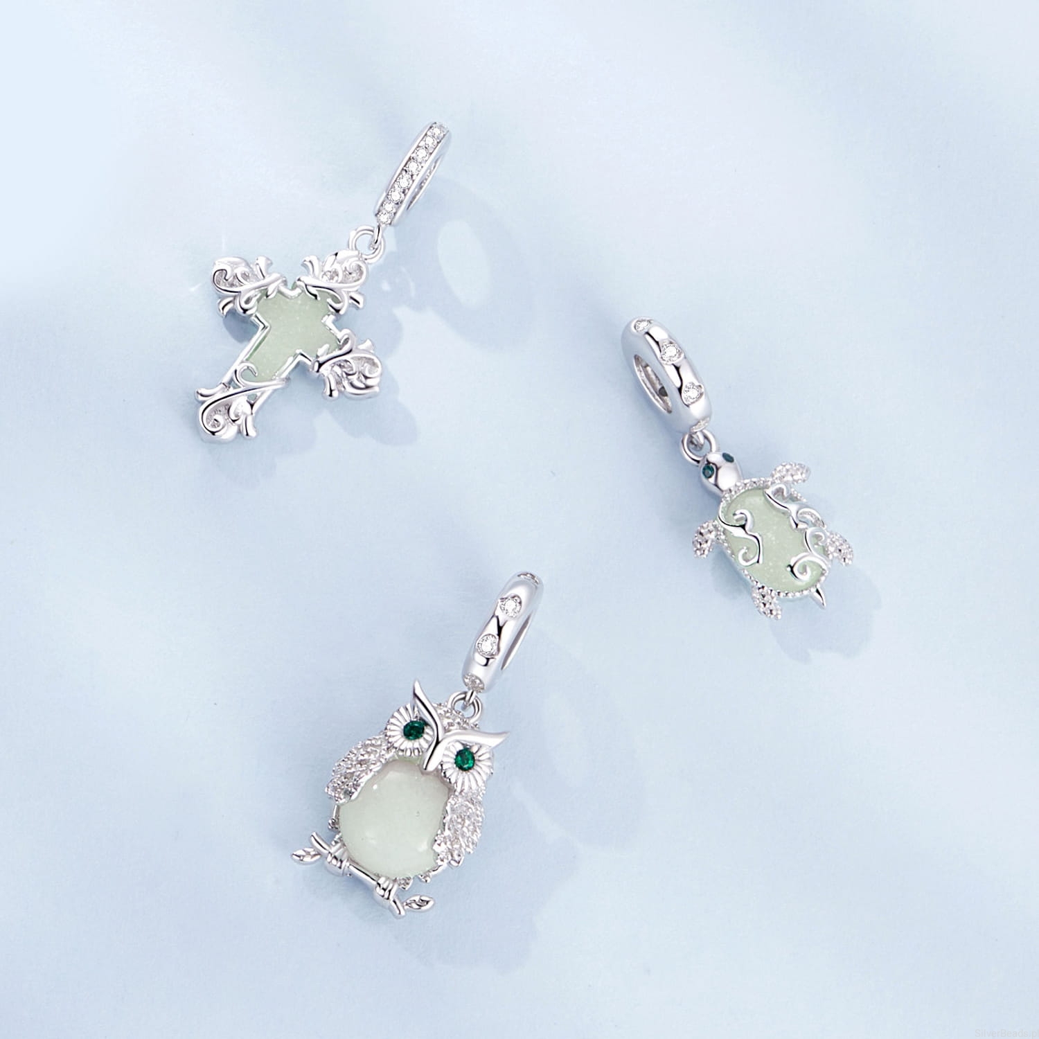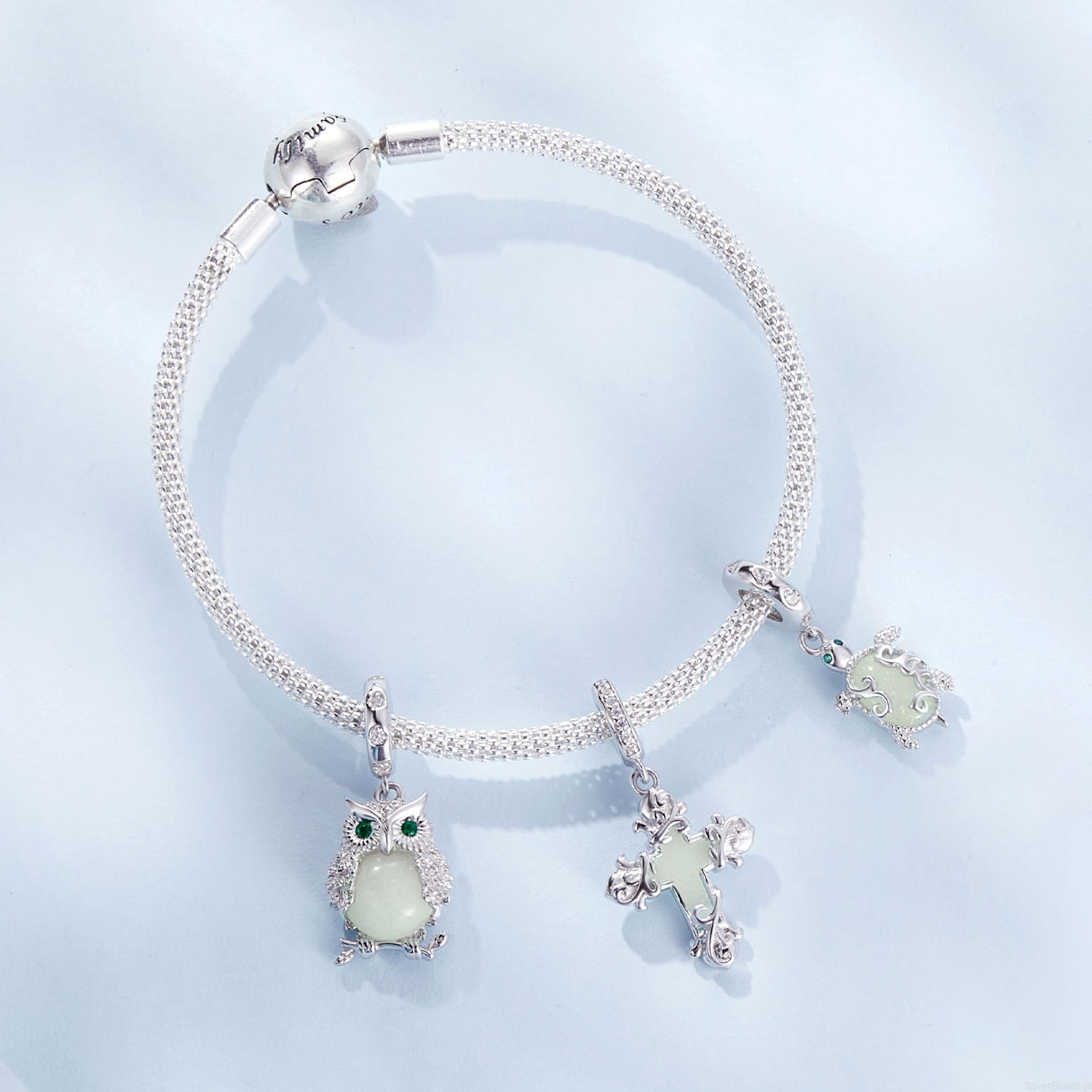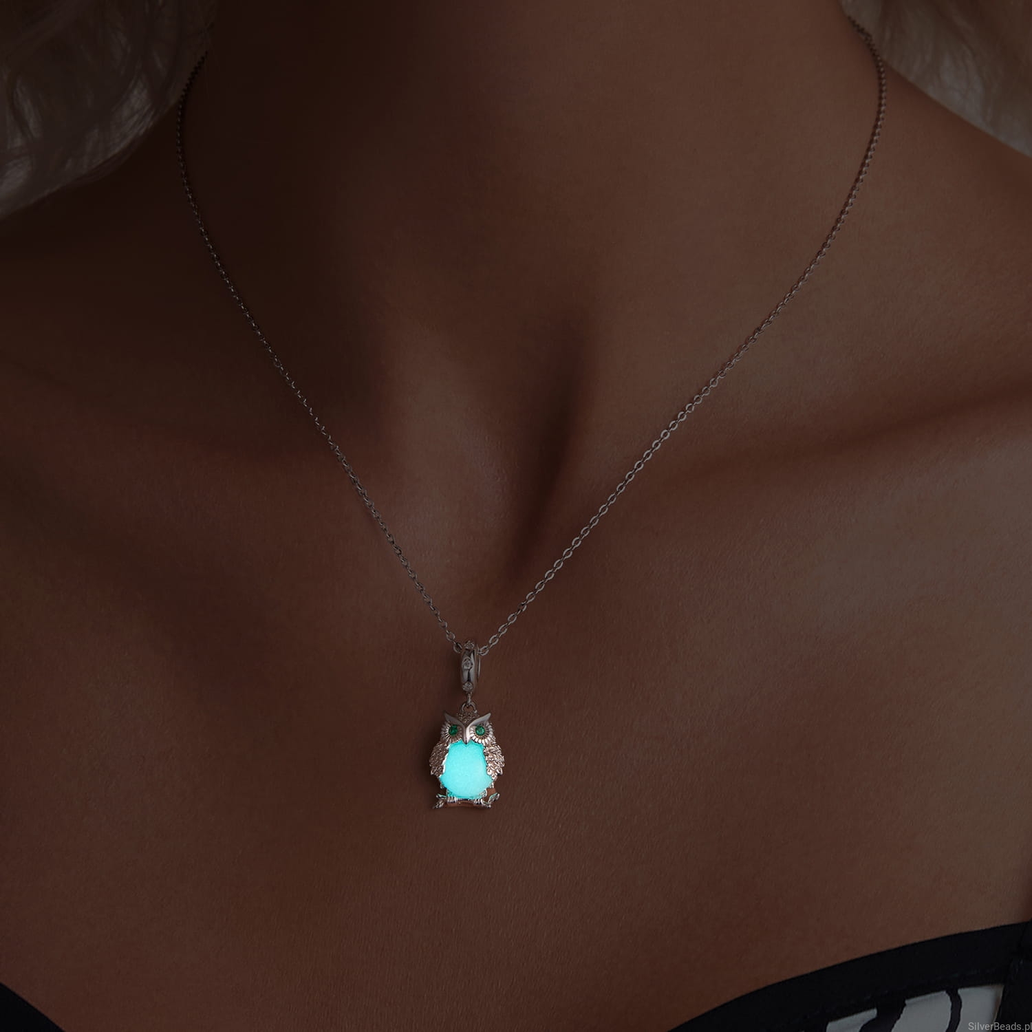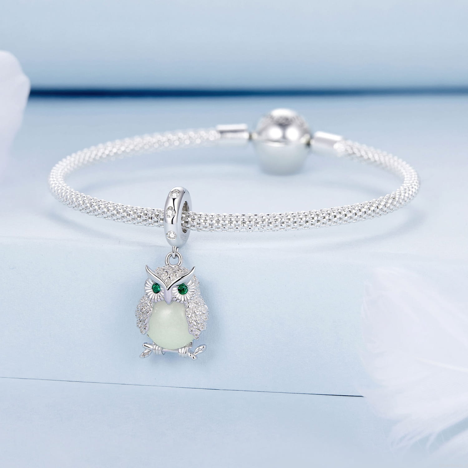 Sowa świecąca w ciemności srebrny charms koralik beads