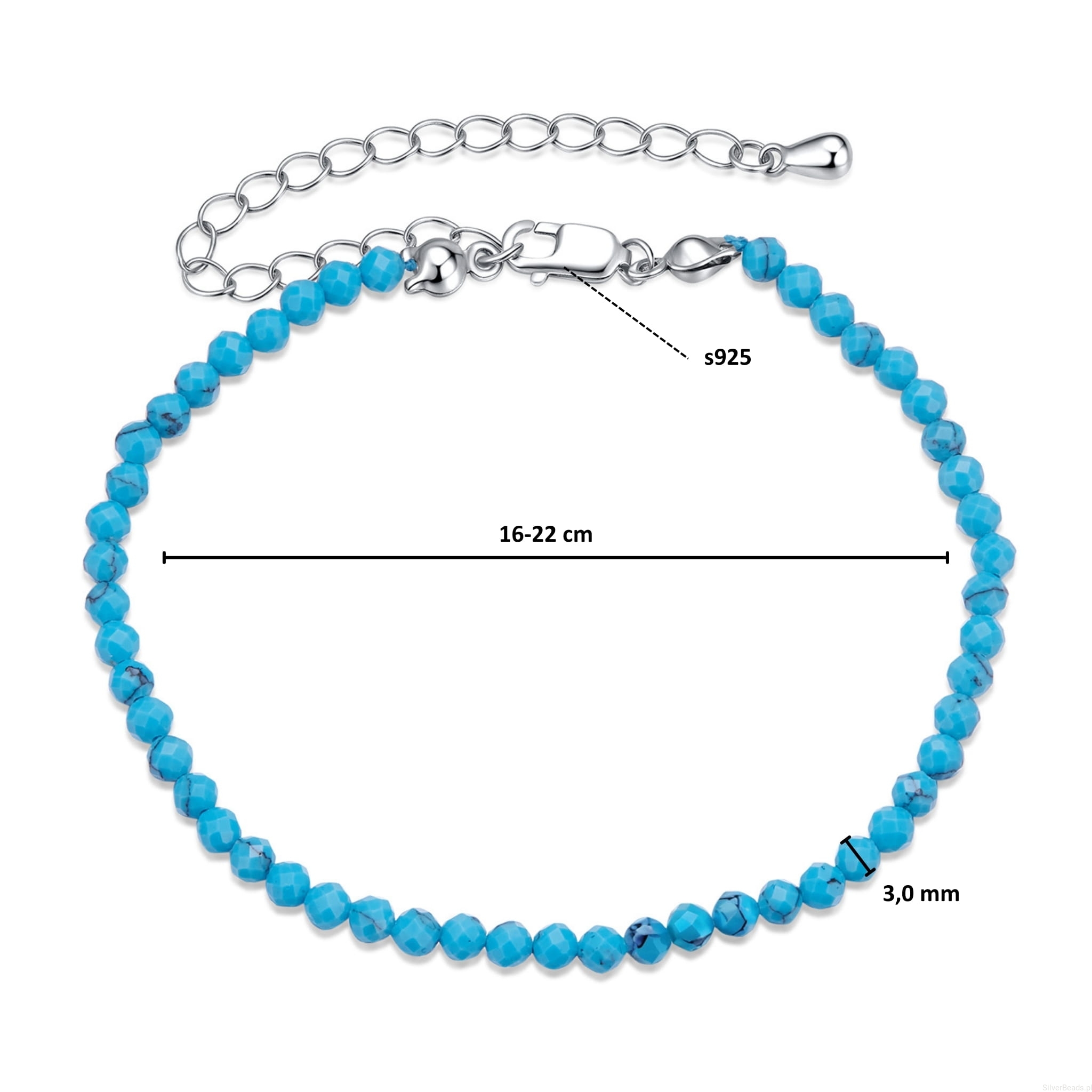 Obwód bransoletki regulowany jest poprzez ogniwa na końcu łańcuszka.