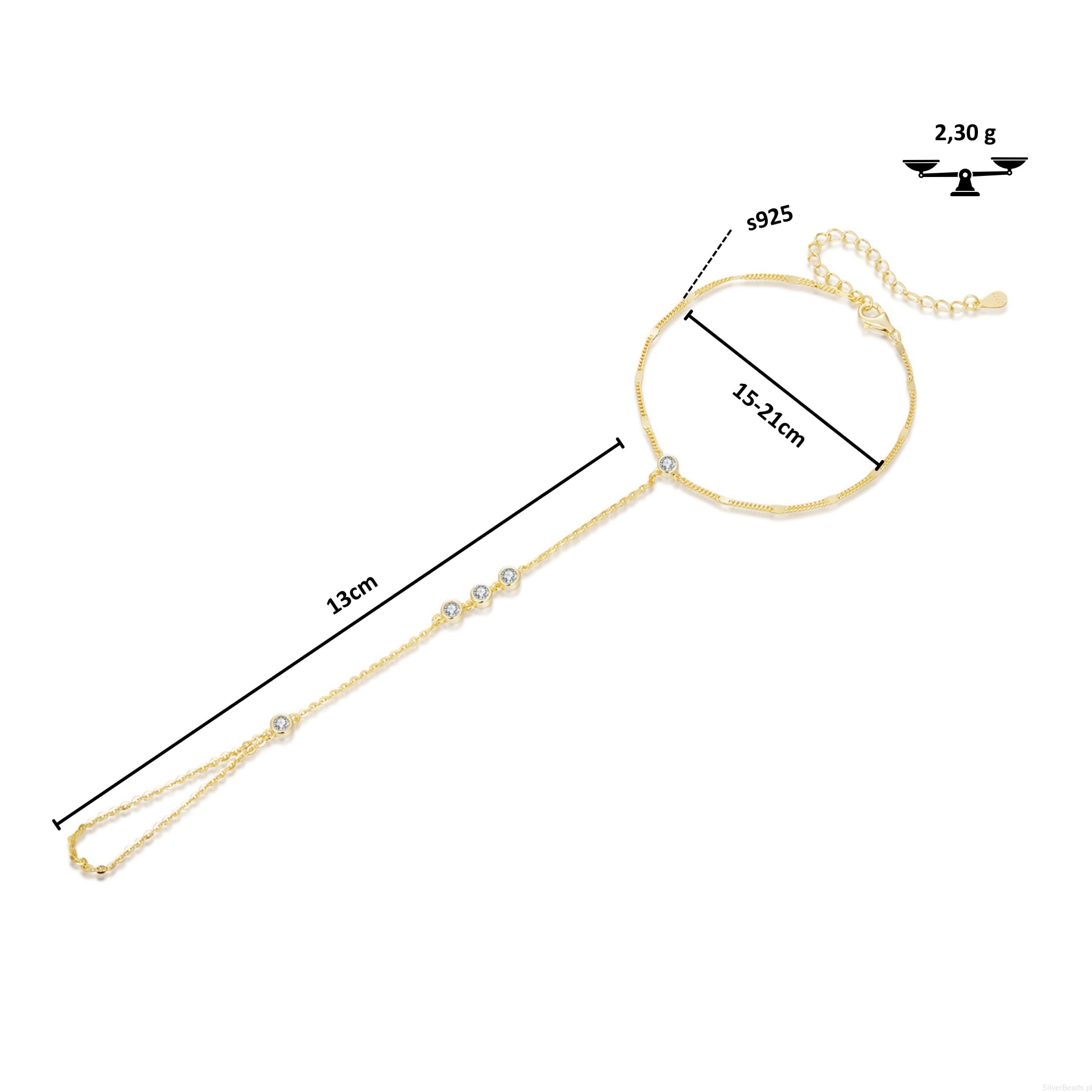 - wielkość ozdobnego łańcuszka (pierścionka): 13,0 mm