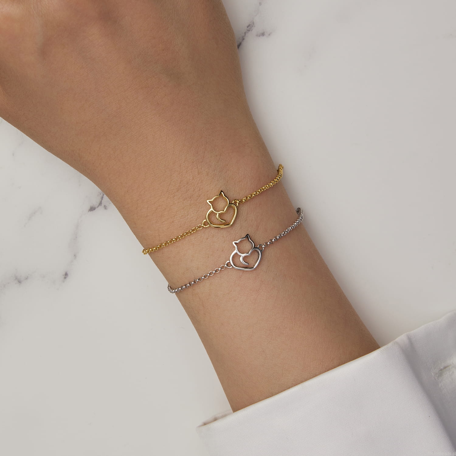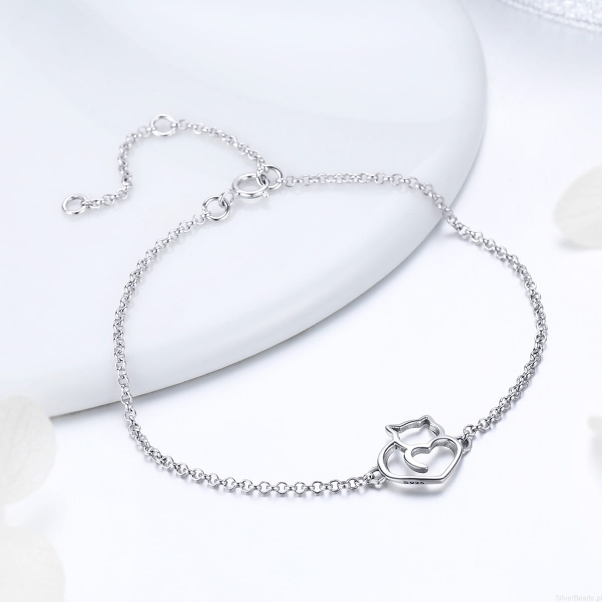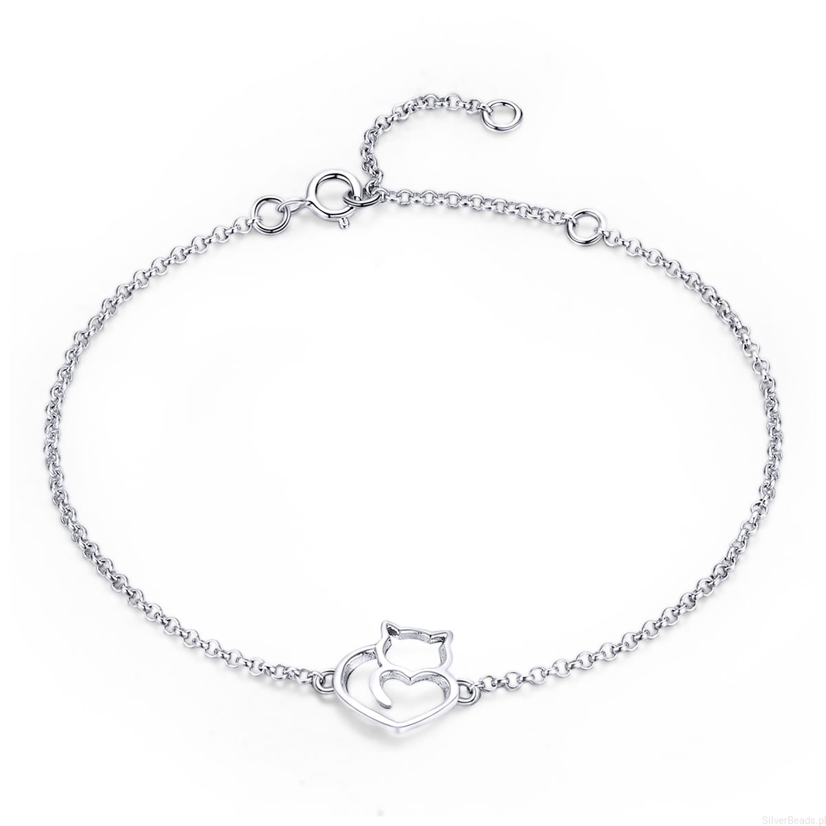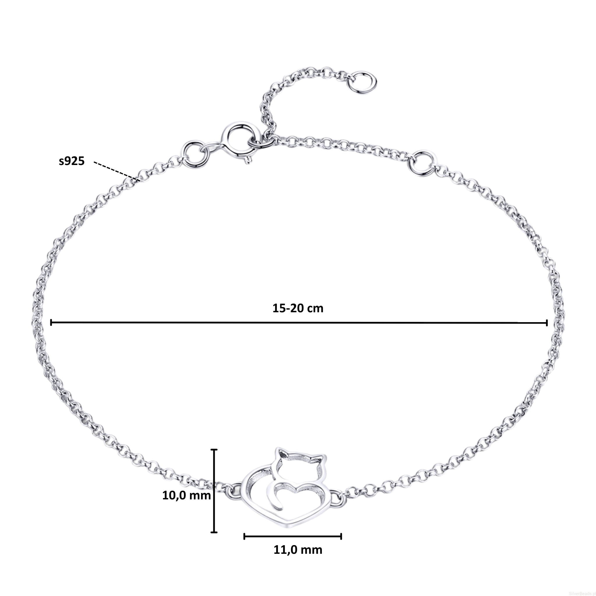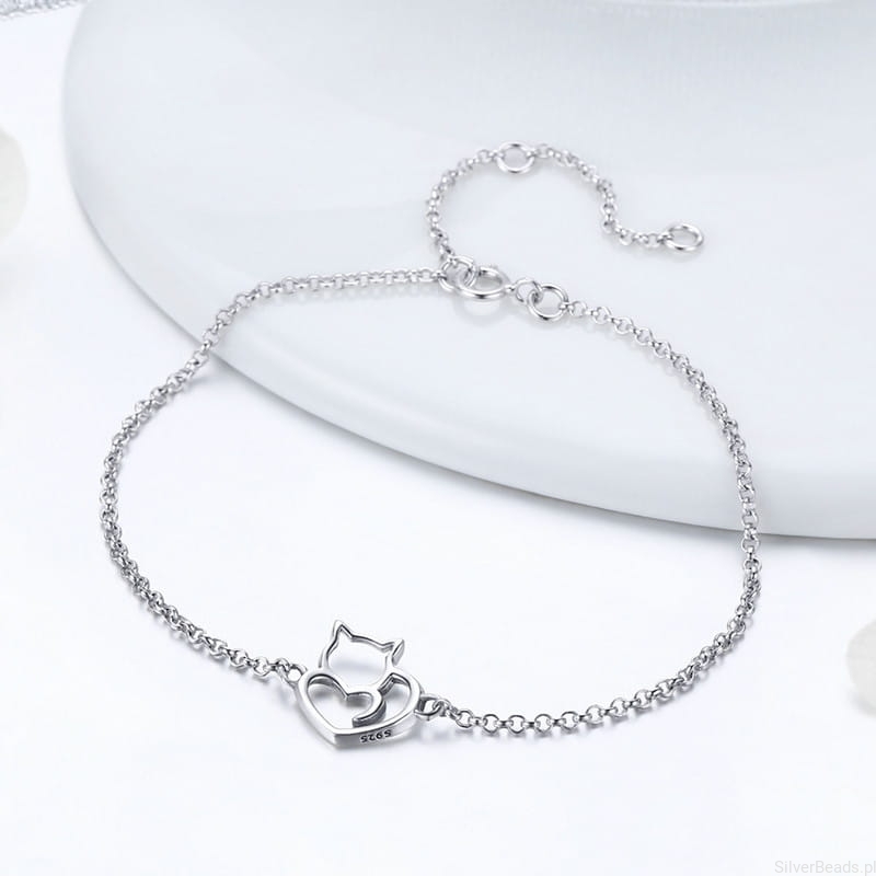 Delikatna bransoletka wykonana ze srebra 925 z ozdobą w kształcie kota.