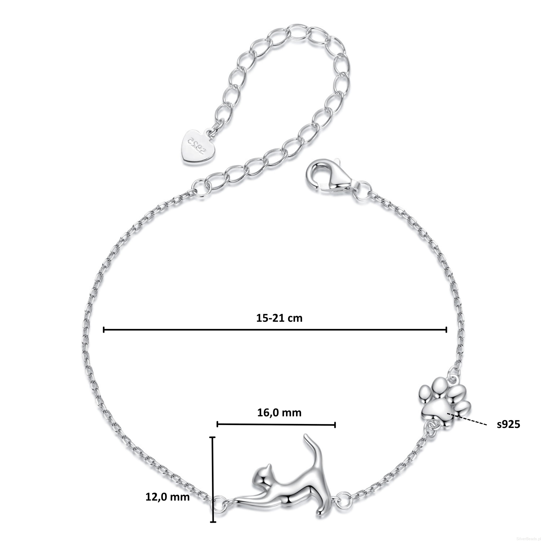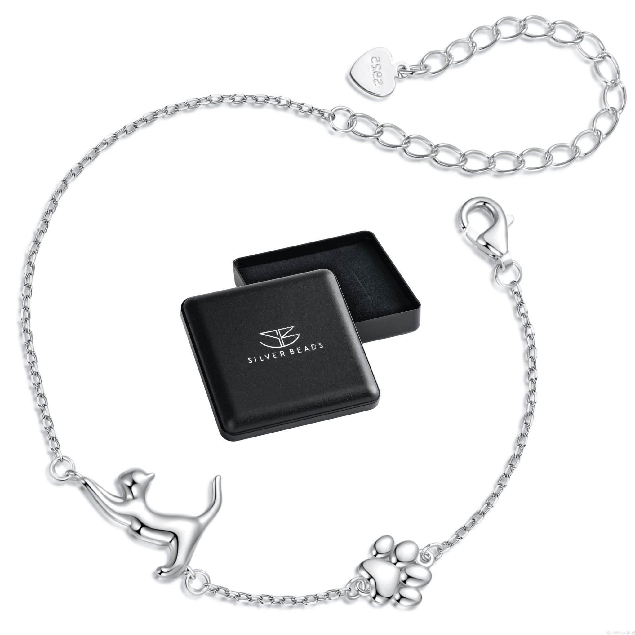 Srebrna bransoletka z uroczym kotkiem i łapką srebro 925
