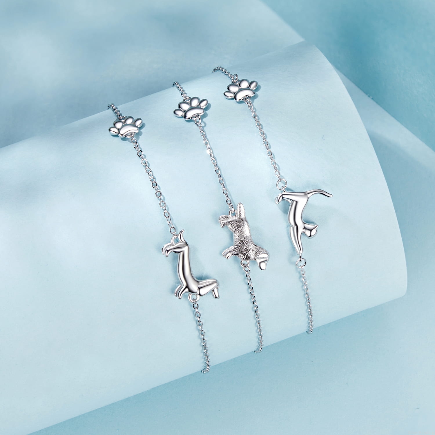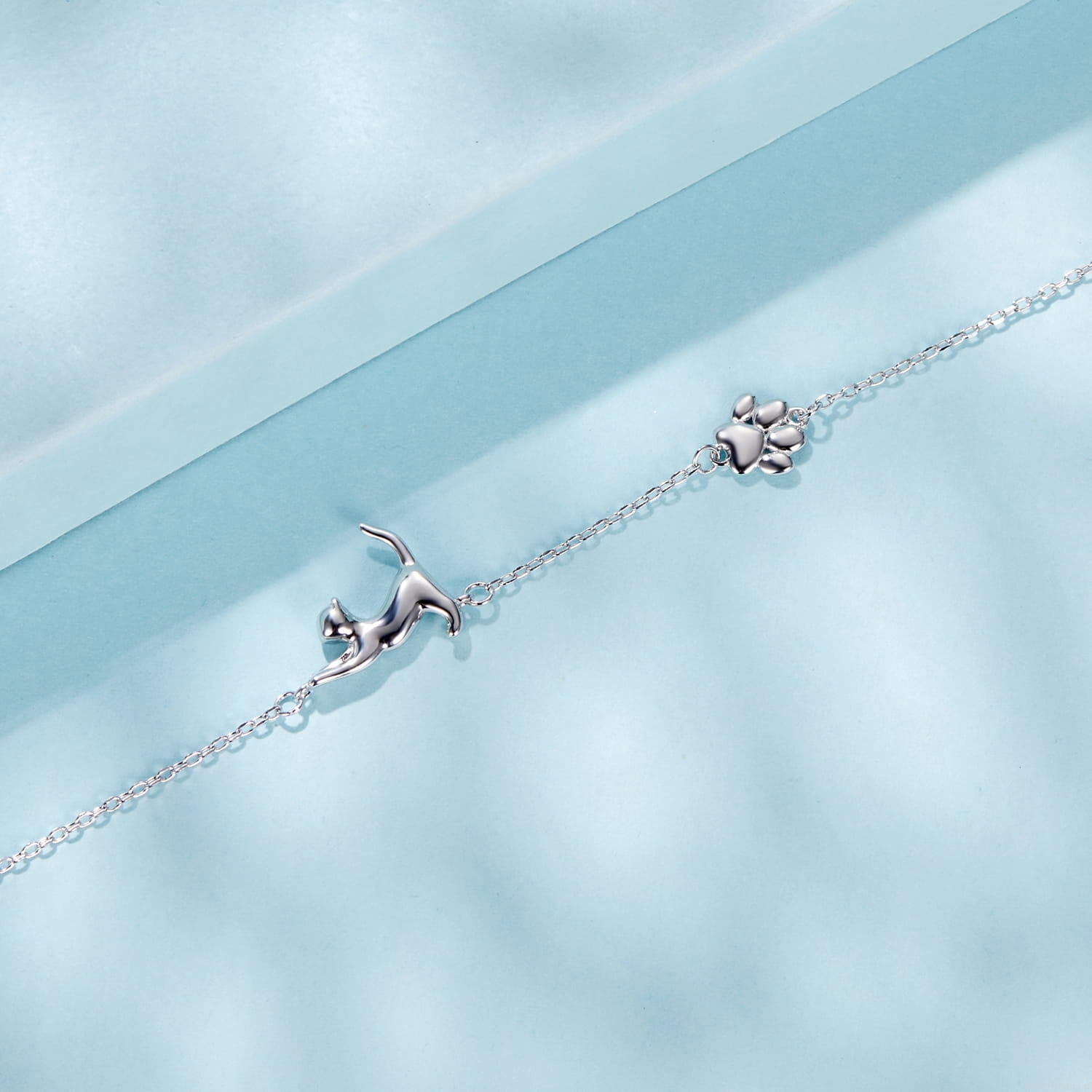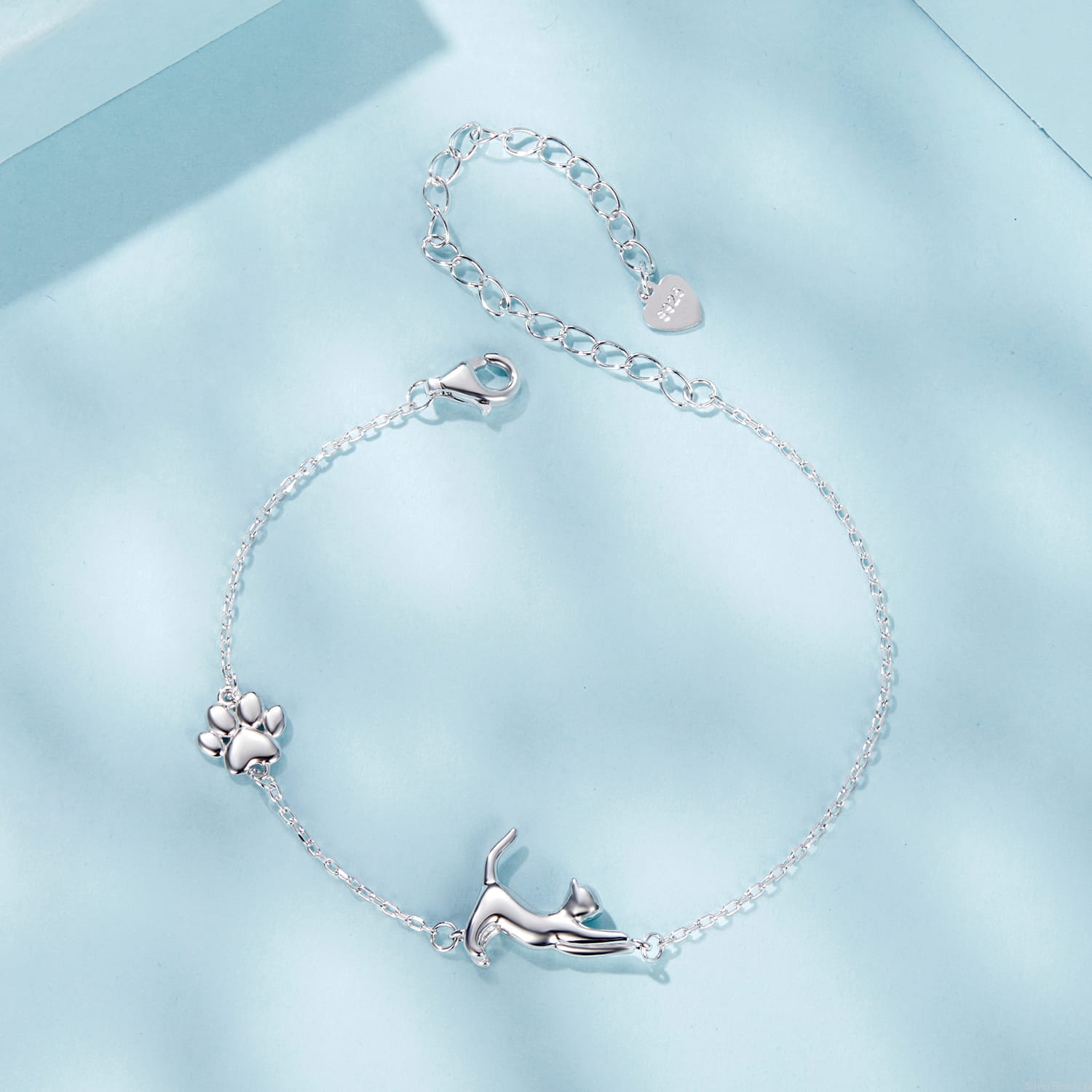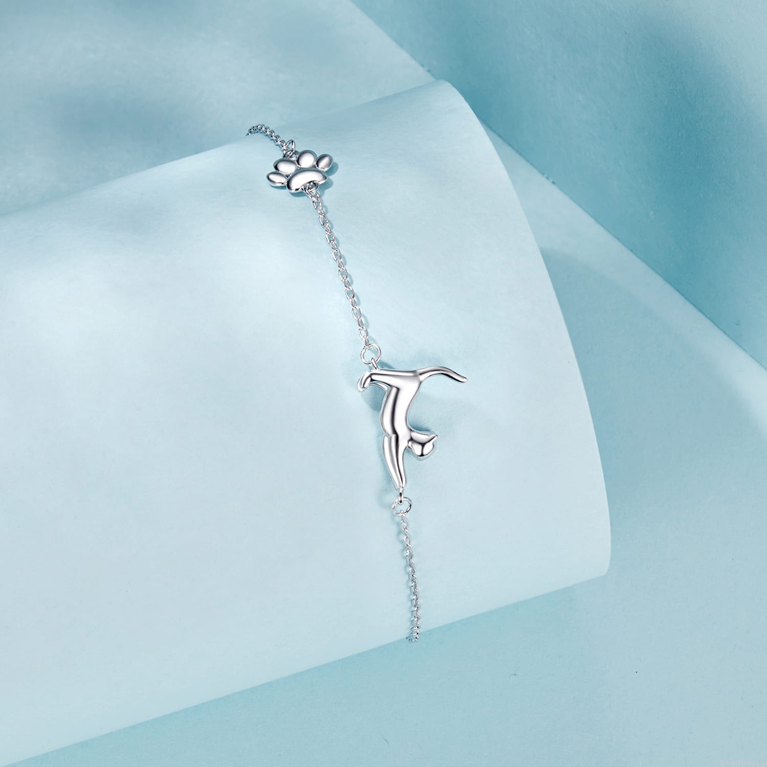 Srebrna bransoletka: z uroczym kotkiem i łapką.