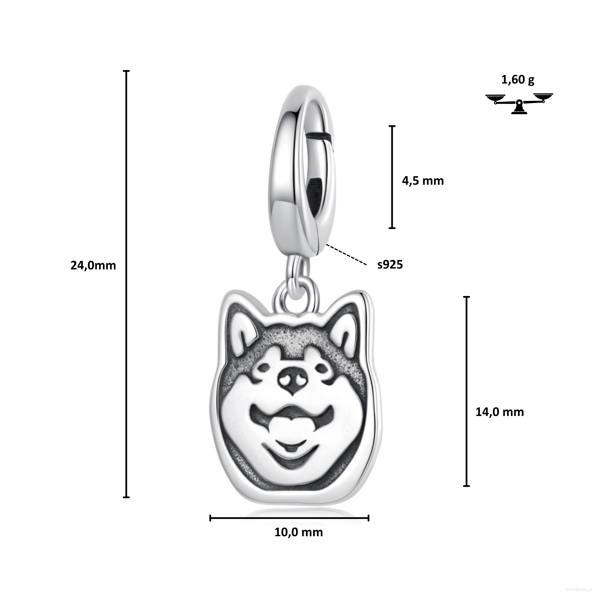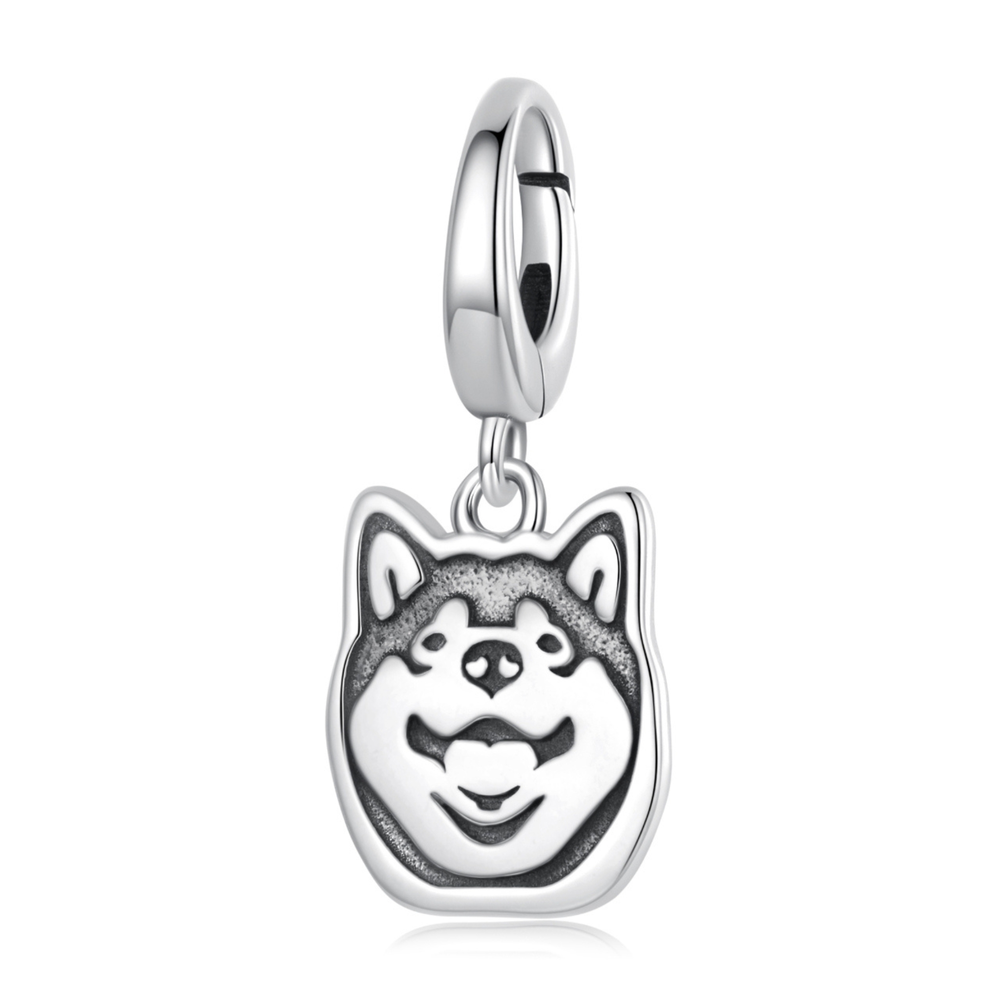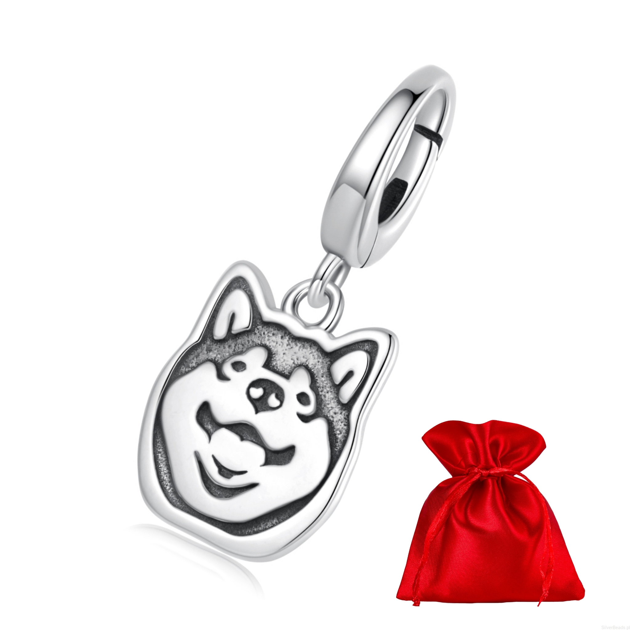 Srebrna zawieszka charms zapinany: Shiba Inu.