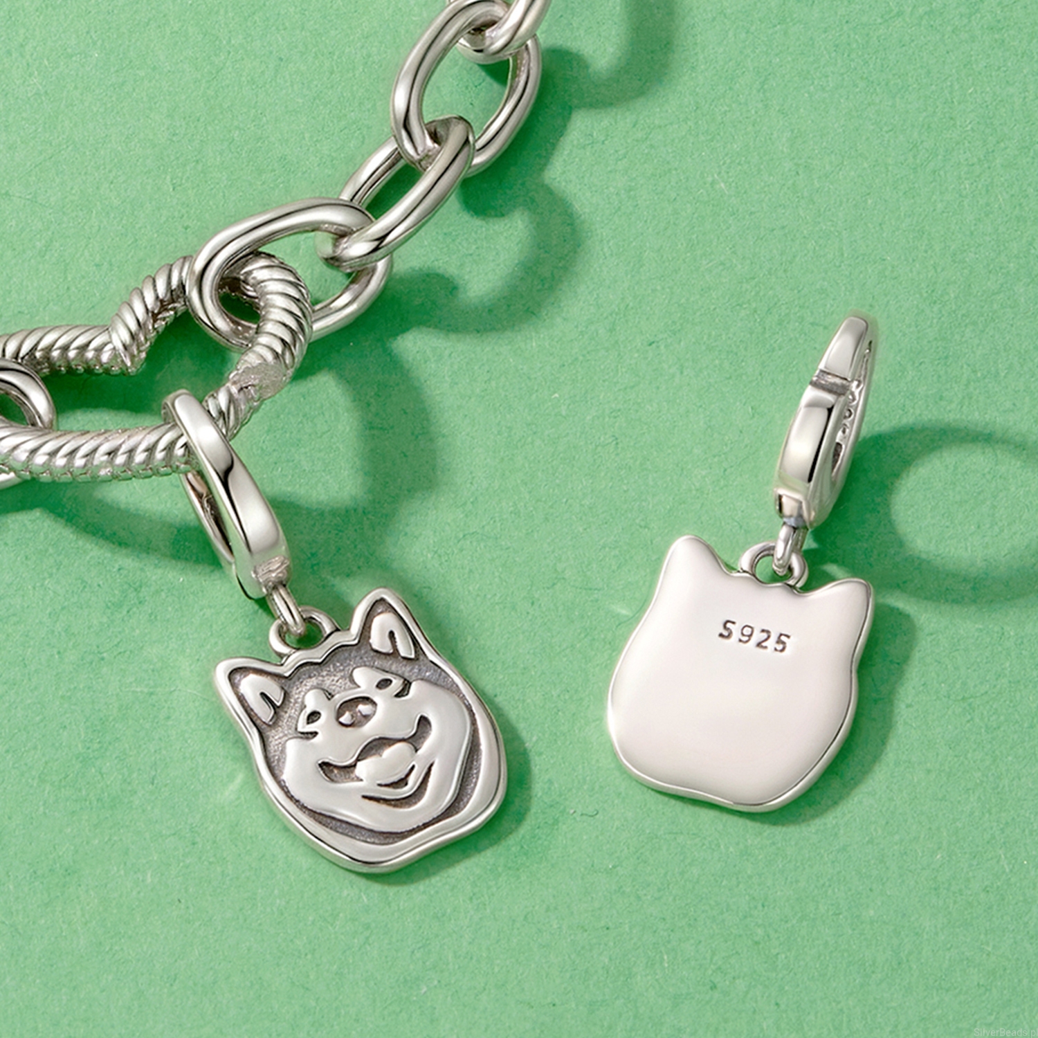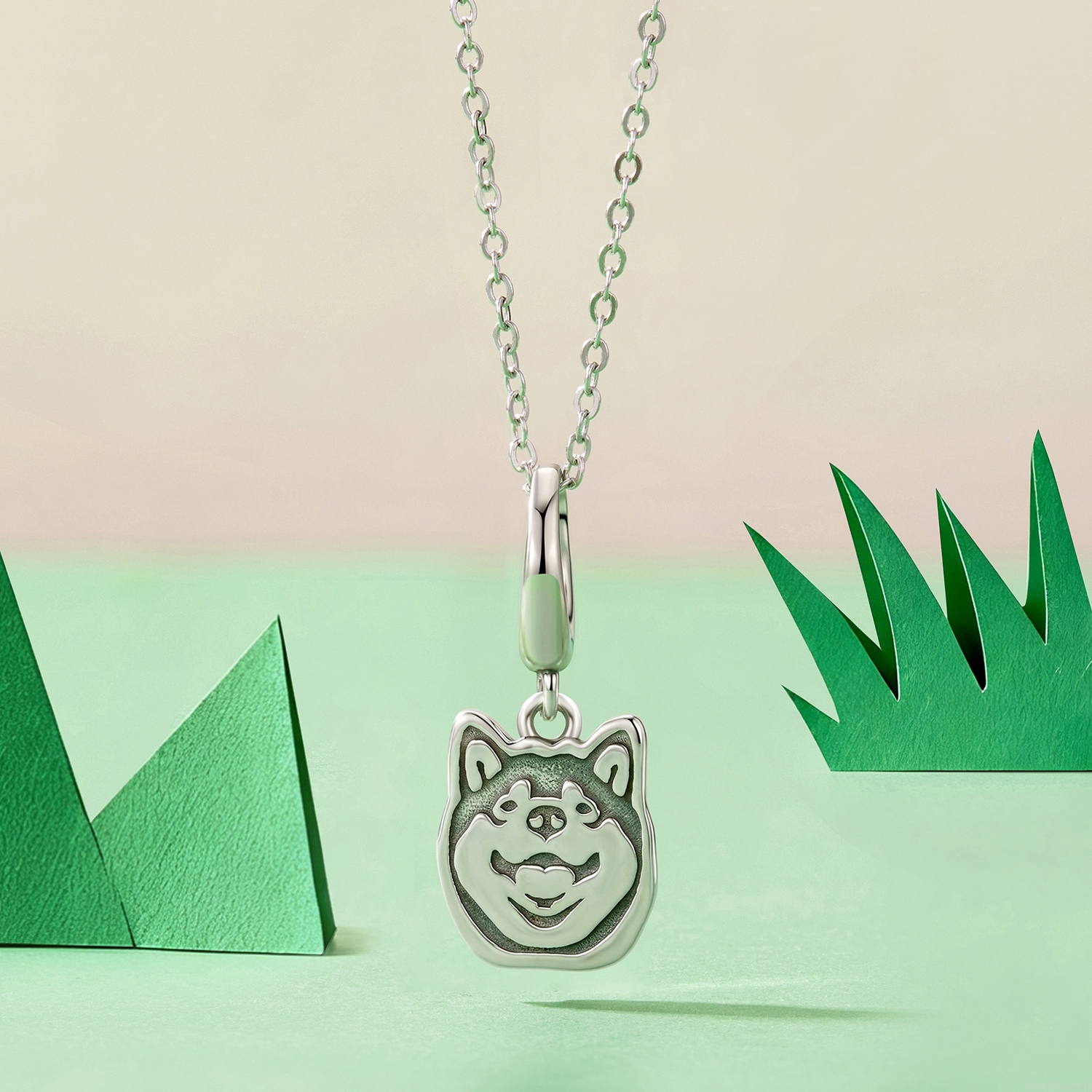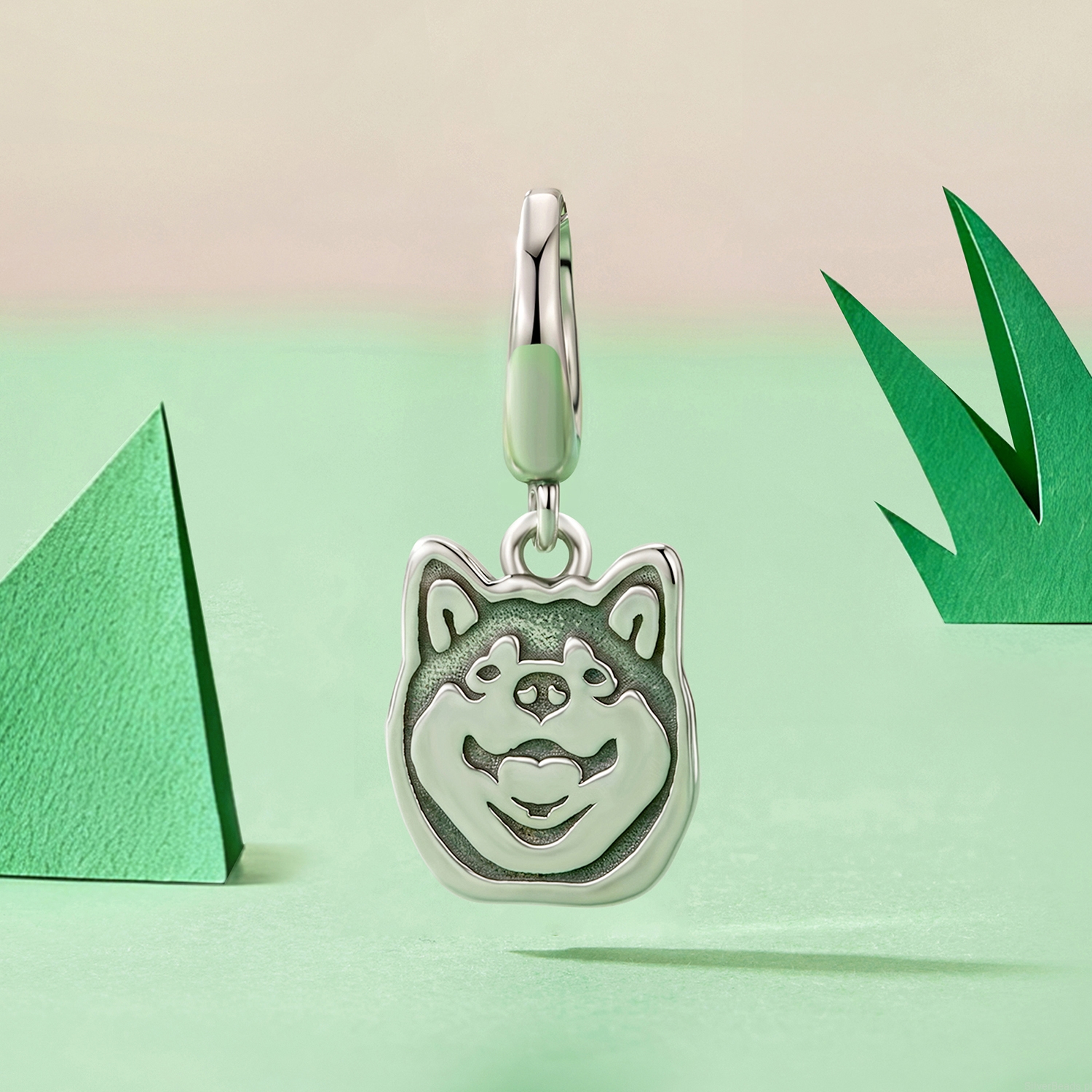Srebrna zawieszka charms zapinany: Shiba Inu.