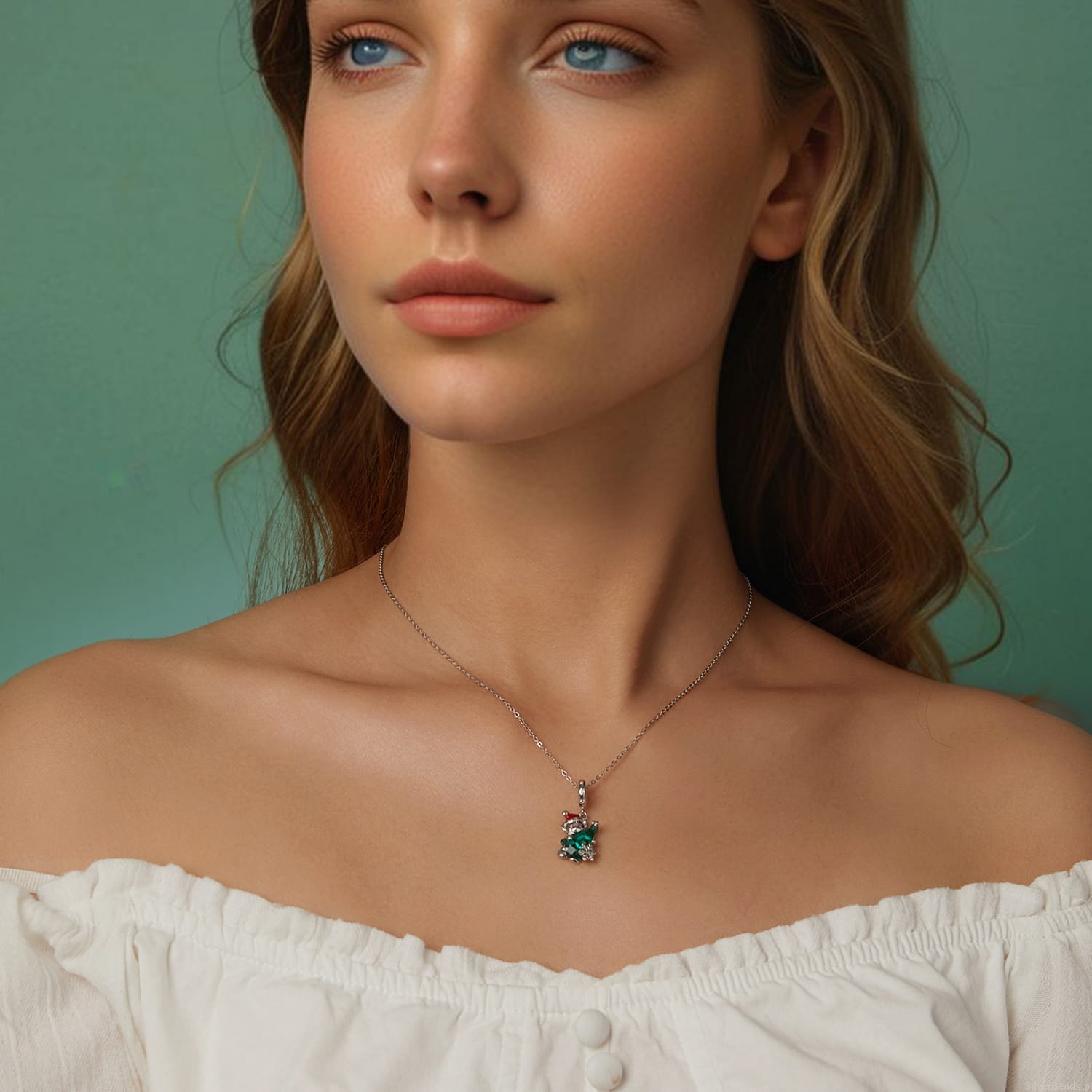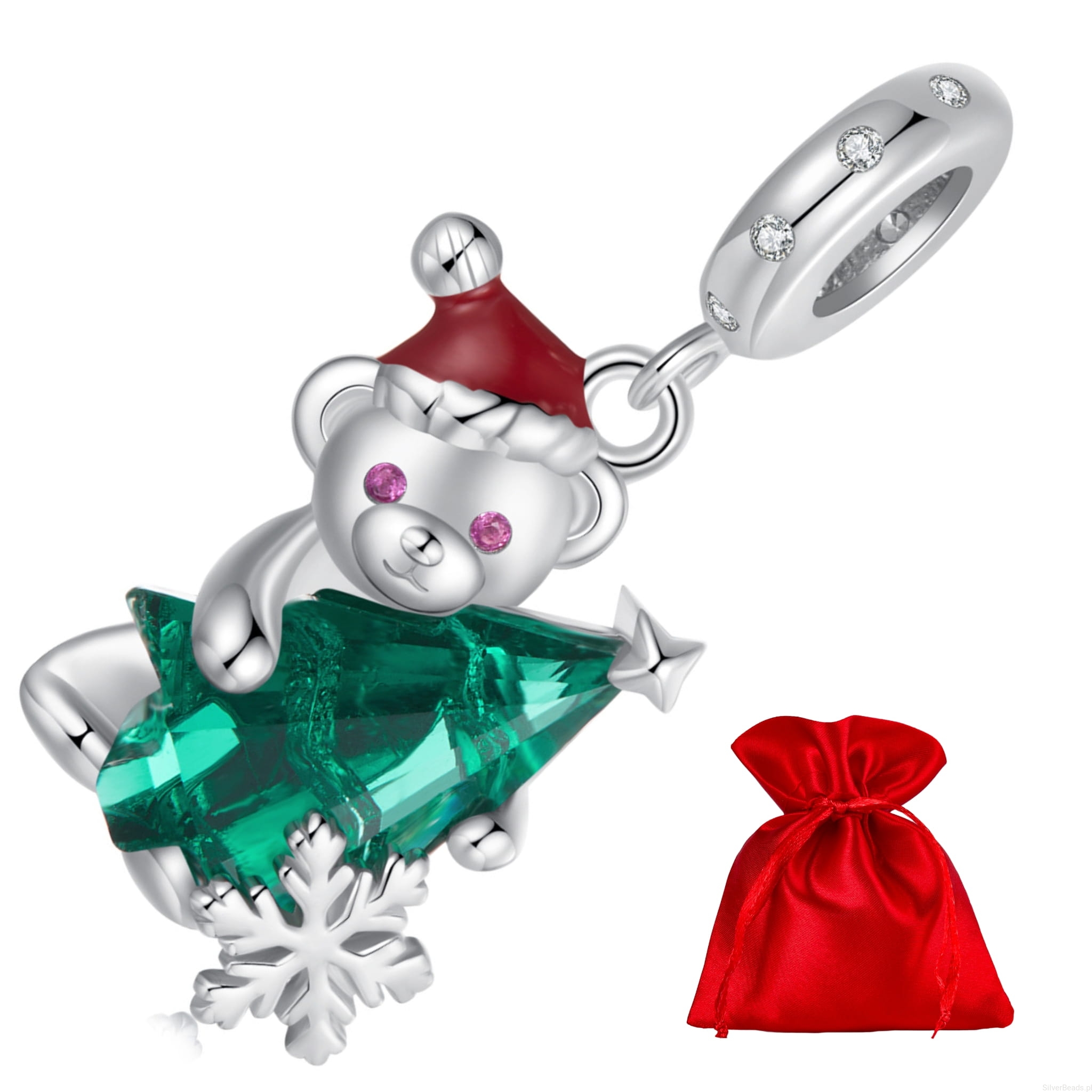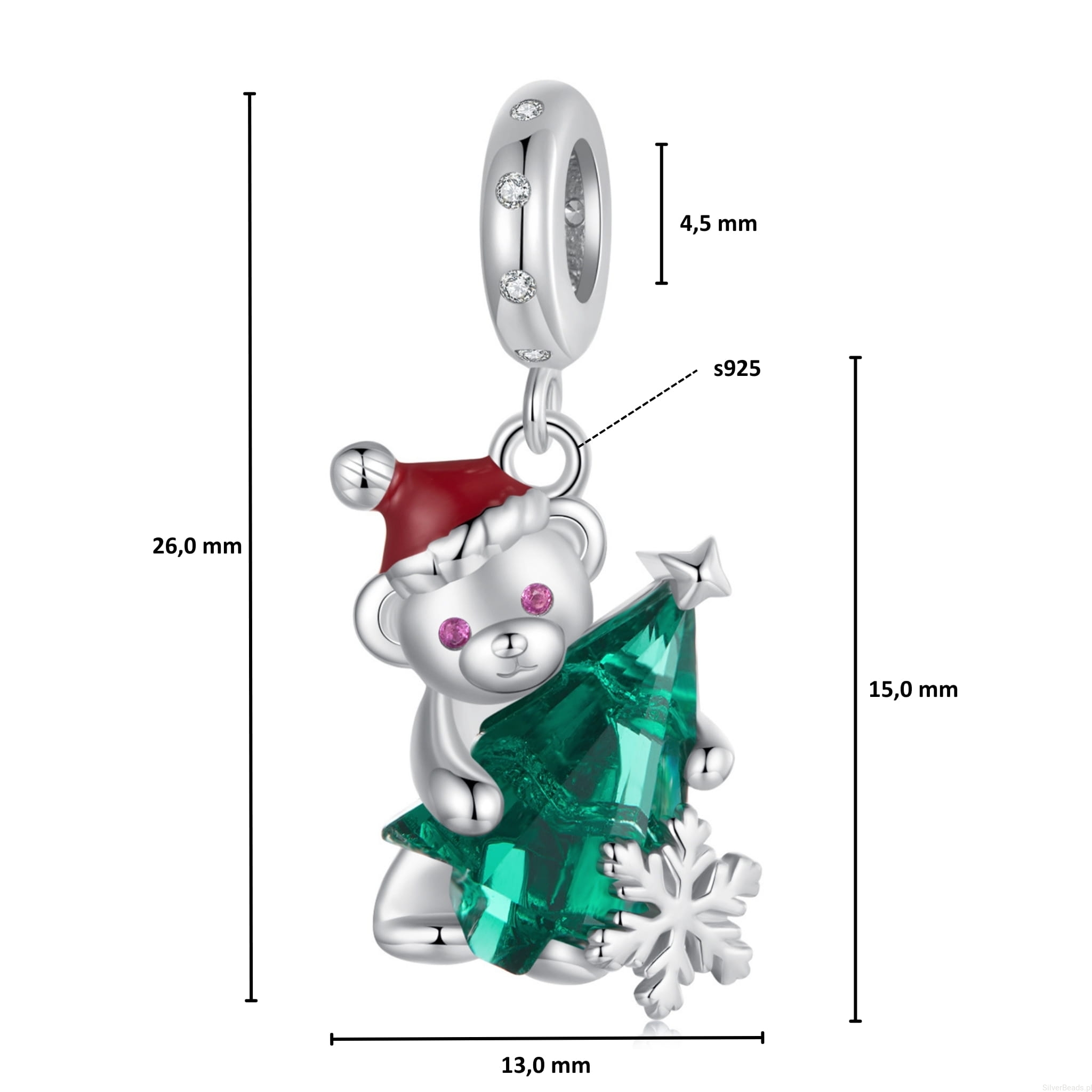 Srebrna zawieszka miś z kryształową choinką srebro 925 beads koraliki