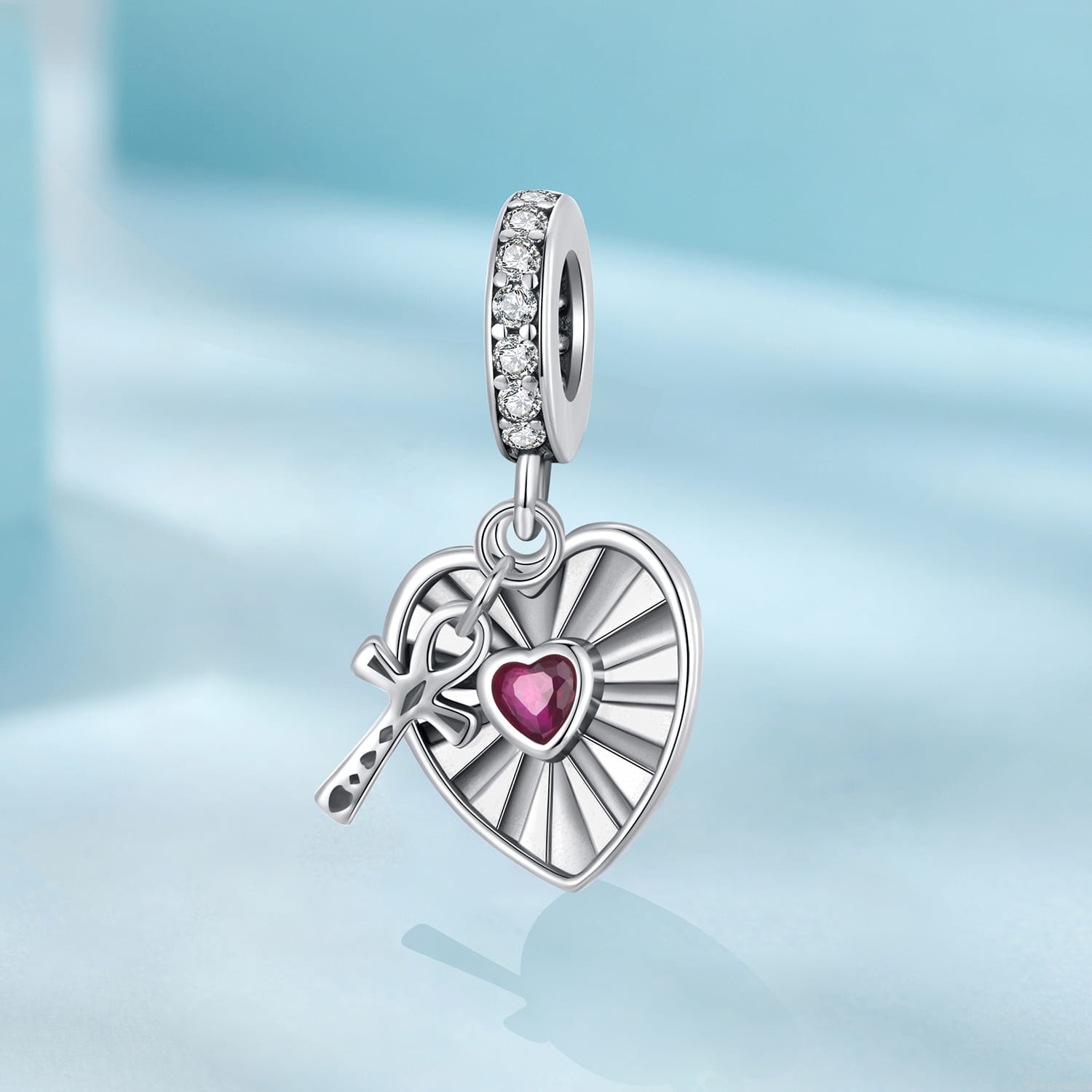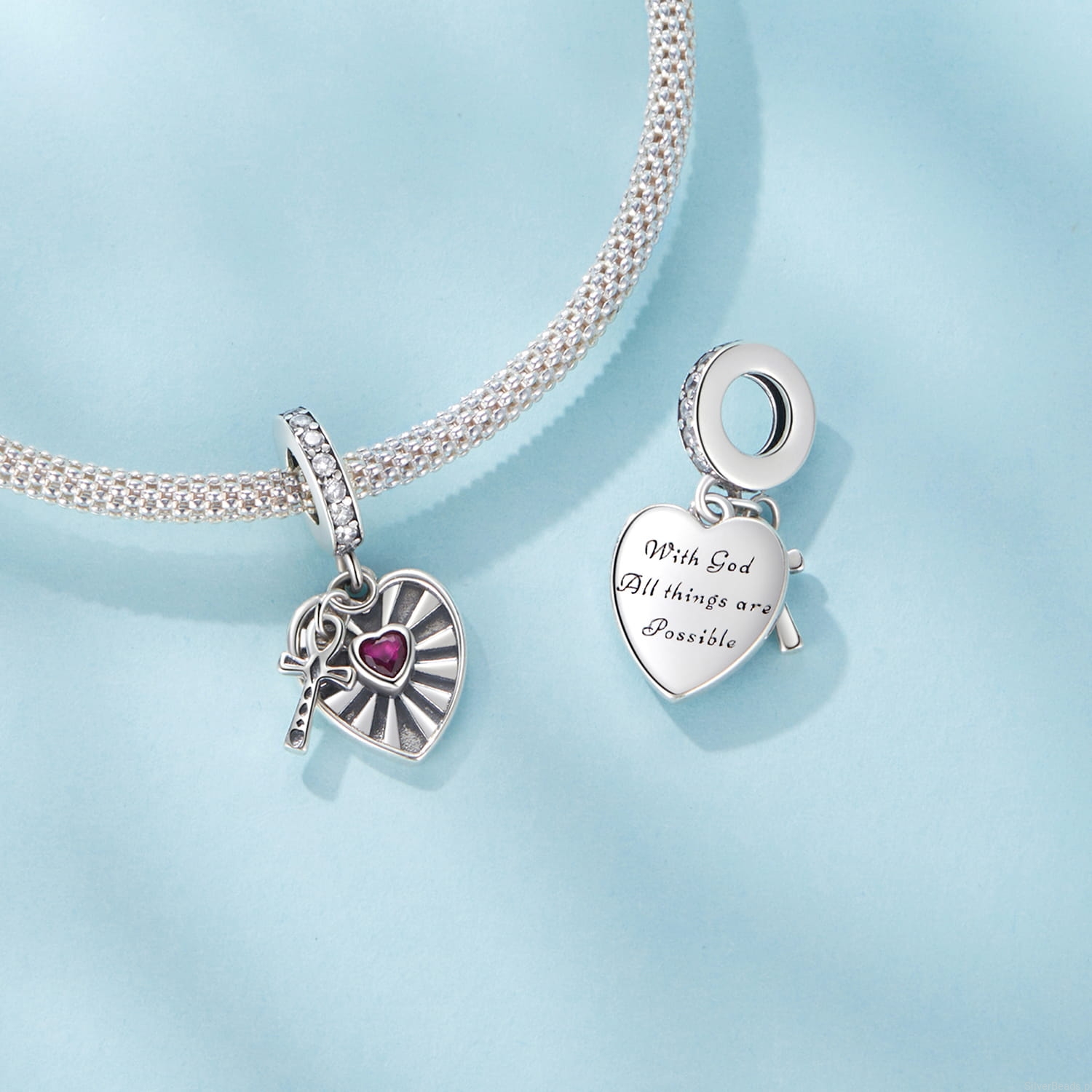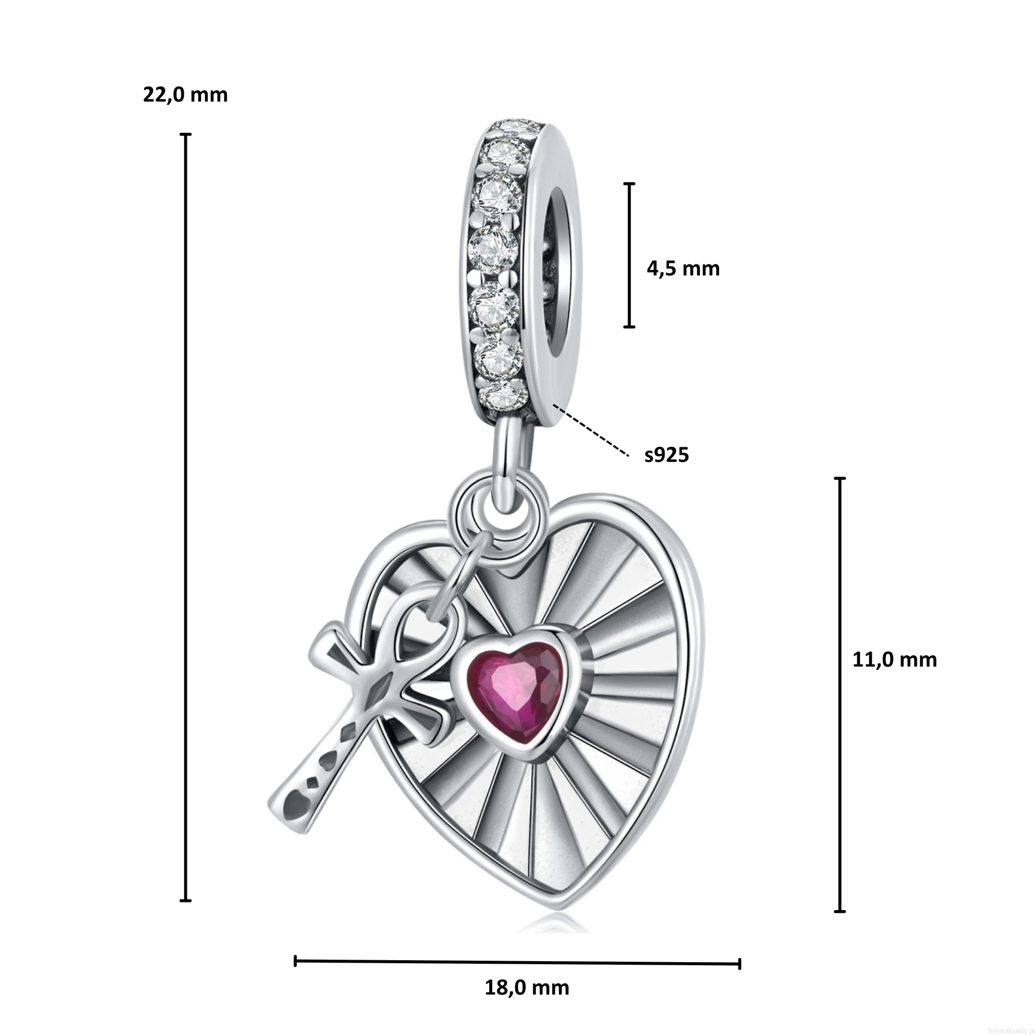 Charms zawieszka ze srebra: serce z grawerem i krzyżykiem.