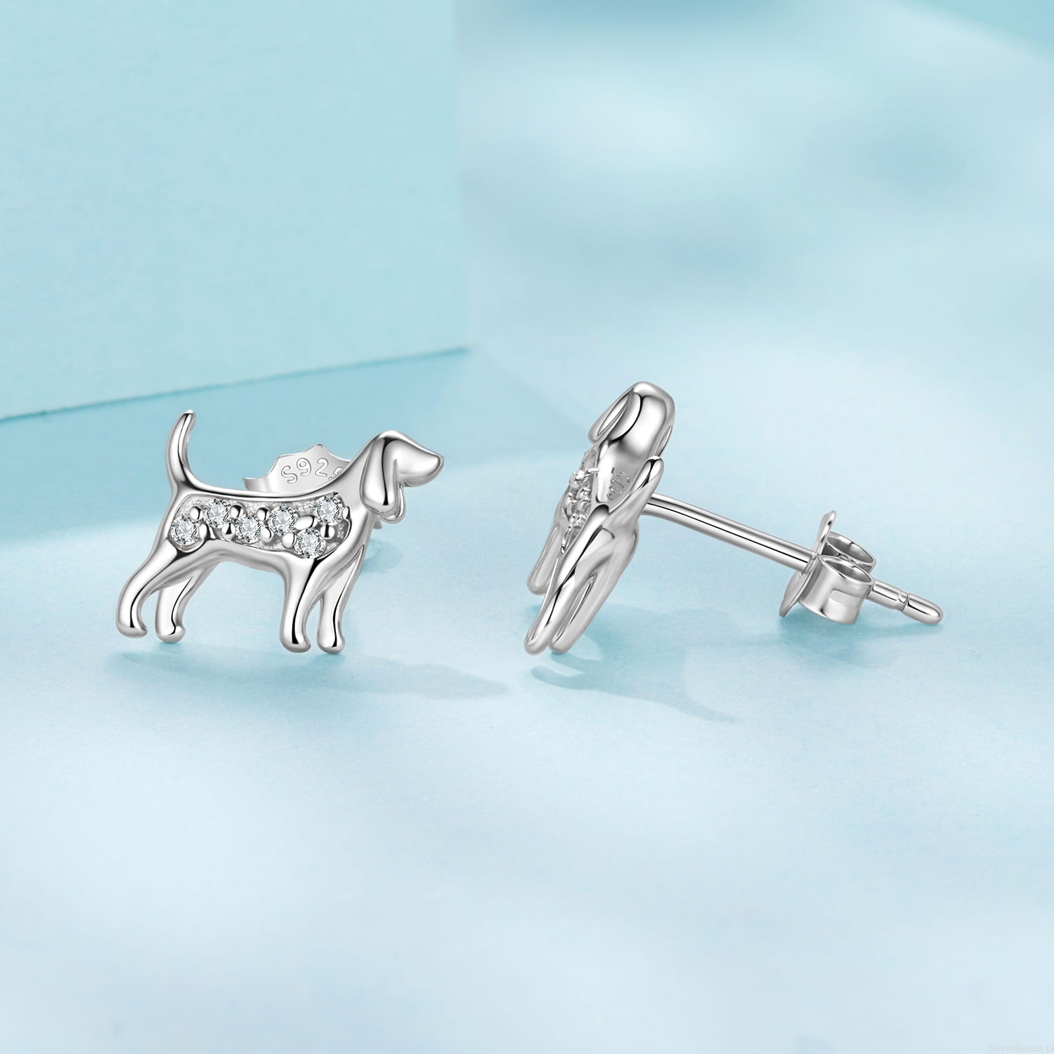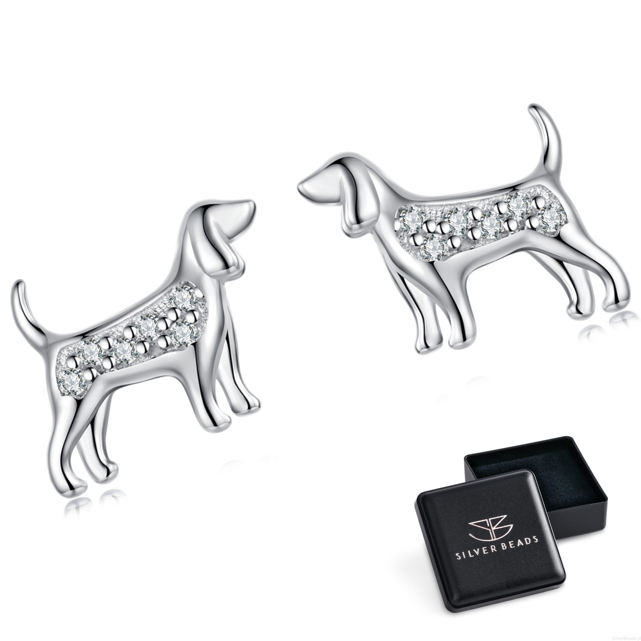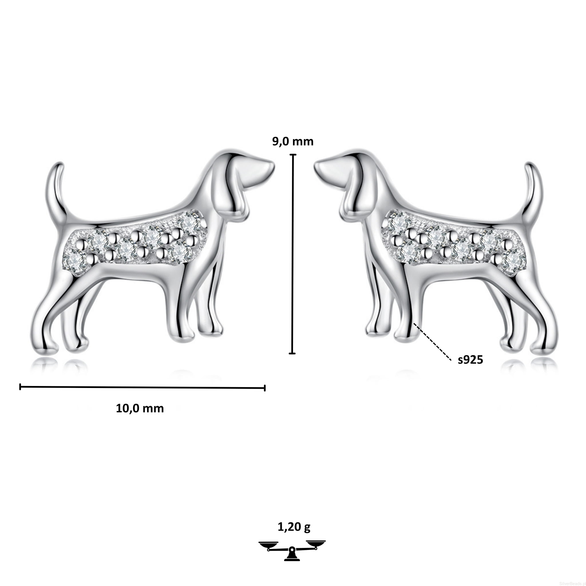 Srebrne kolczyki PSY myśliwskie sztyfty srebro 925 z kryształkami