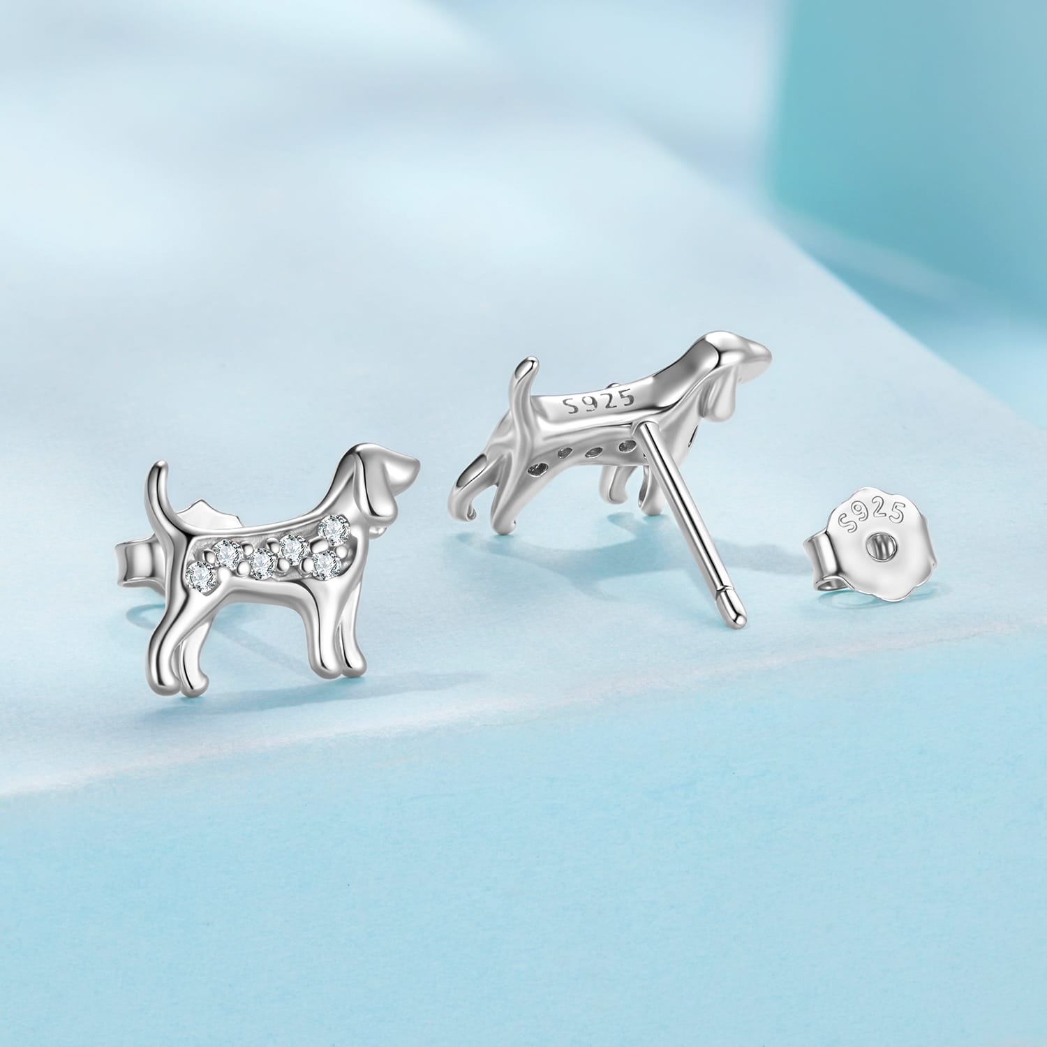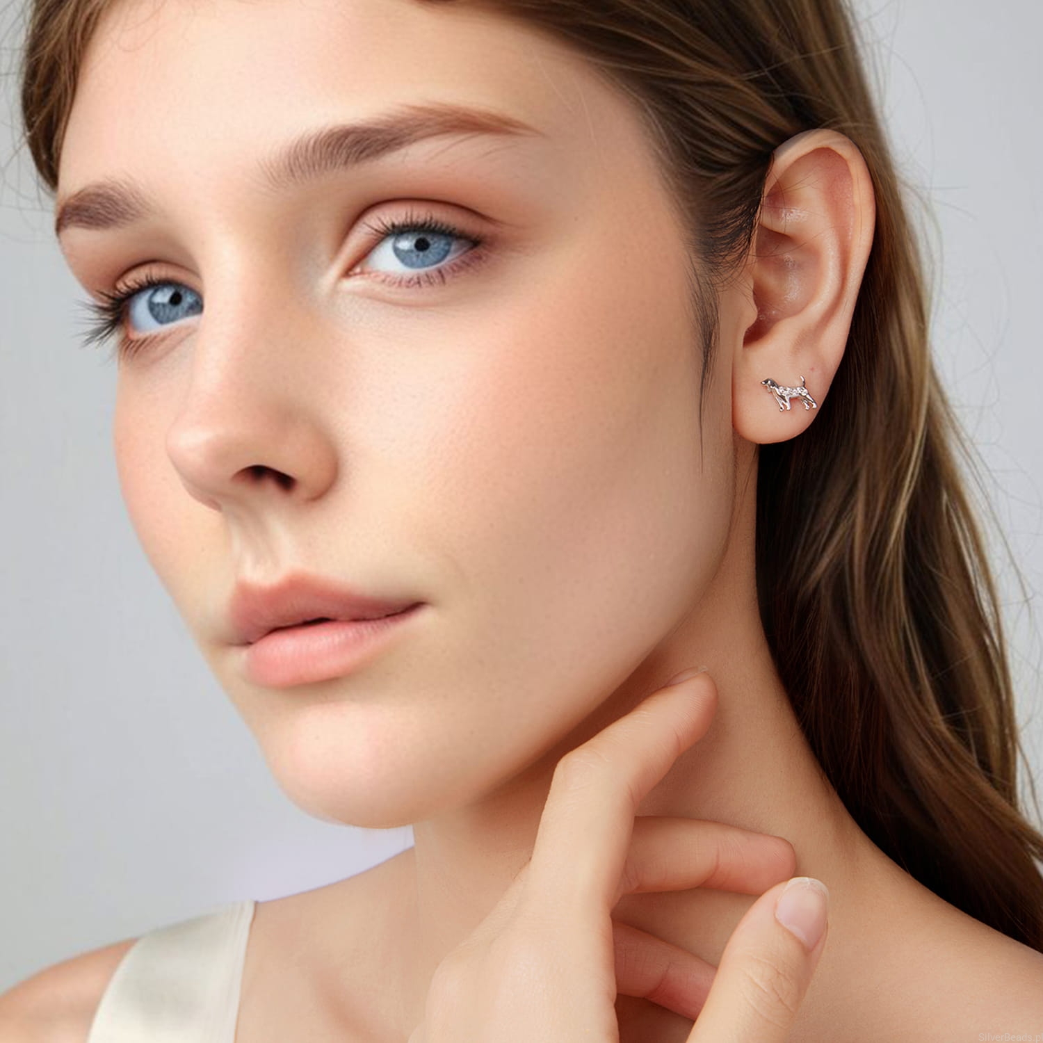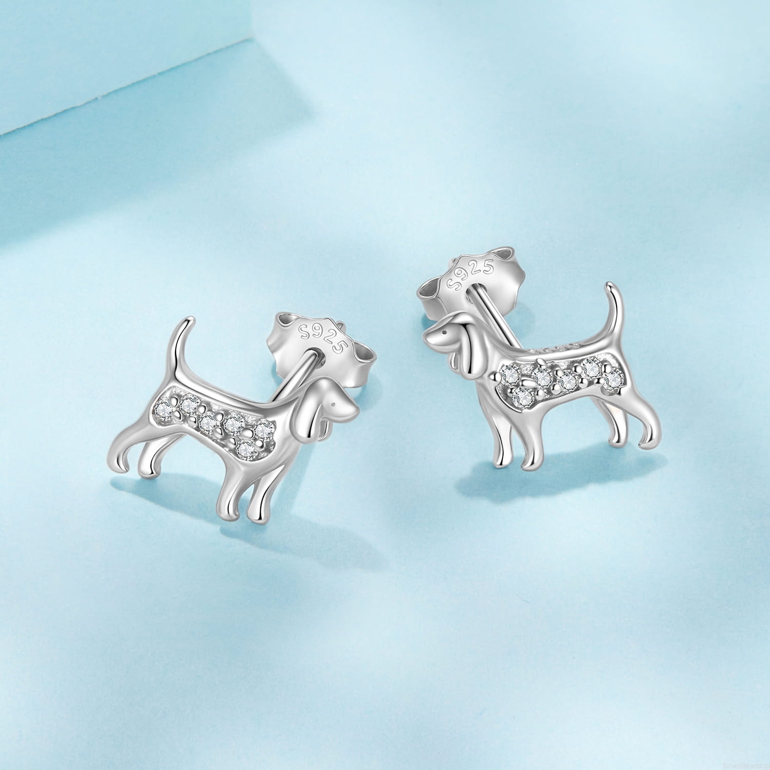 Srebrne kolczyki PSY myśliwskie sztyfty srebro 925 z kryształkami