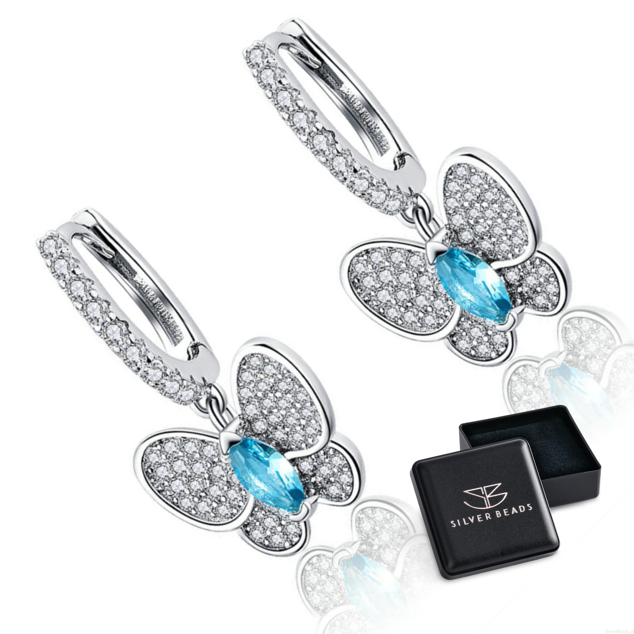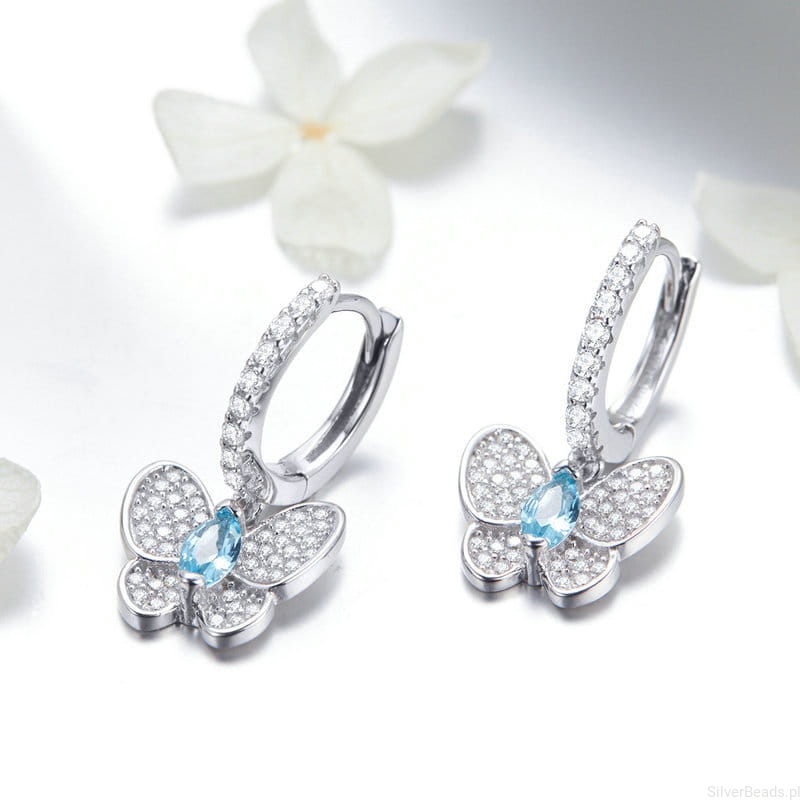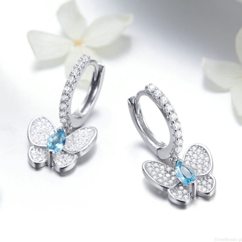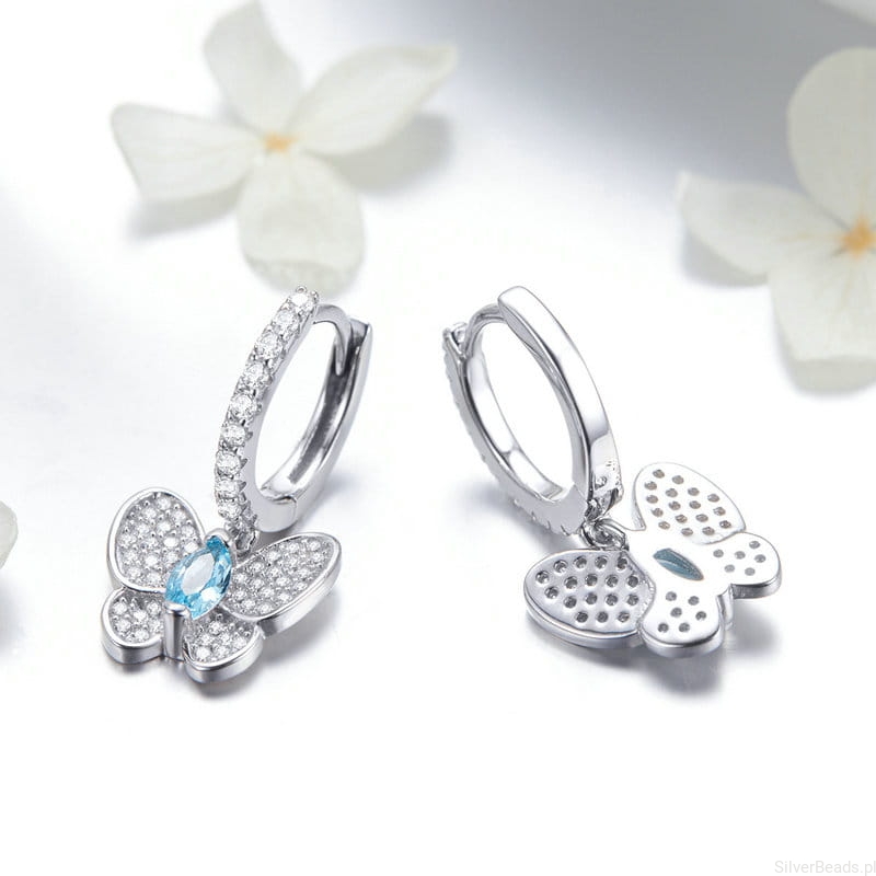 Te srebrne kolczyki z motylami symbolizują wolność, przemianę i lekkość bycia. Motyl to znak nowego początku, a błękitny kamień w centrum dodaje im świeżości i harmonii. Lśniące skrzydła przyciągają światło, podkreślając subtelną elegancję. Idealne dla osób, które cenią piękno zmian i żyją z otwartym sercem.