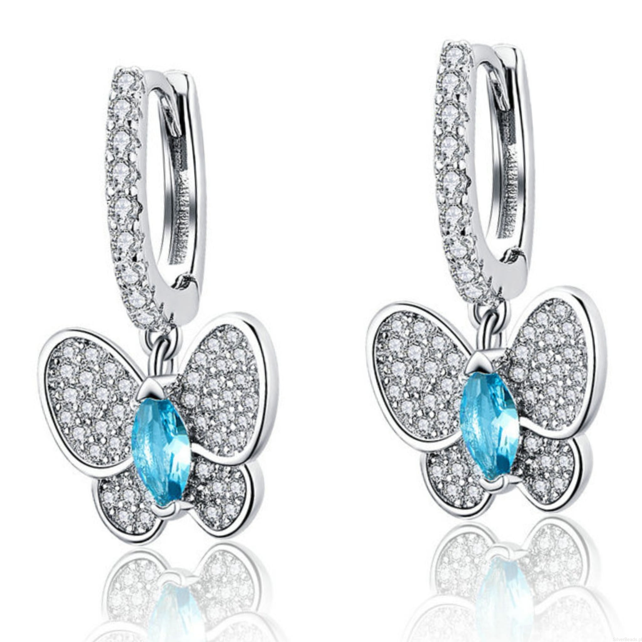Srebrne kolczyki koła z wiszącymi motylkami zatrzaski srebro 925