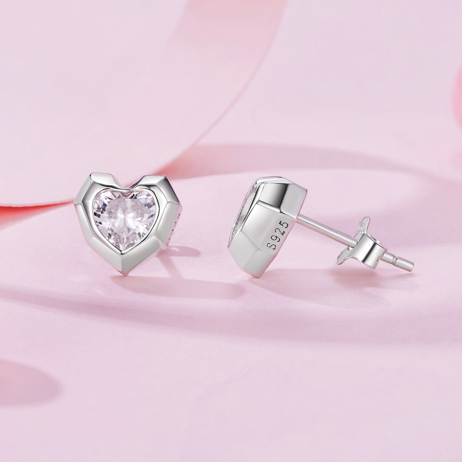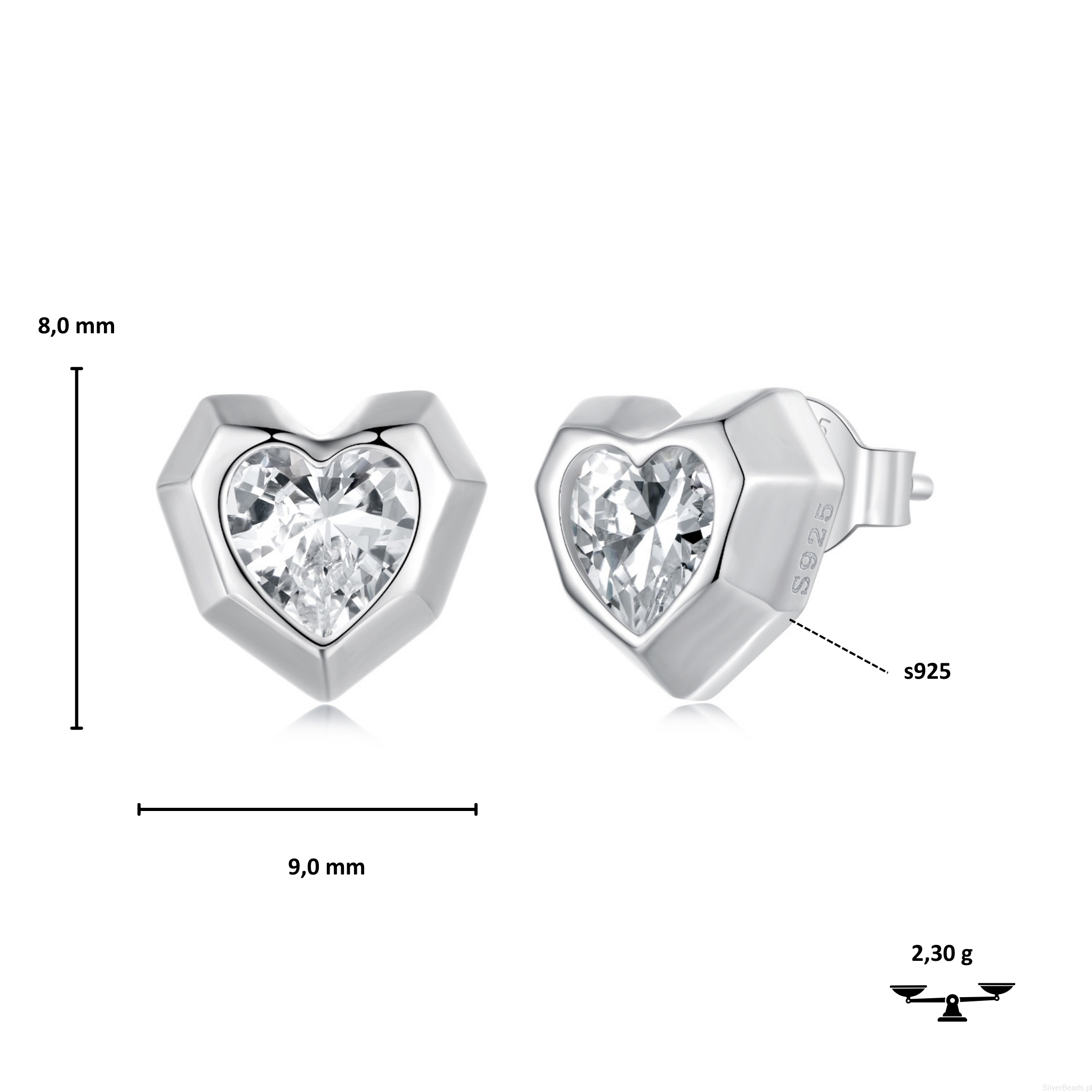 Srebrne kolczyki kryształowe serca sztyfty dla dziewczynki