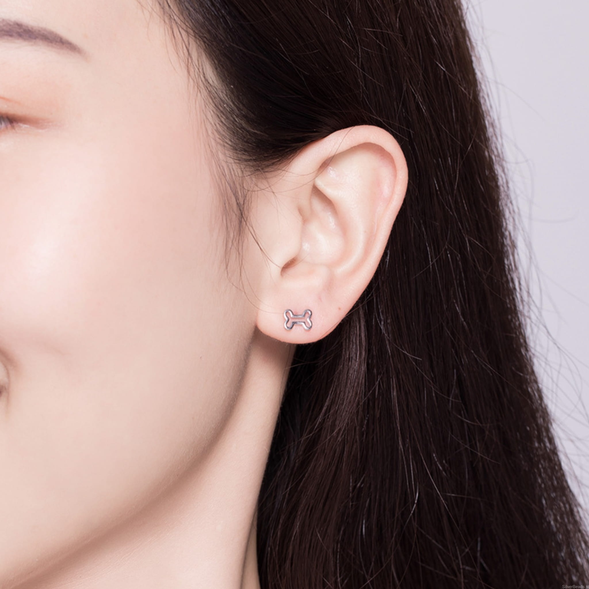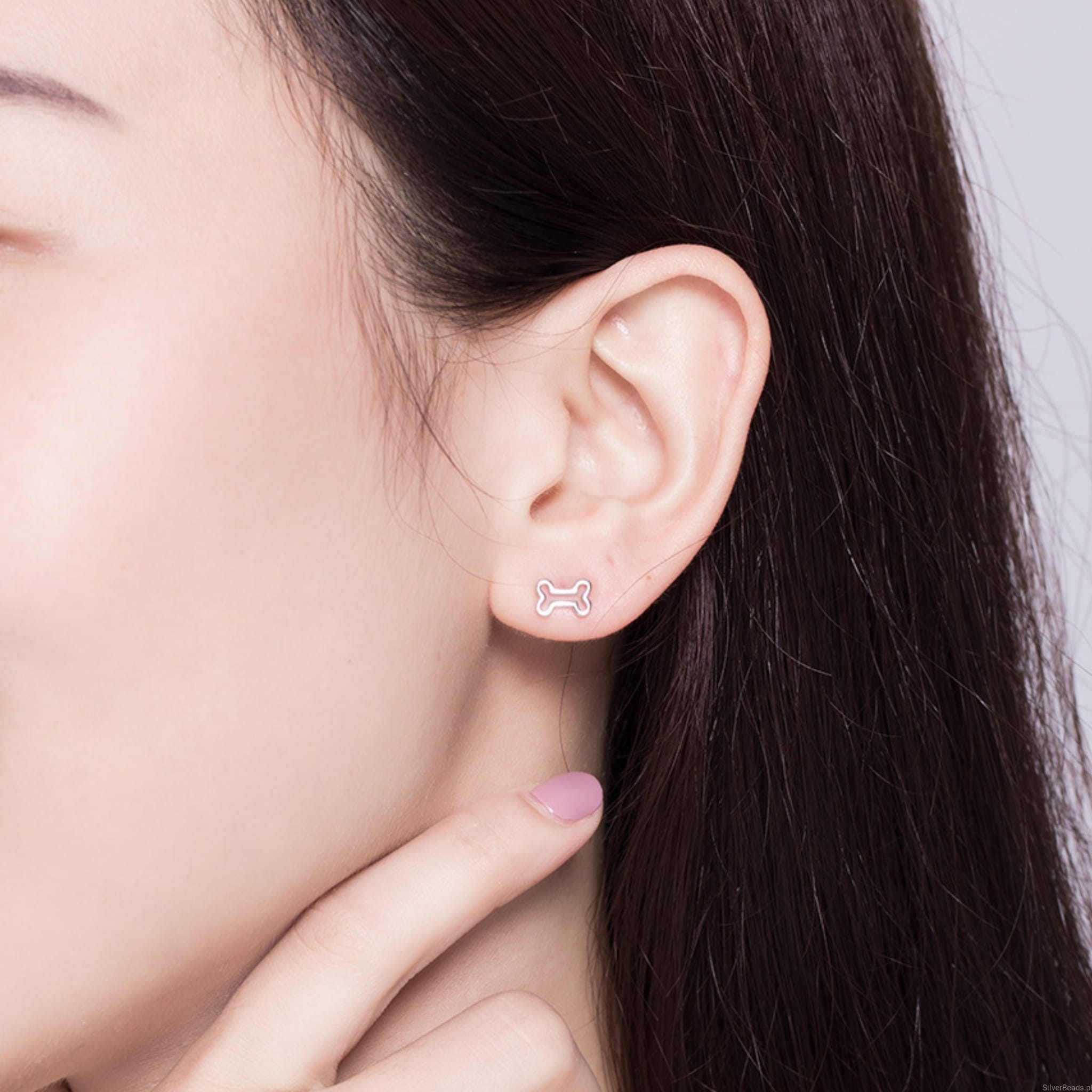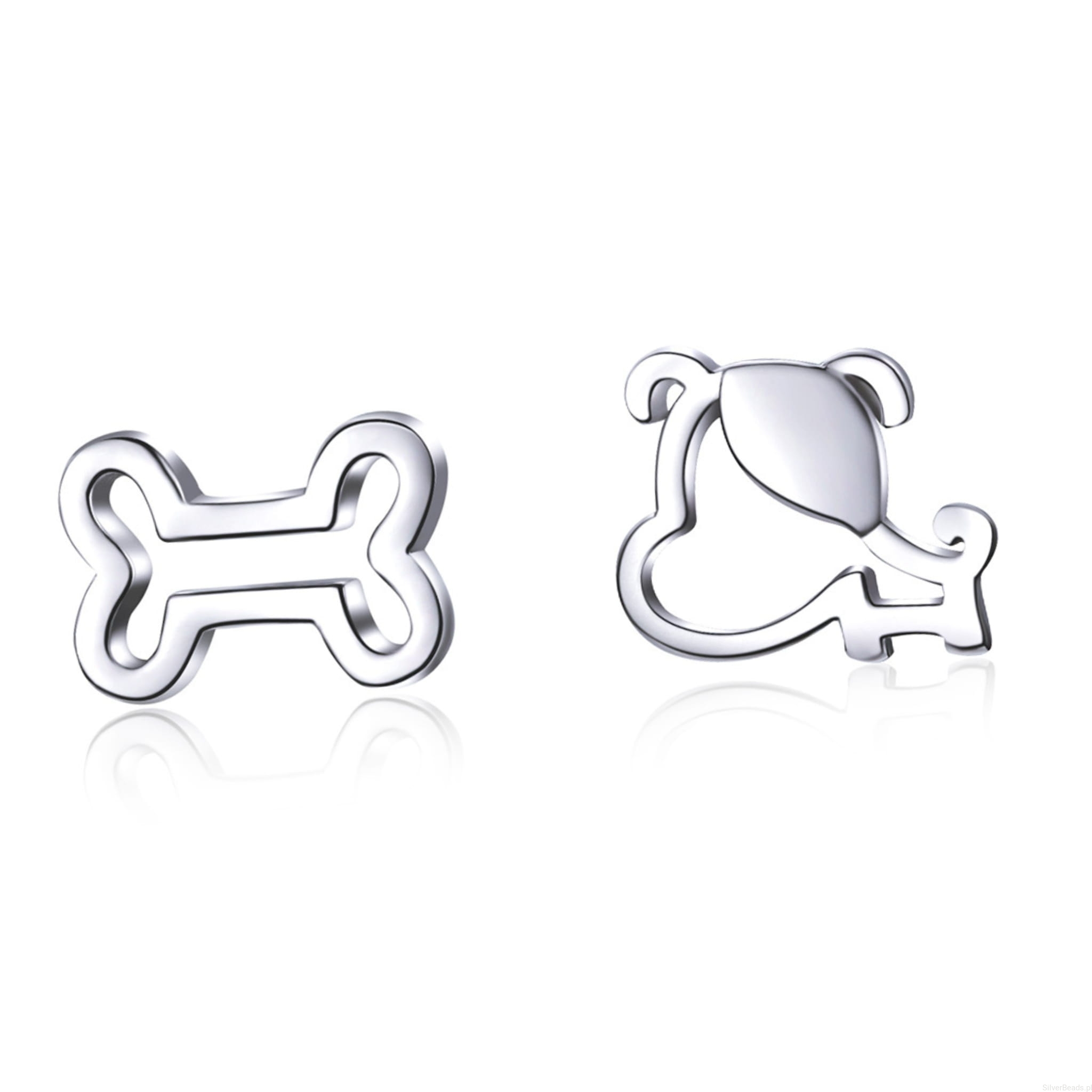 Srebrne kolczyki piesek z kostką.