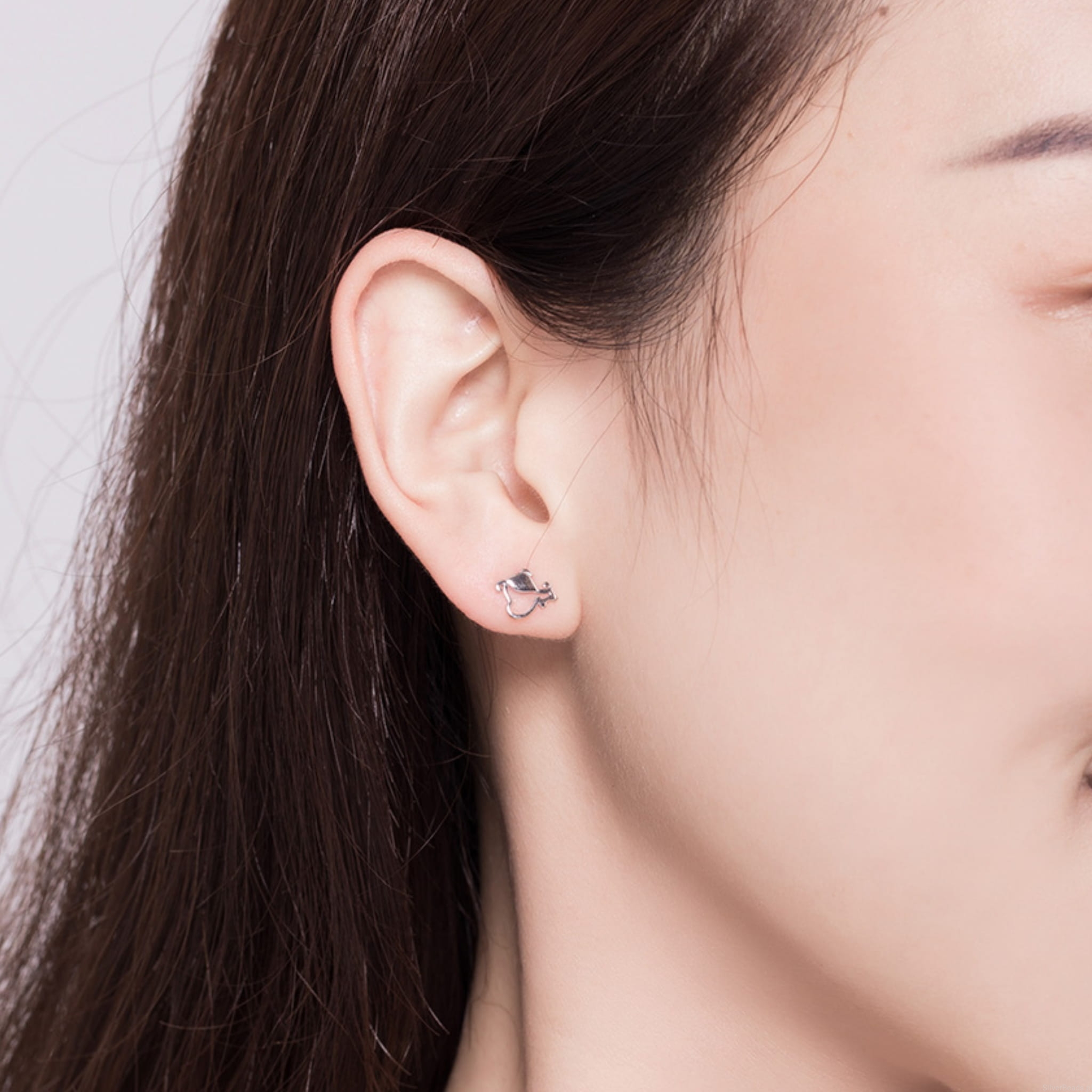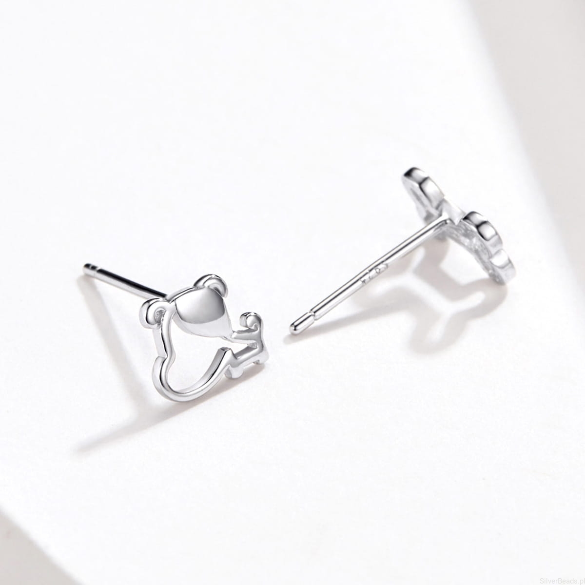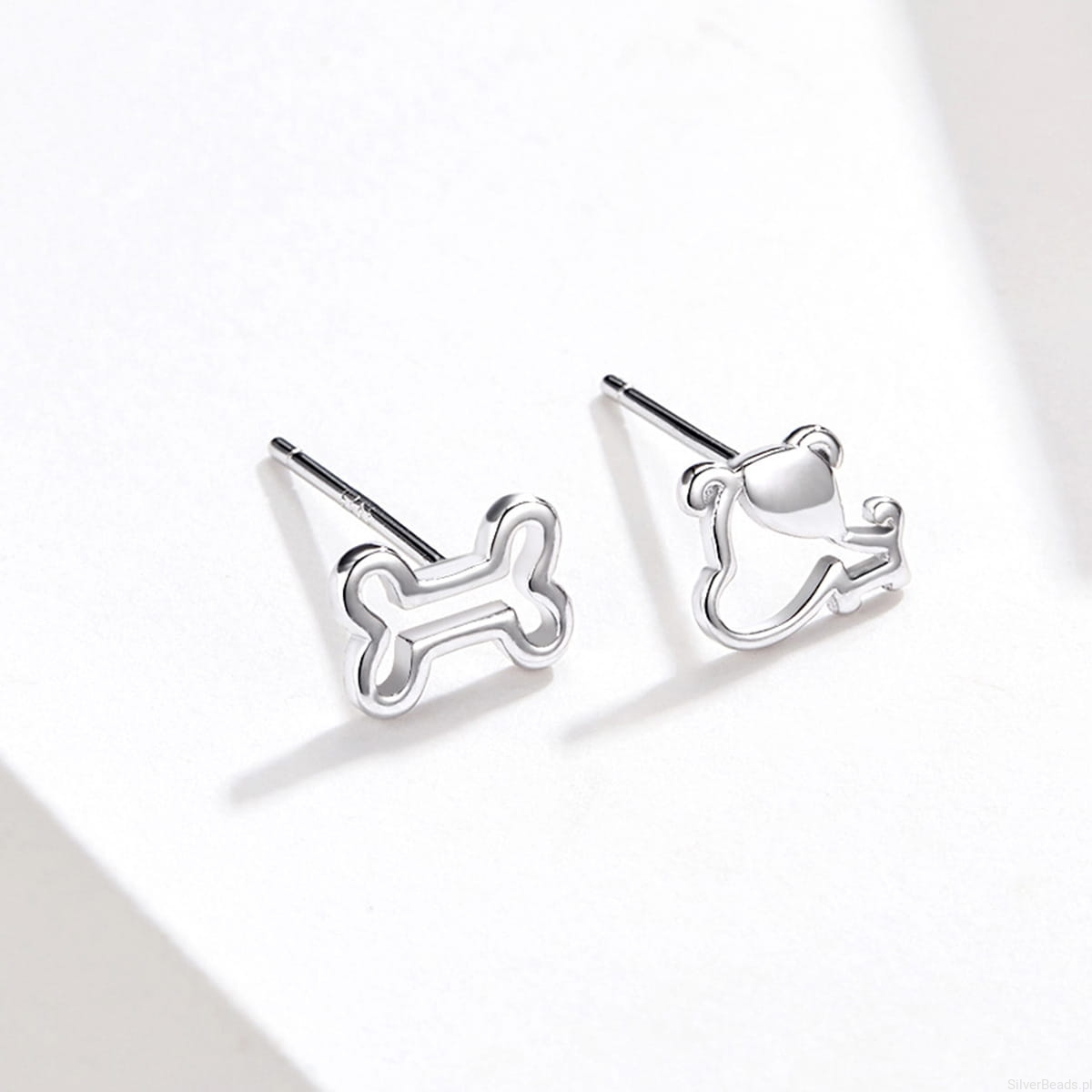 Srebrne kolczyki piesek z kostką.