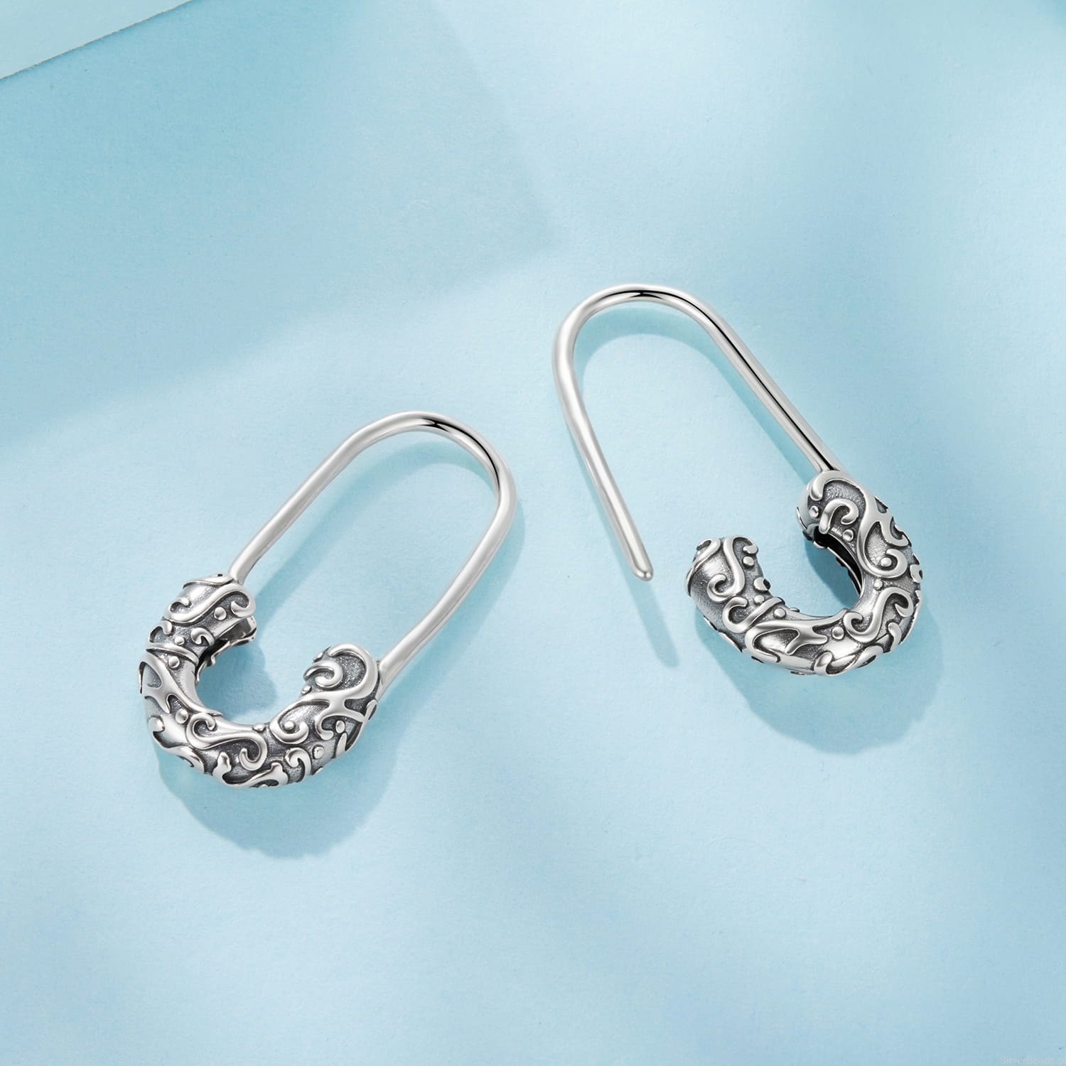 Srebrne kolczyki retro AGRAFKI z ornamentami s925