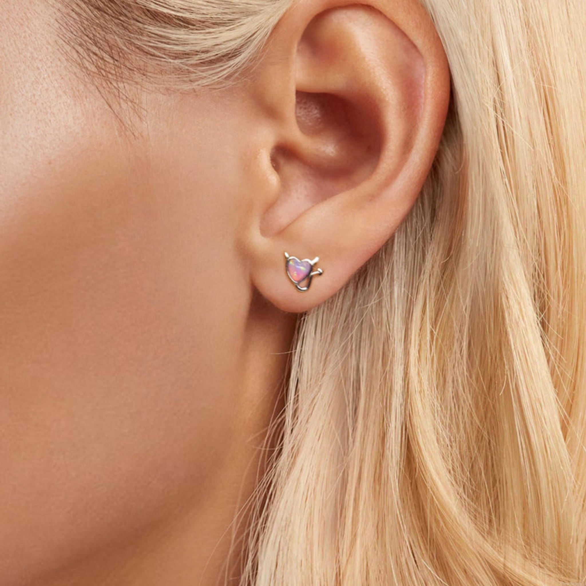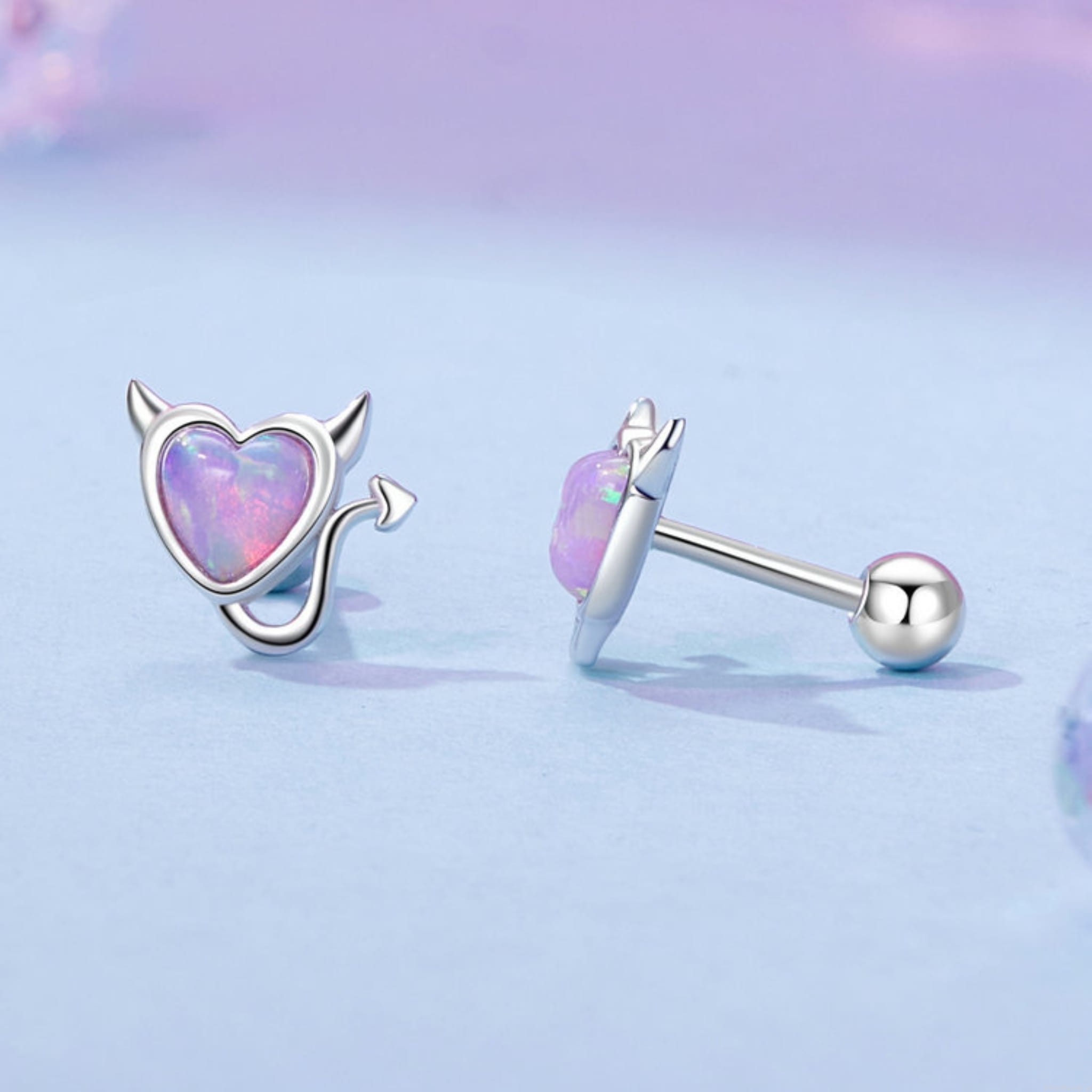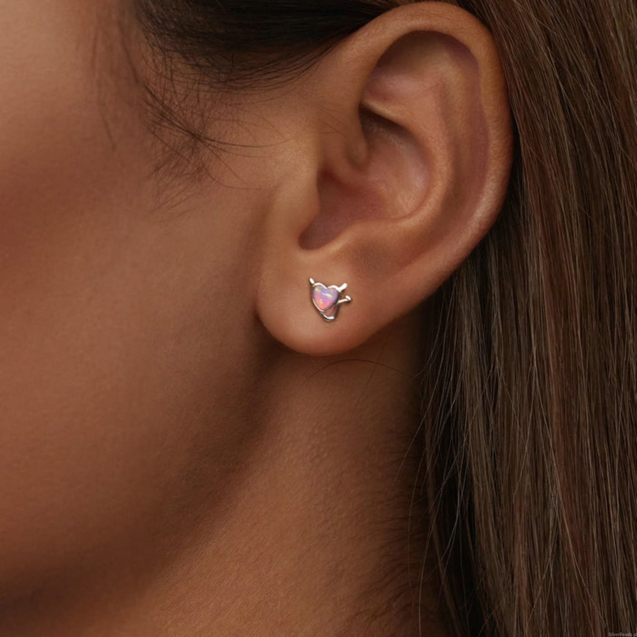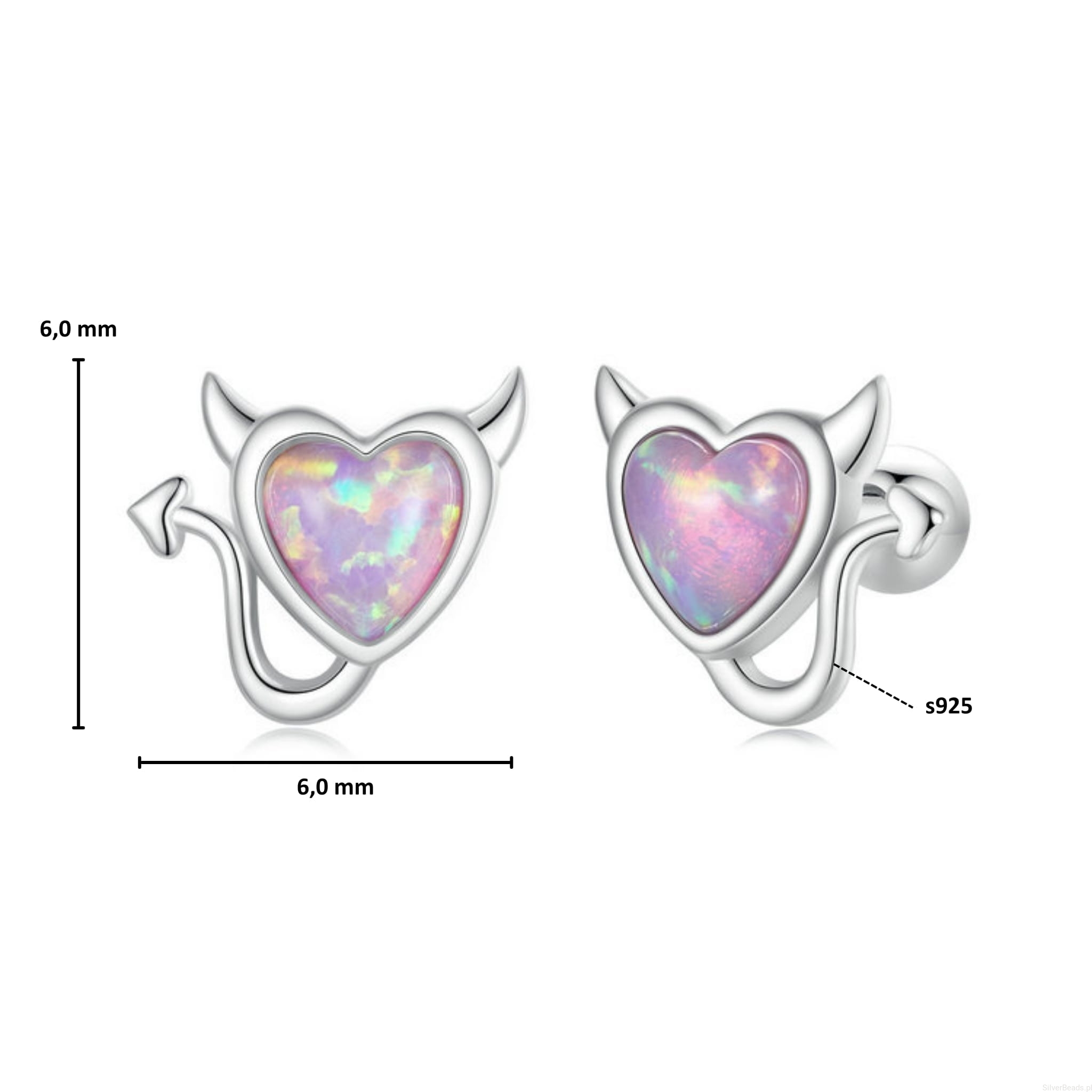 Srebrne kolczyki sztyfty: serca diabełki.