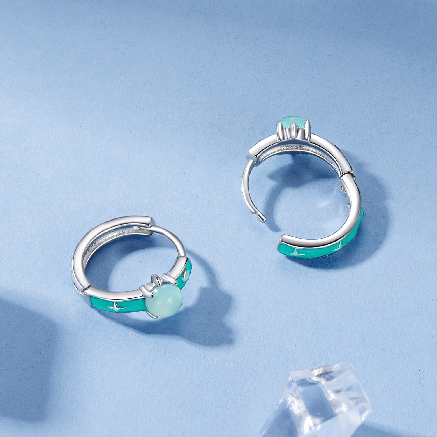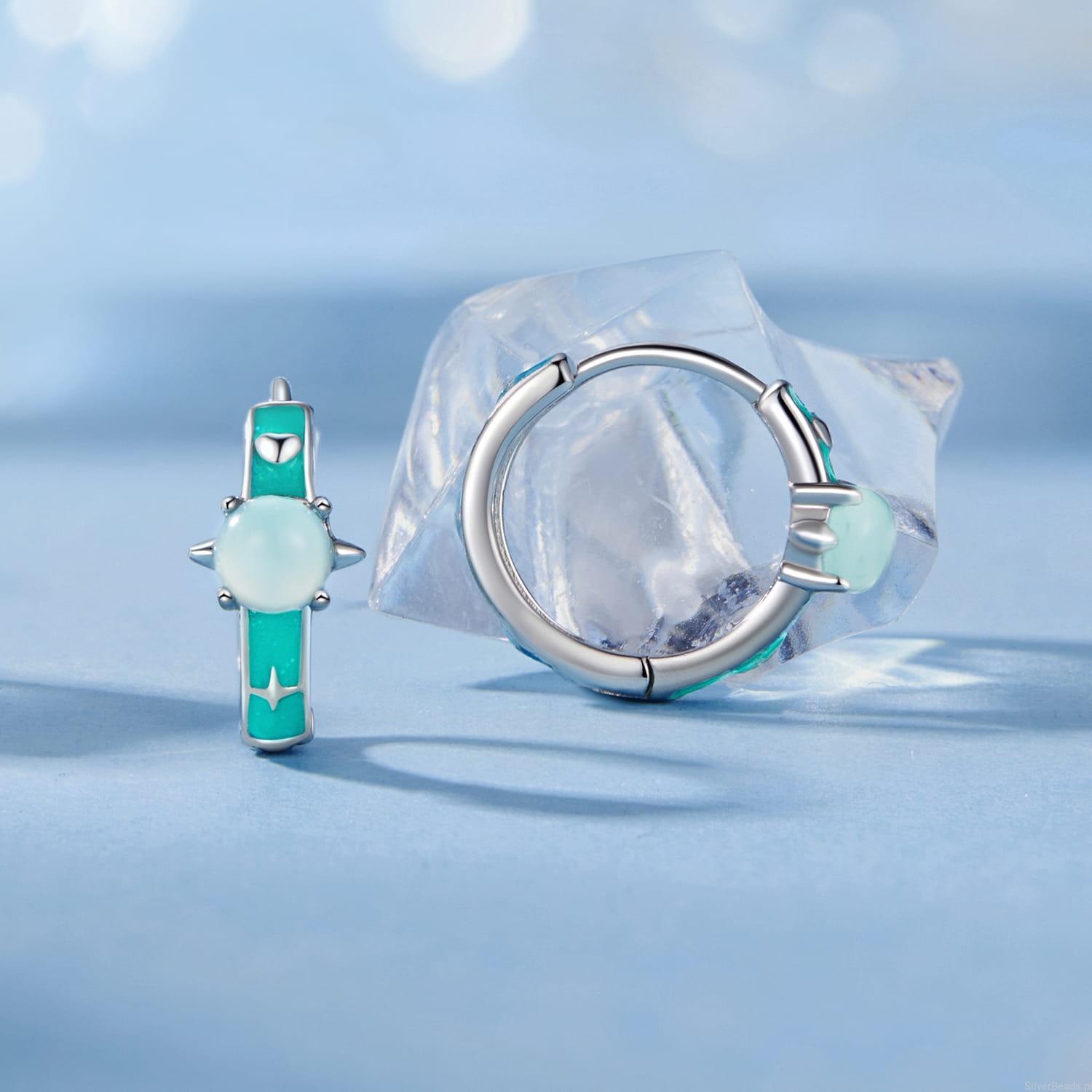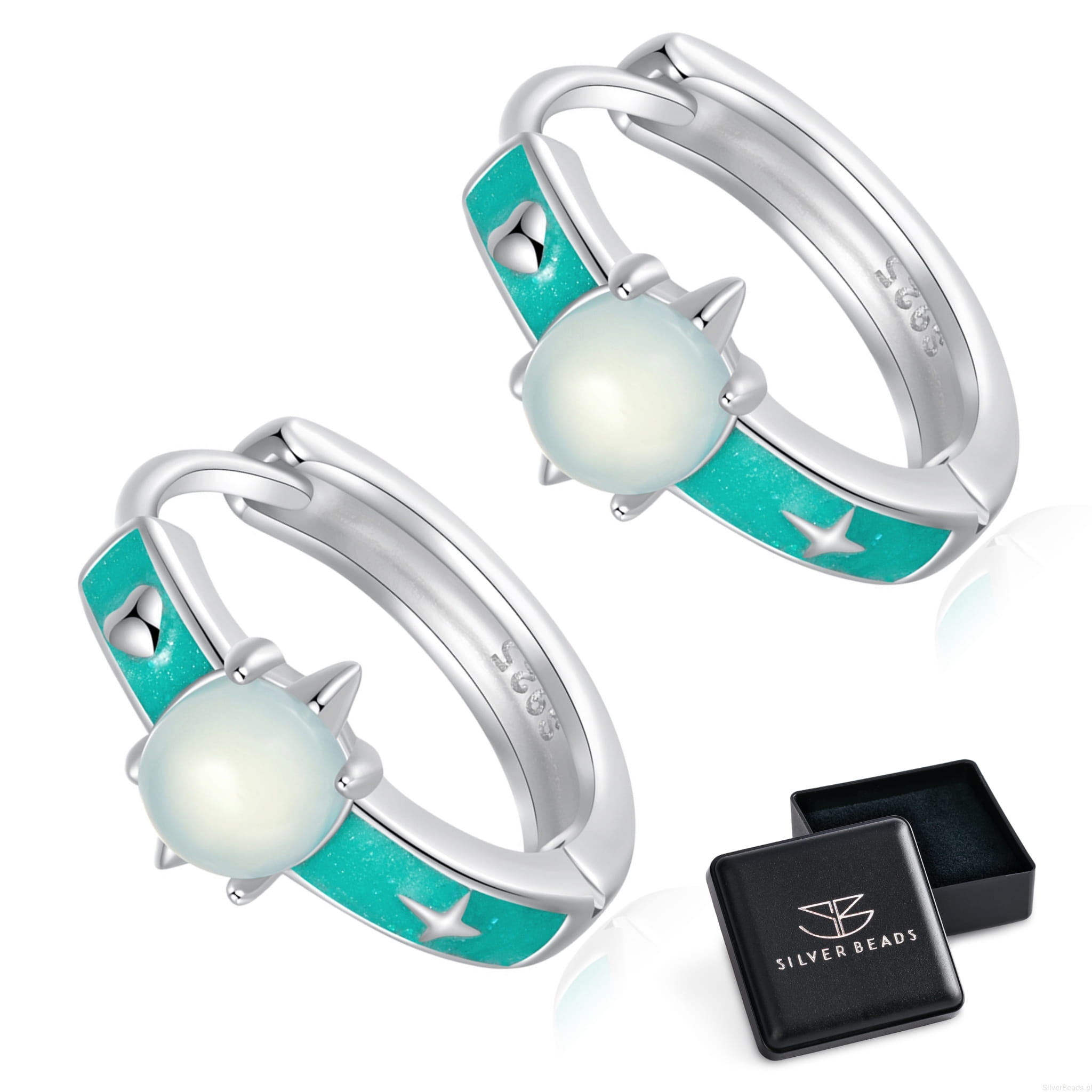 Srebrne kolczyki turkusowe koła z opalizującymi planetami zatrzaski srebro 925
