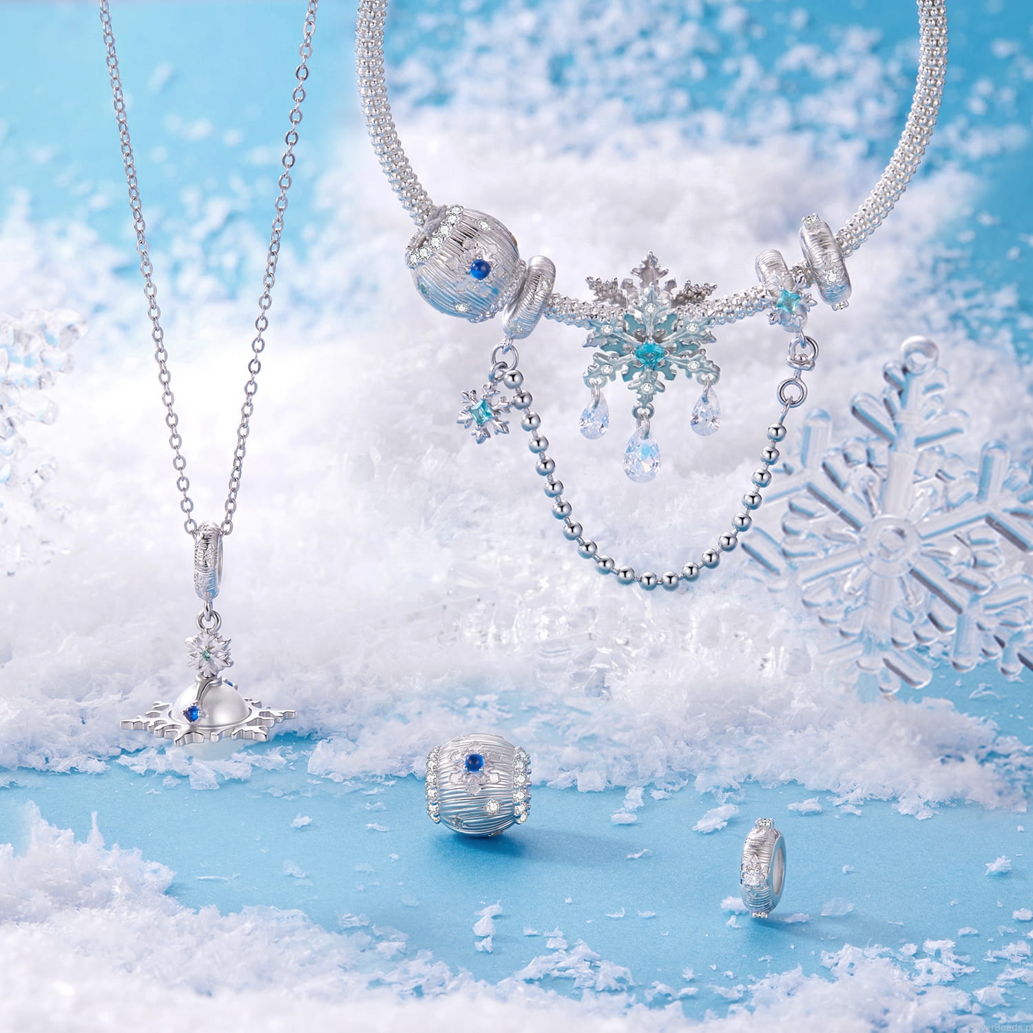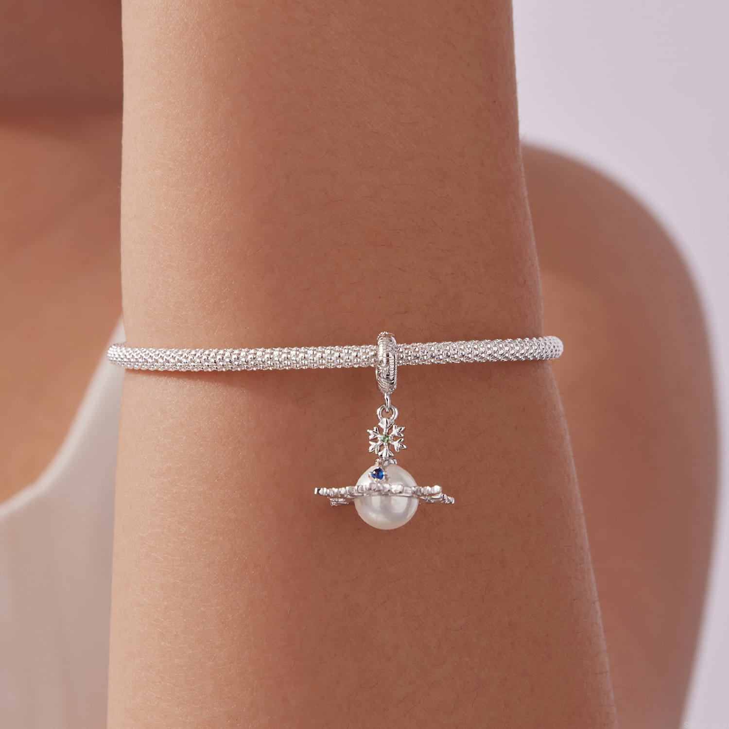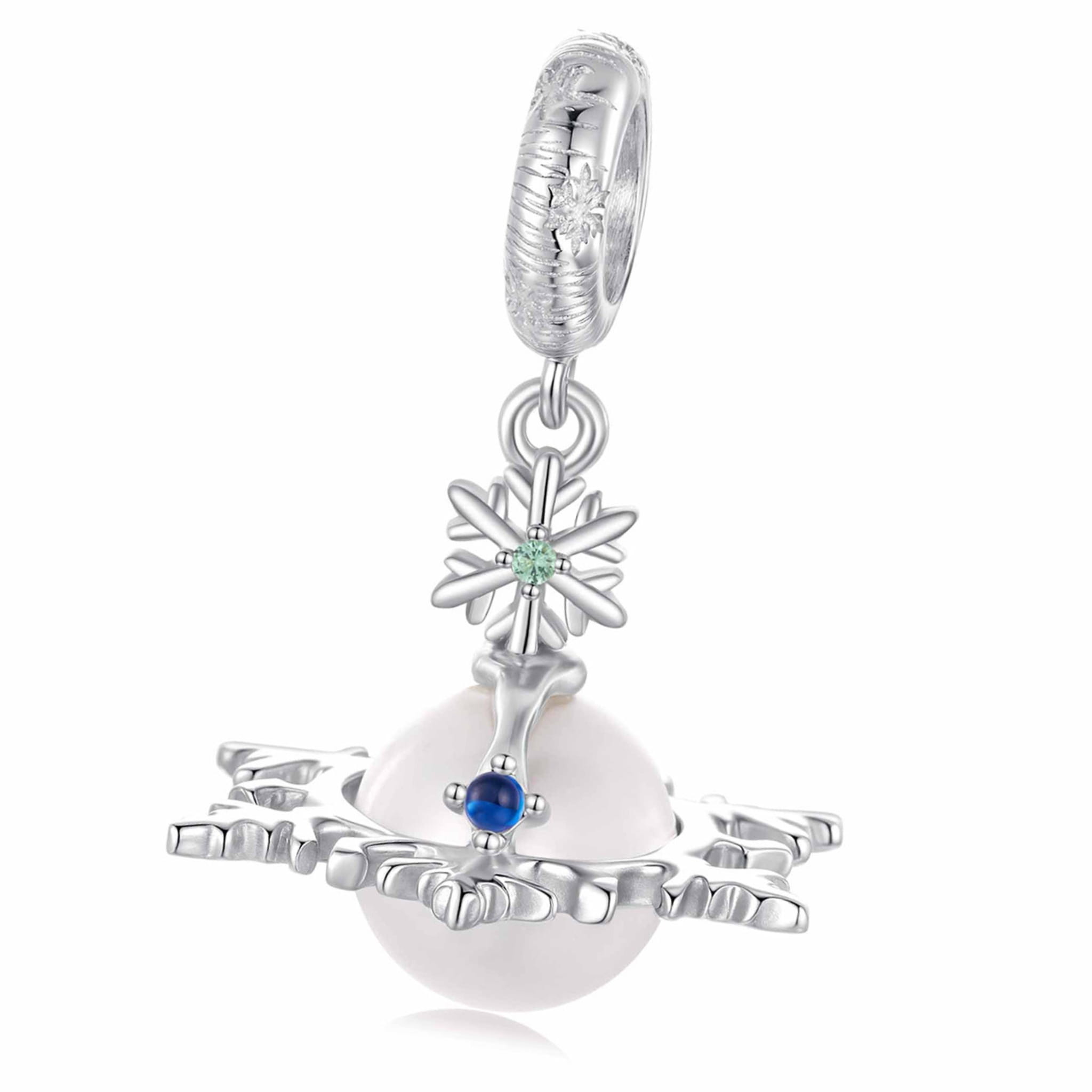 Srebrny charms ŚNIEŻYNKA Z PEREŁKĄ zawieszka beads srebro 925