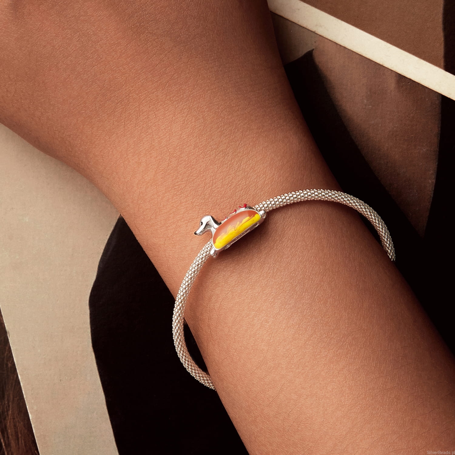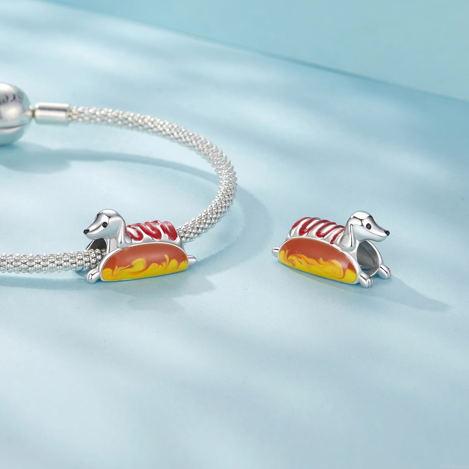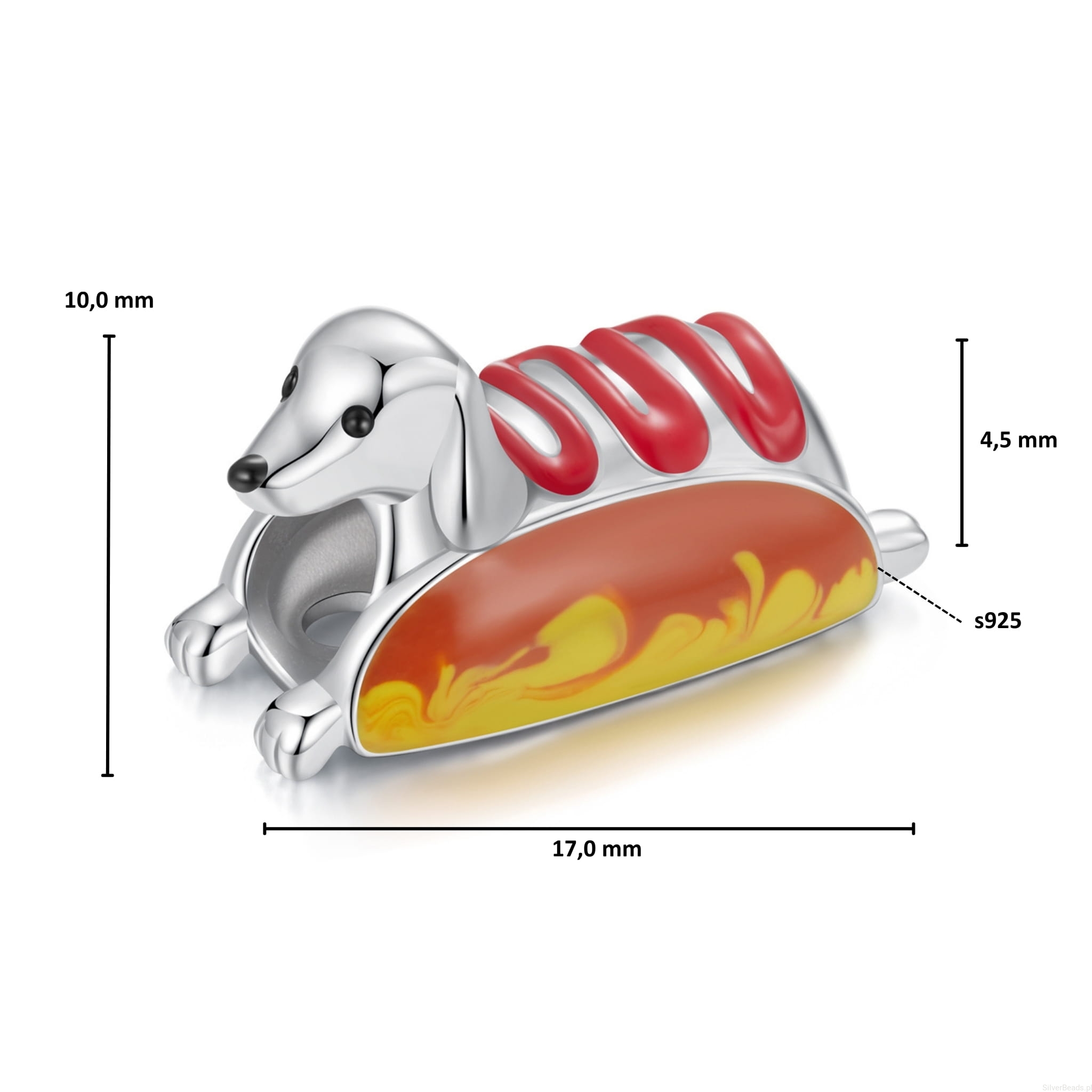 Srebrny charms jamnik hot dog koralik beads srebro 925