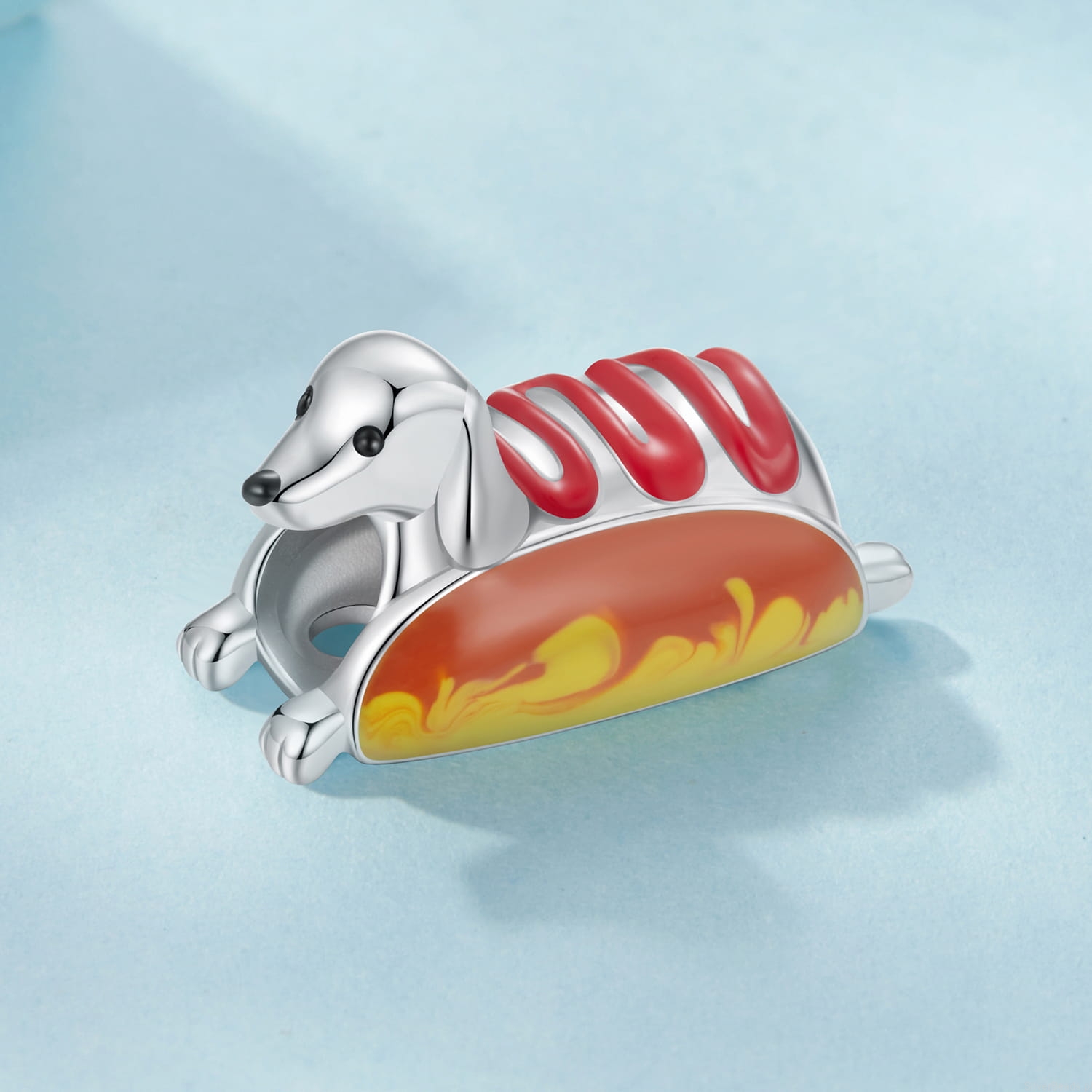 Srebrny charms: jamnik hot dog.