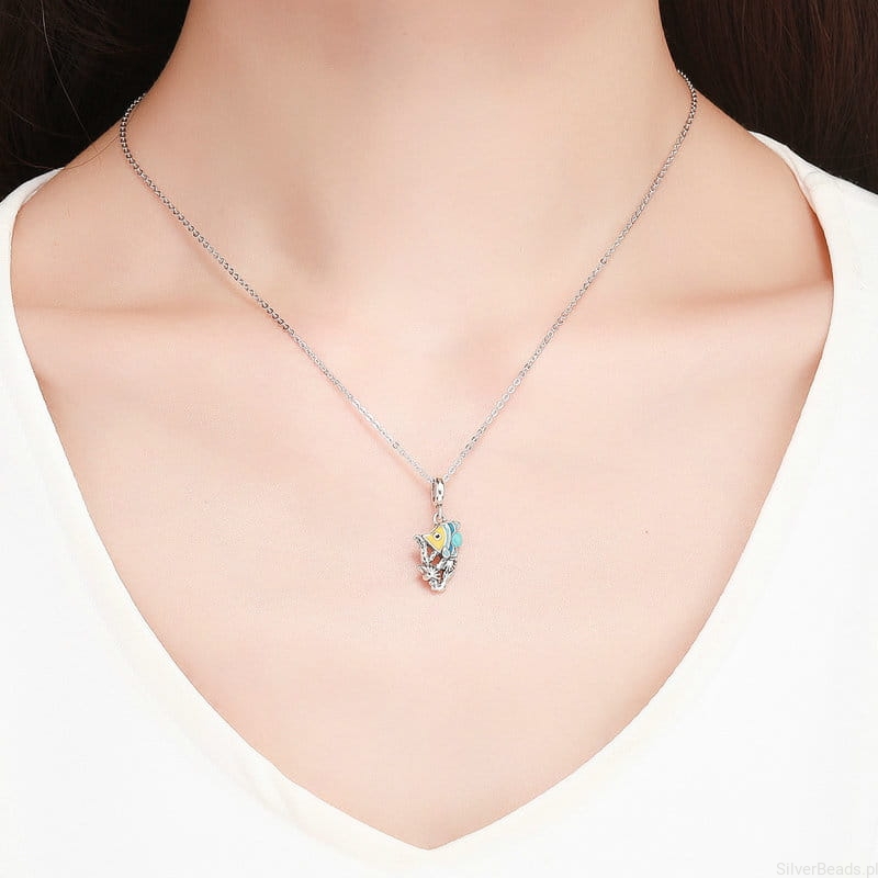 Srebrna zawieszka charms: kolorowa rybka.