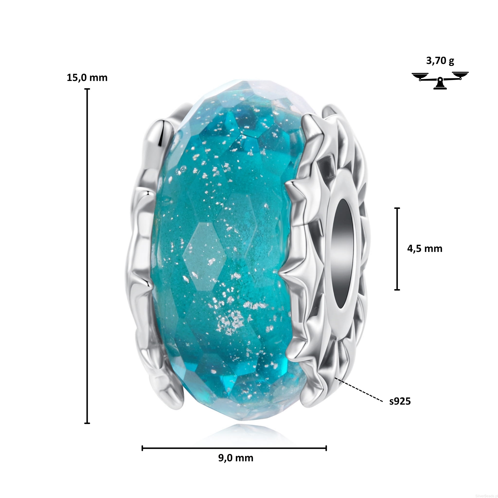 Charms pasuje do wszystkich bransoletek modułowych znanych producentów. Może być także wykorzystany jako zawieszka do naszyjnika.
