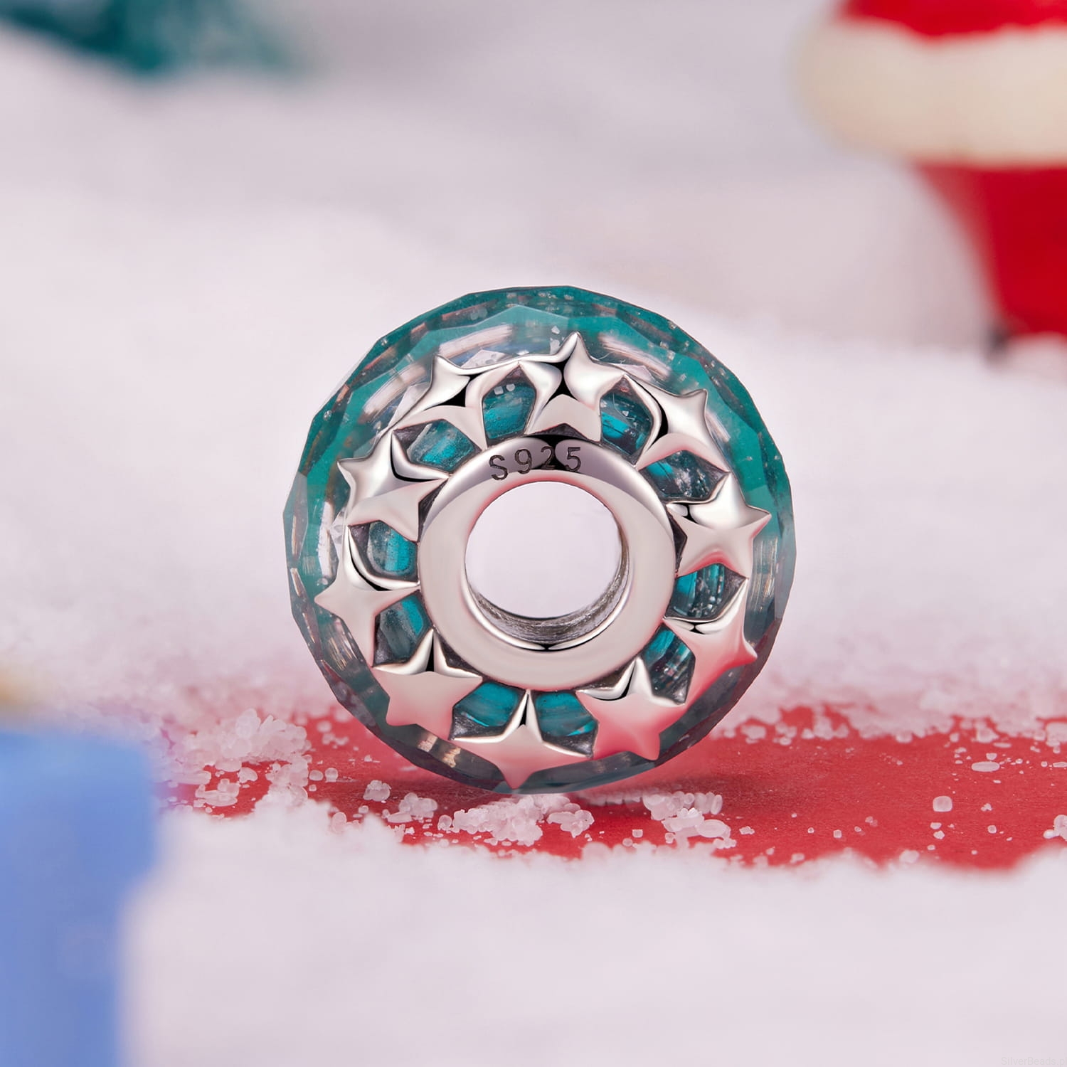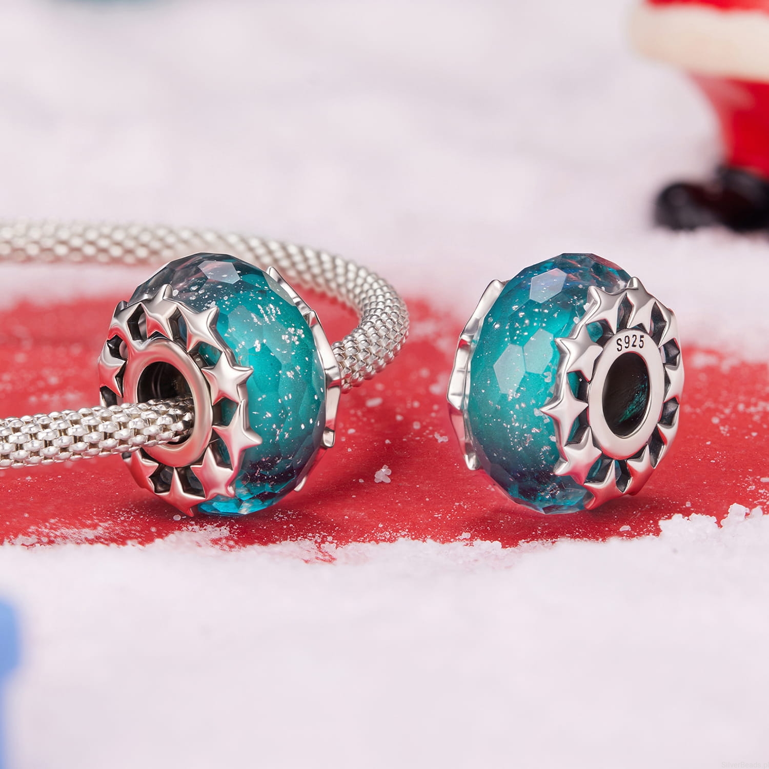Srebrny charms ze szkła Murano z gwiazdkami srebrny koralik beads srebro 925