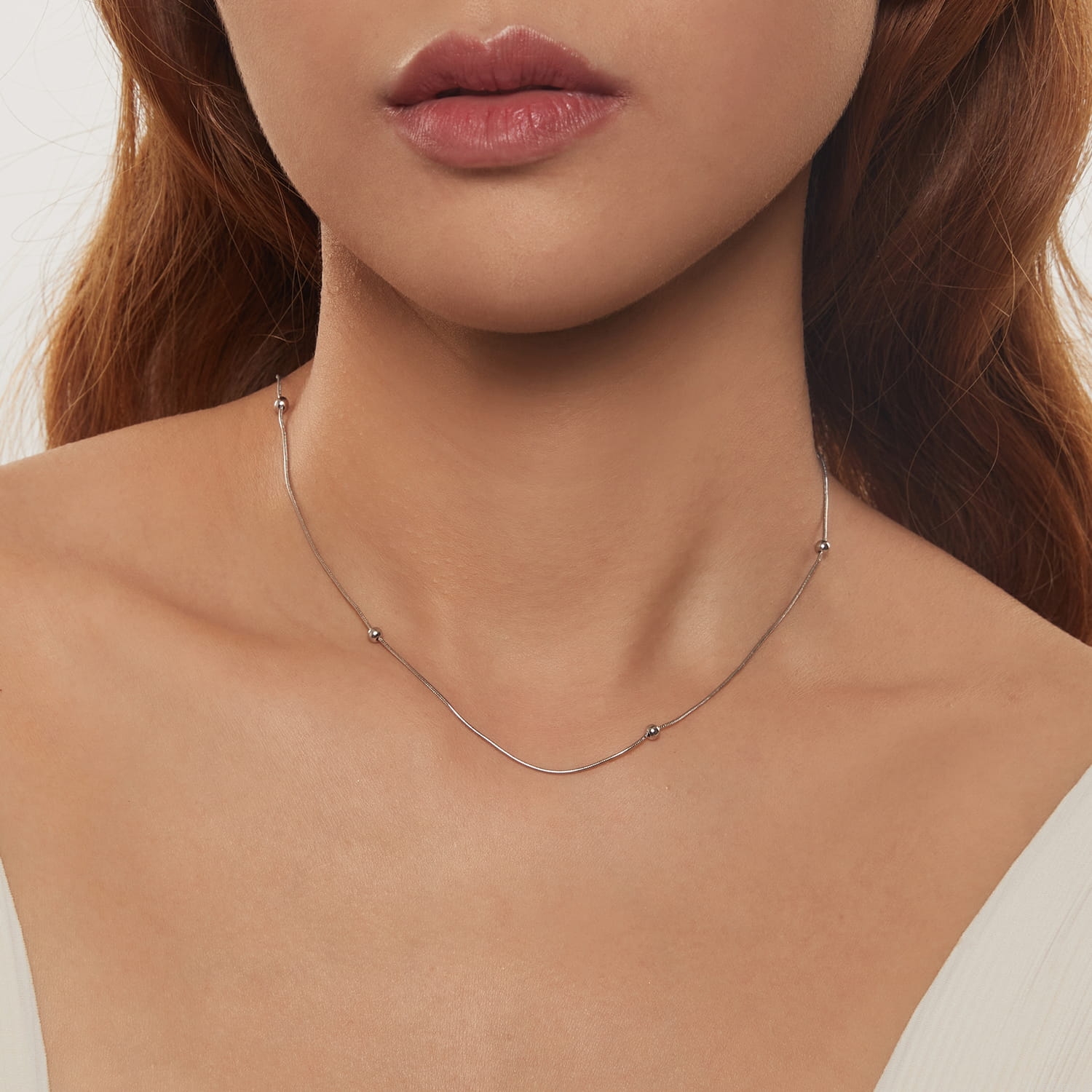 Srebrny naszyjnik: o splocie wężyk z kuleczkami.