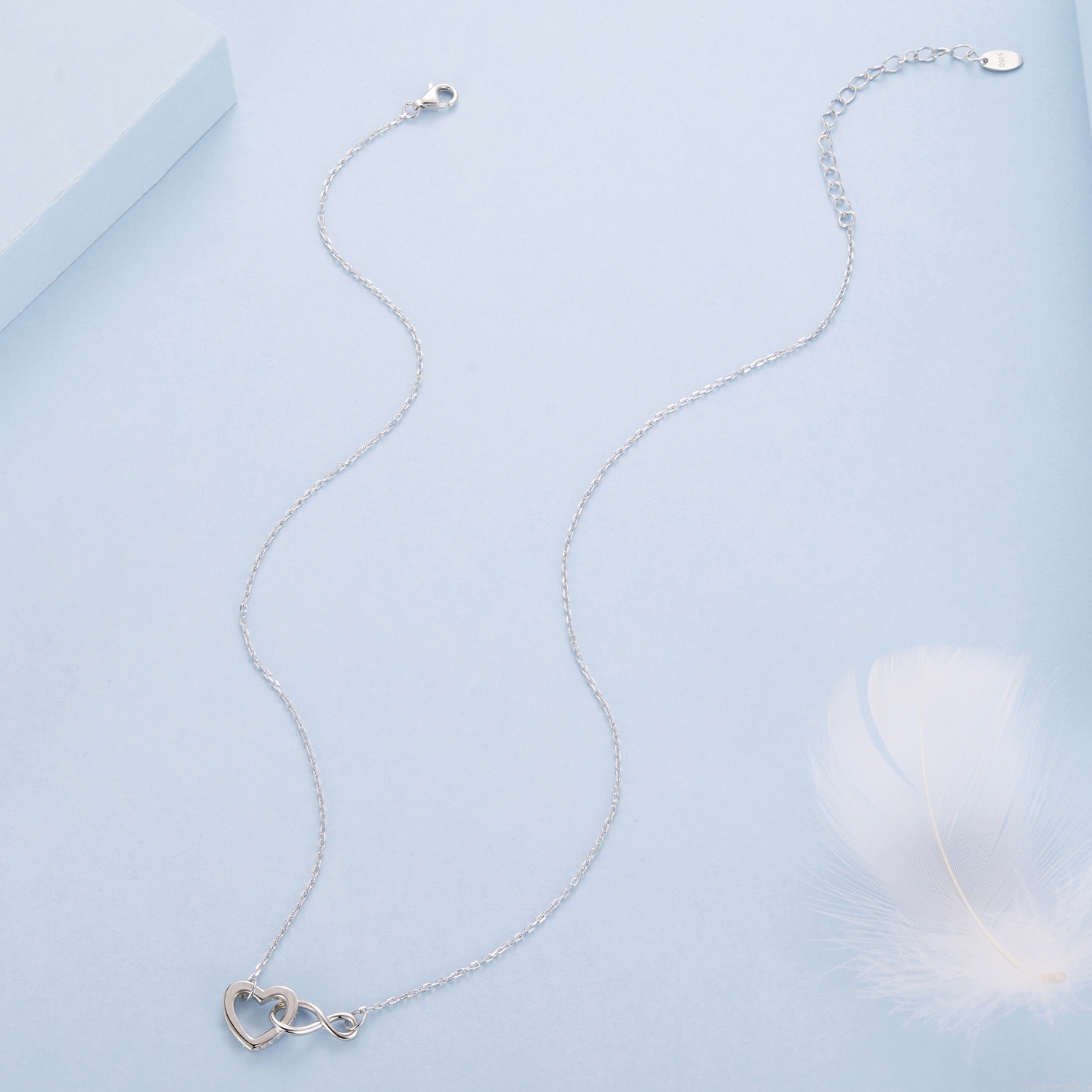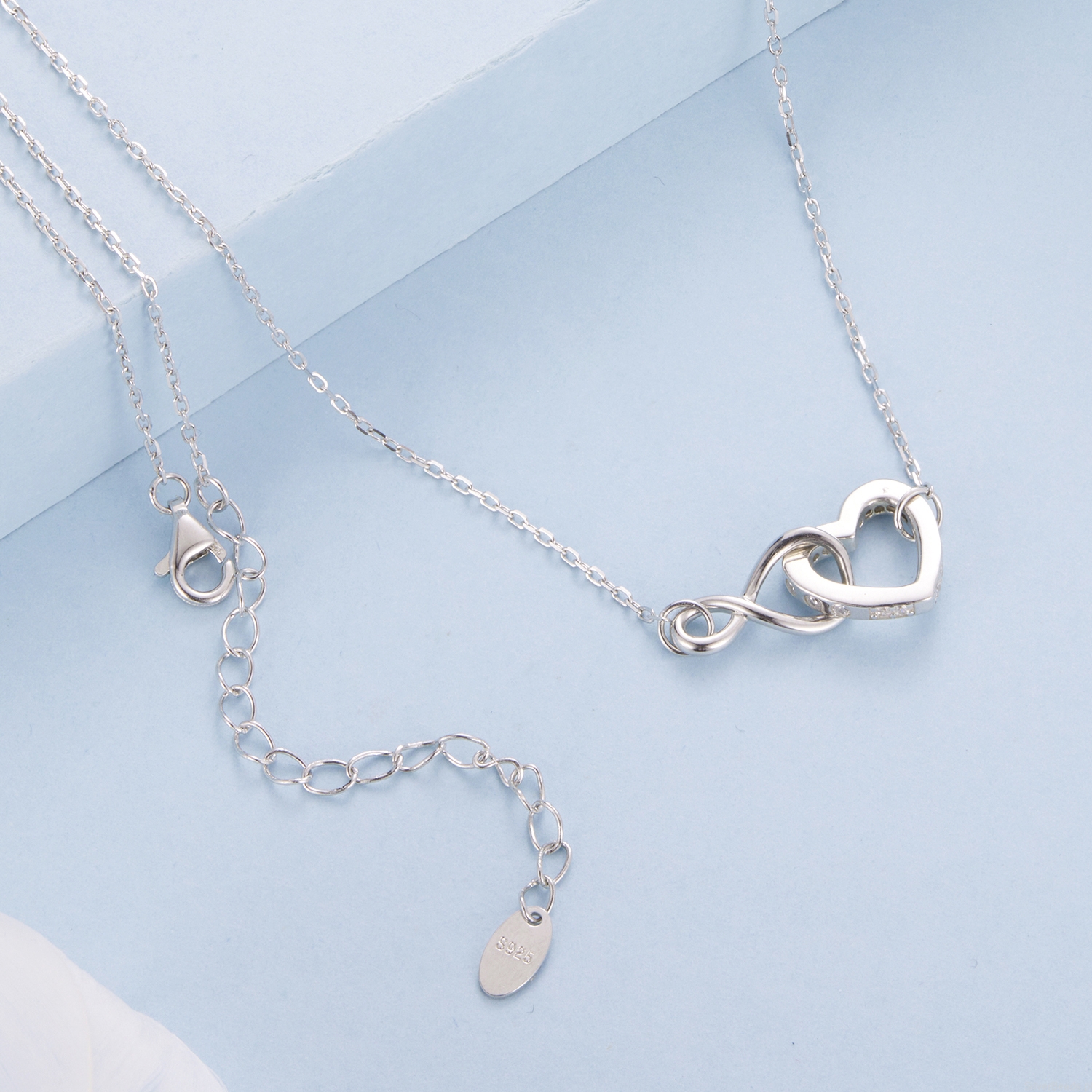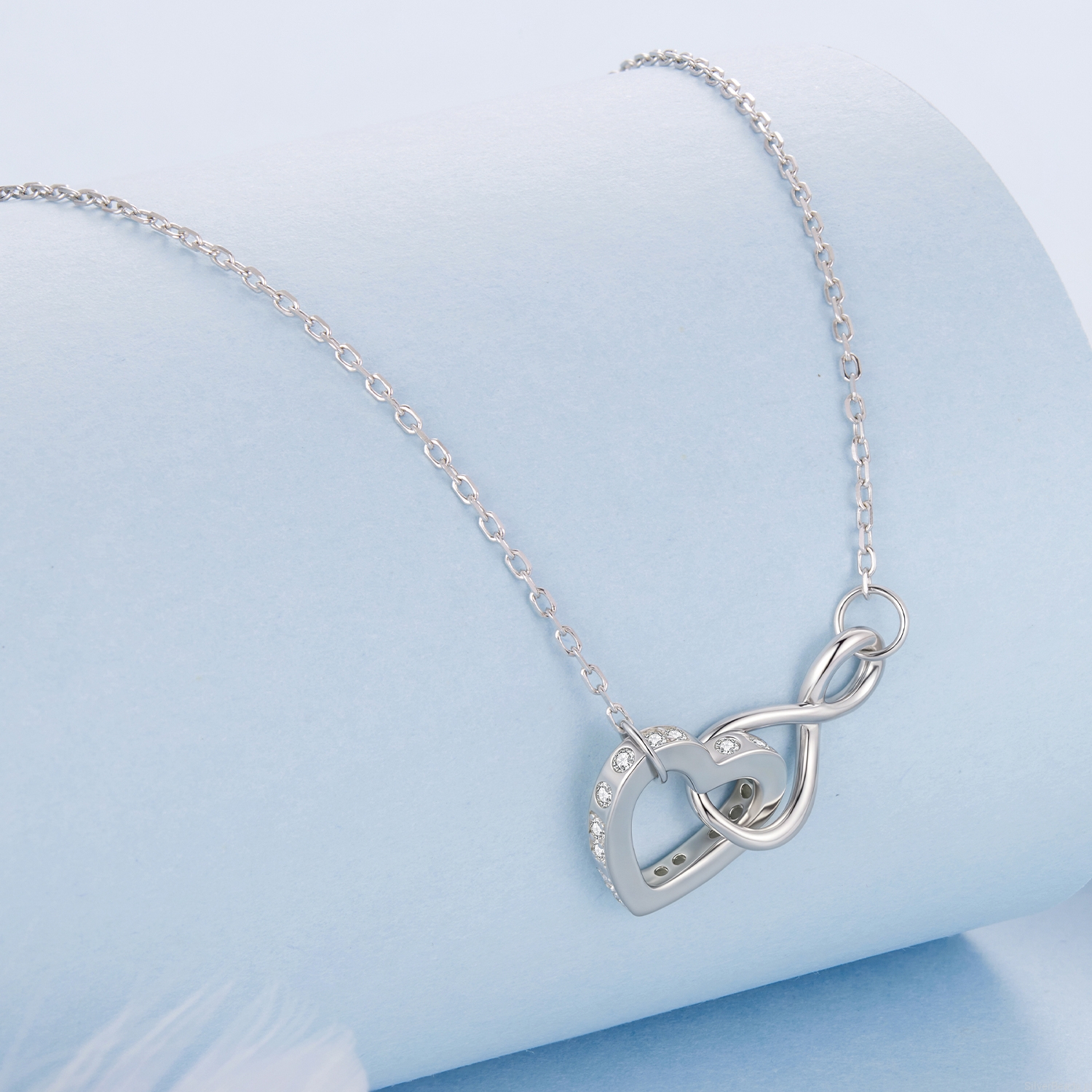 Srebrny naszyjnik: serduszko połączone ze znakiem nieskończoności.