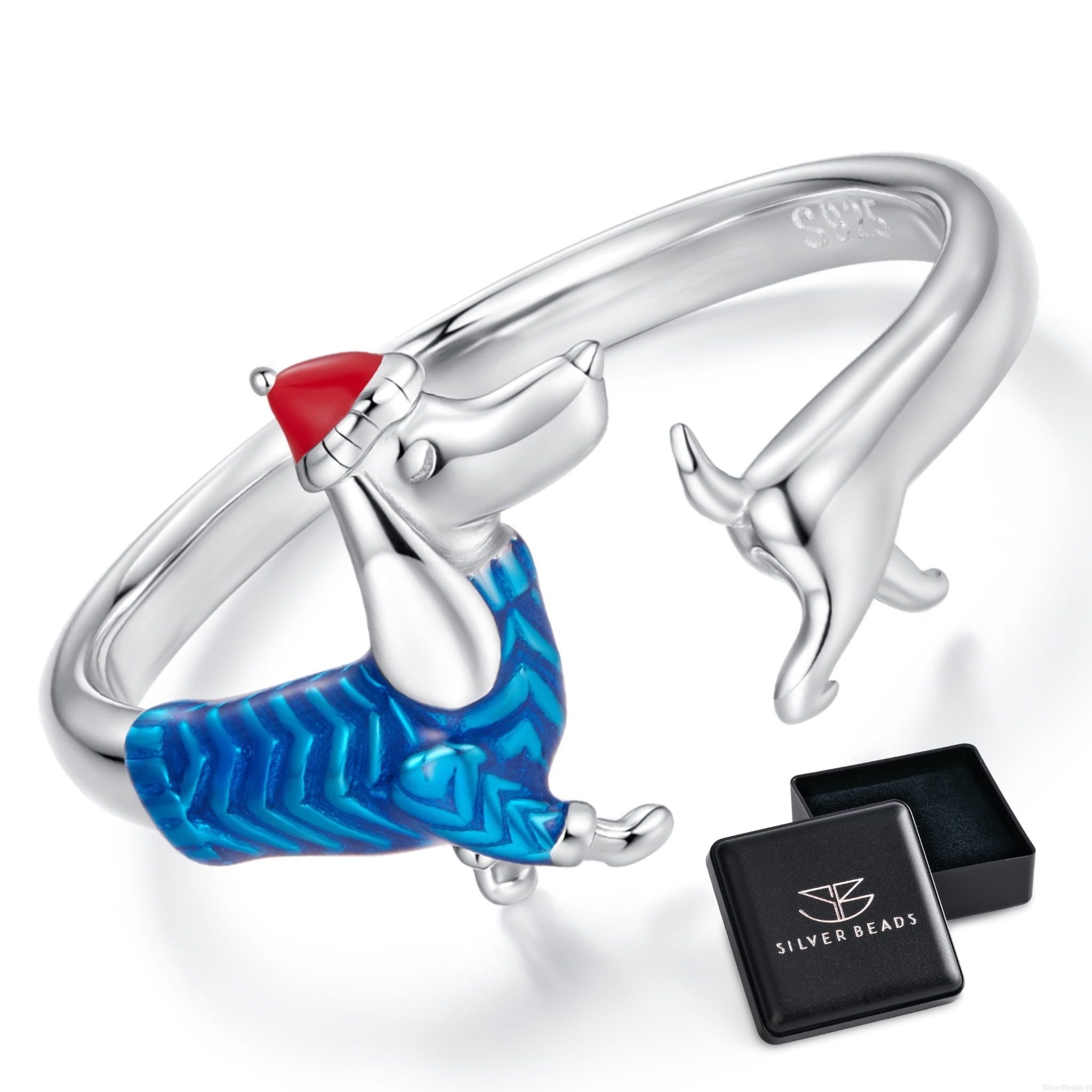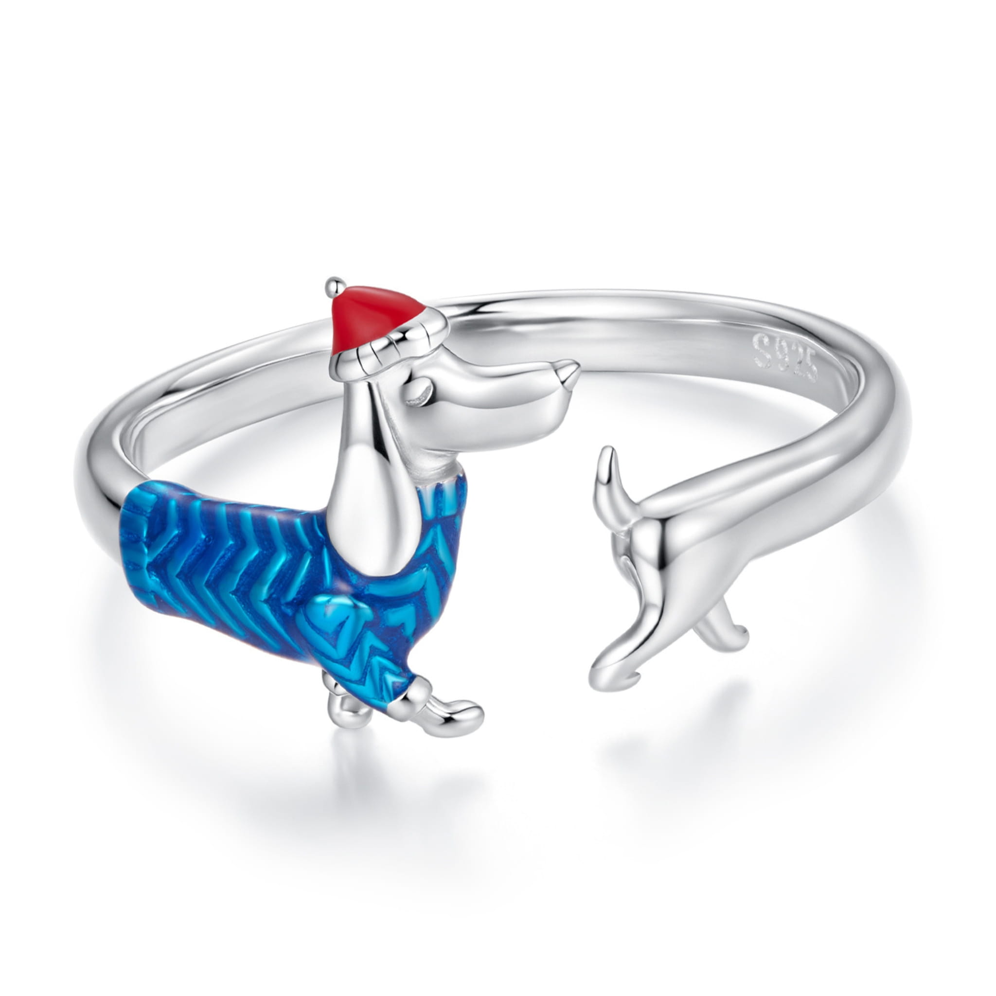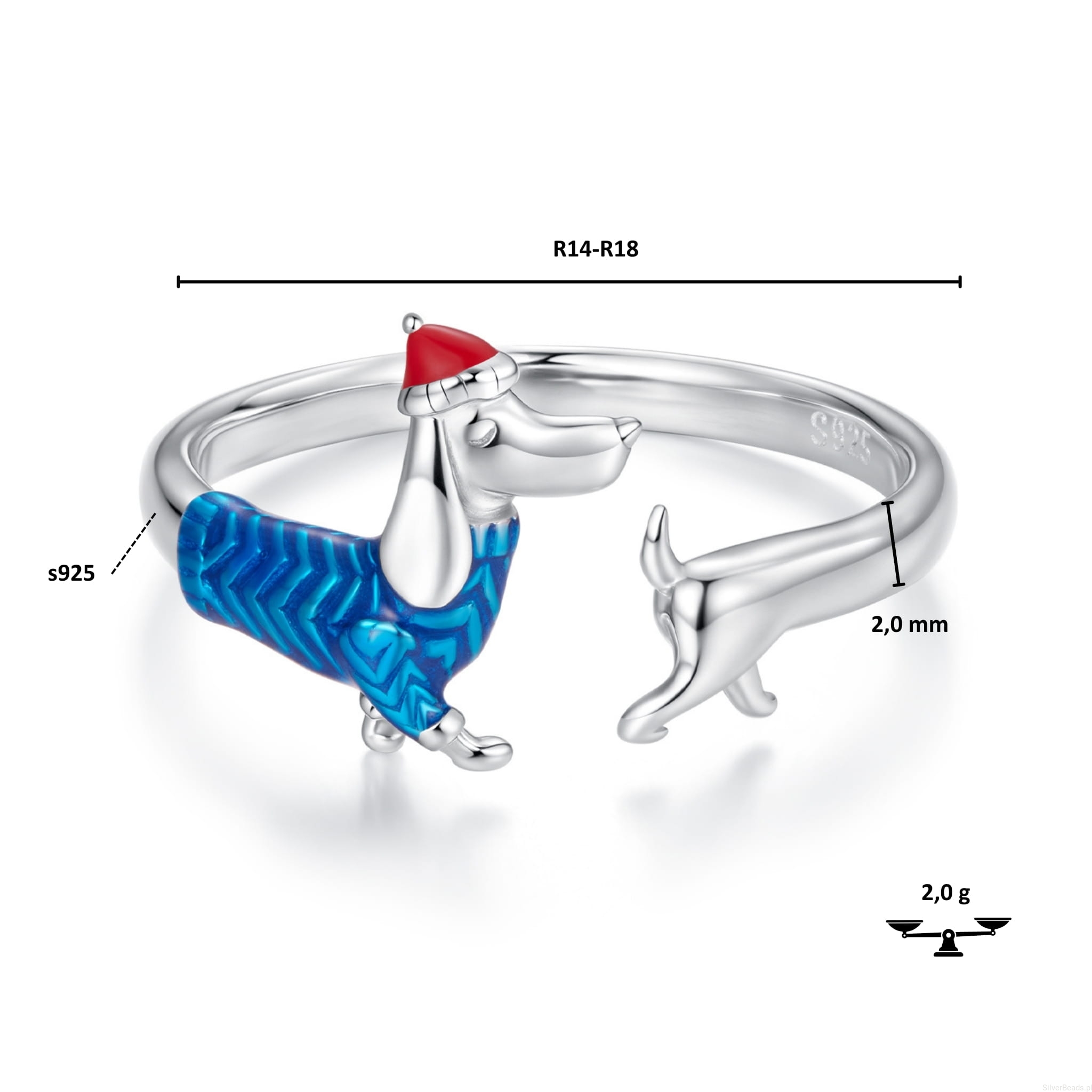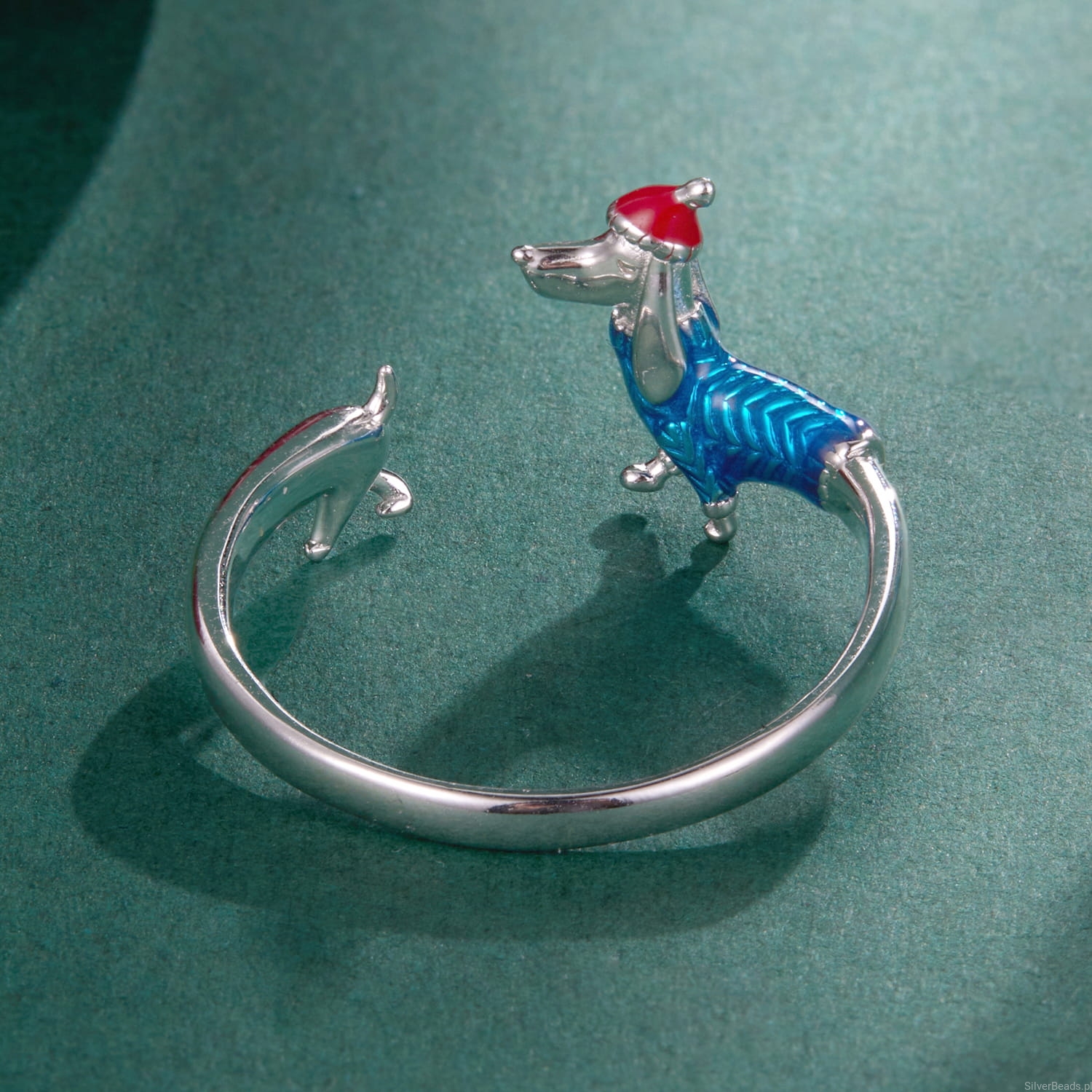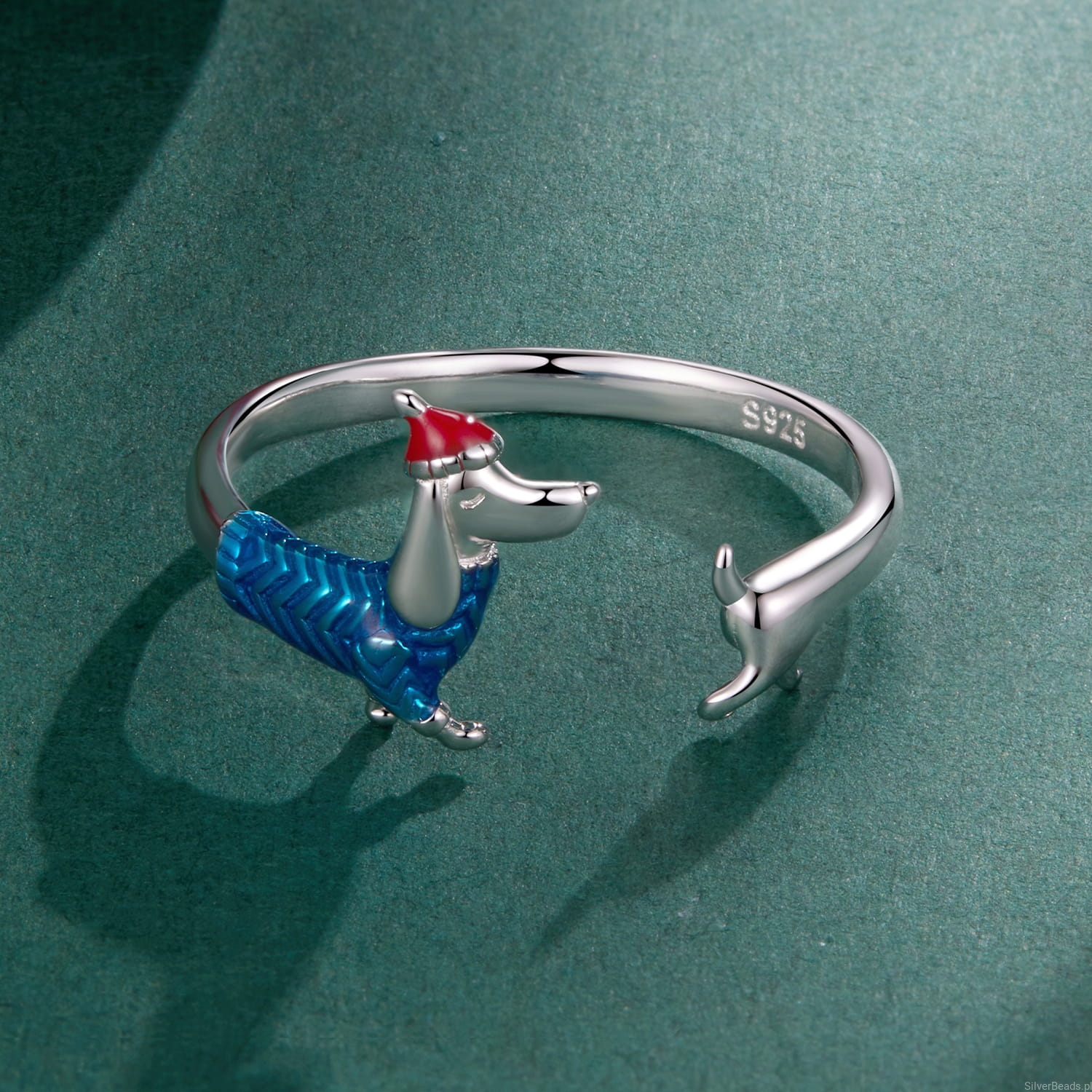 Srebrny regulowany pierścionek świąteczny jamnik.