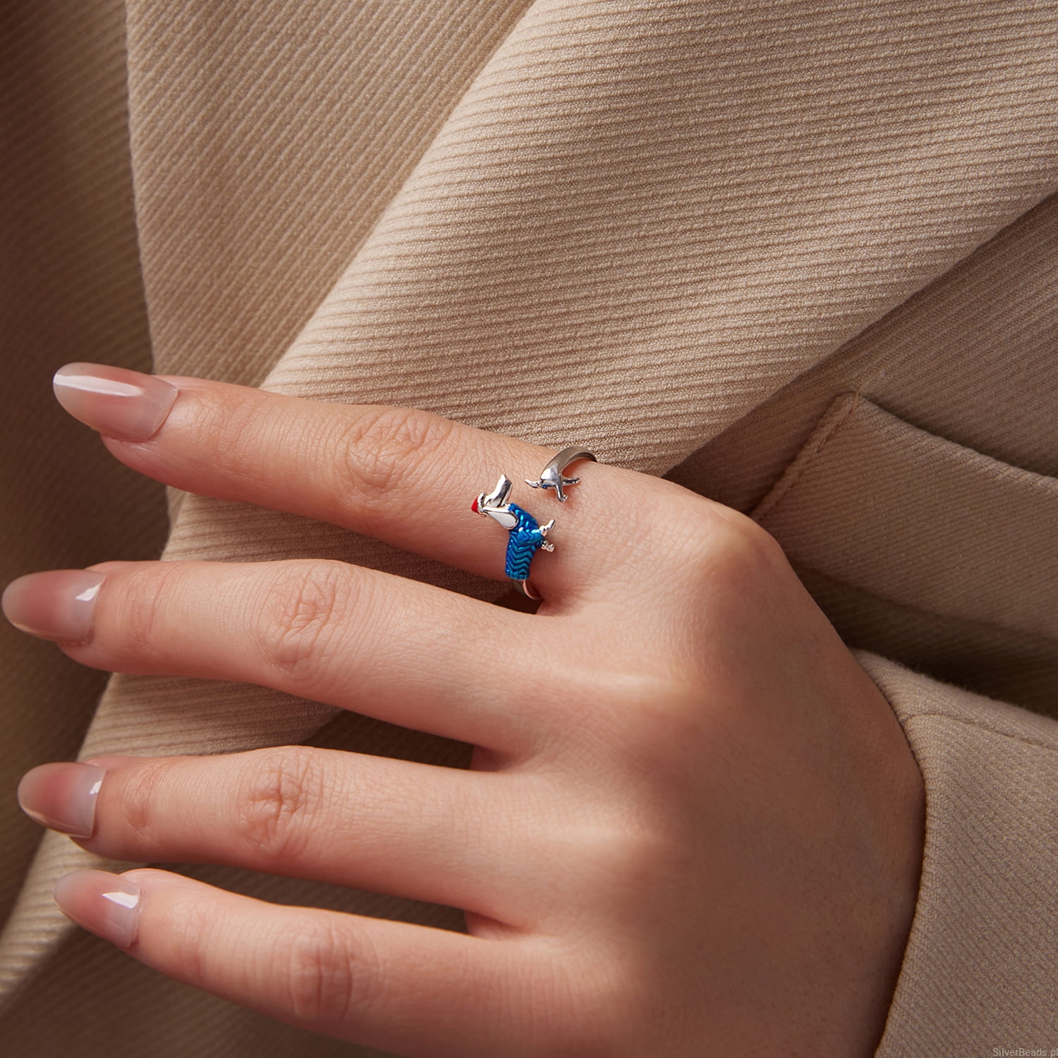 Srebrny pierścionek regulowany ŚWIĄTECZNY JAMNIK srebro 925