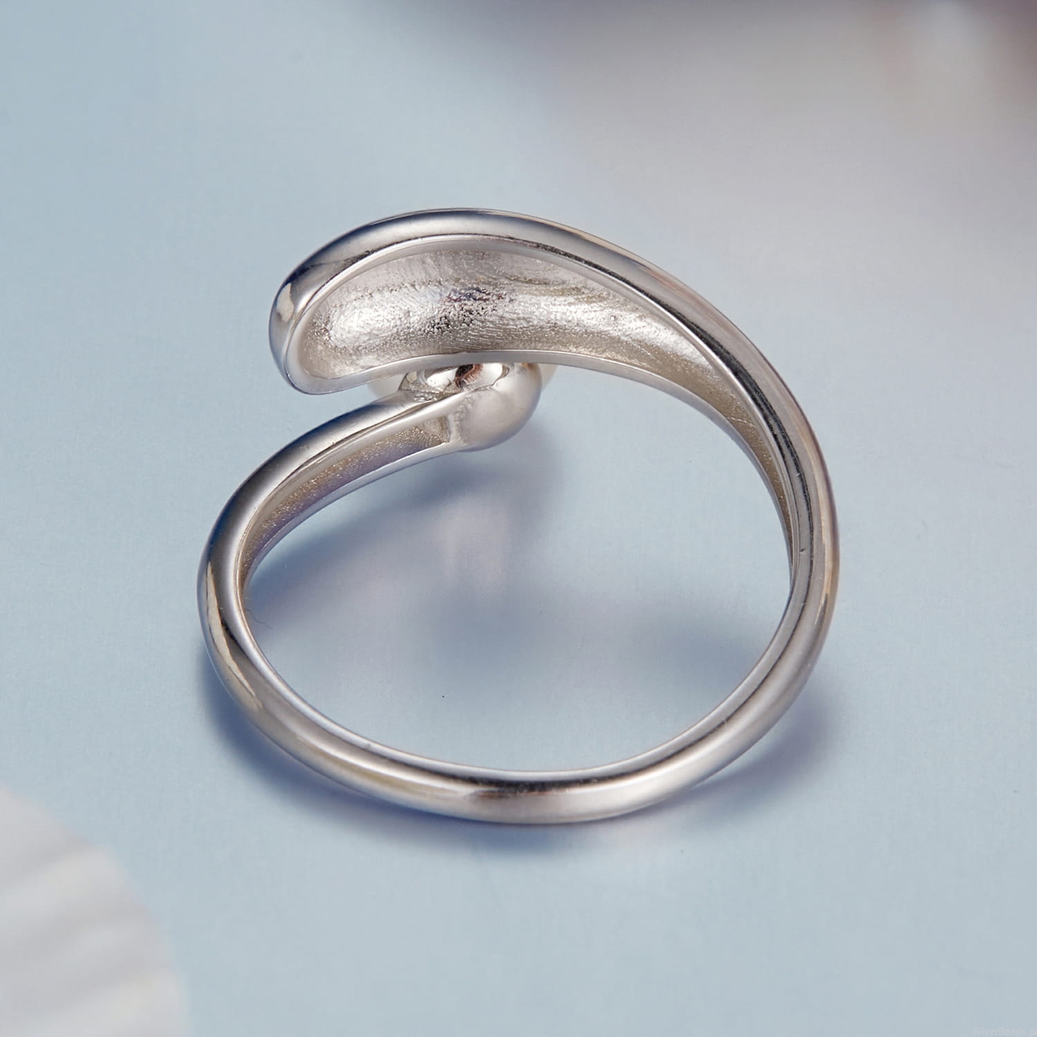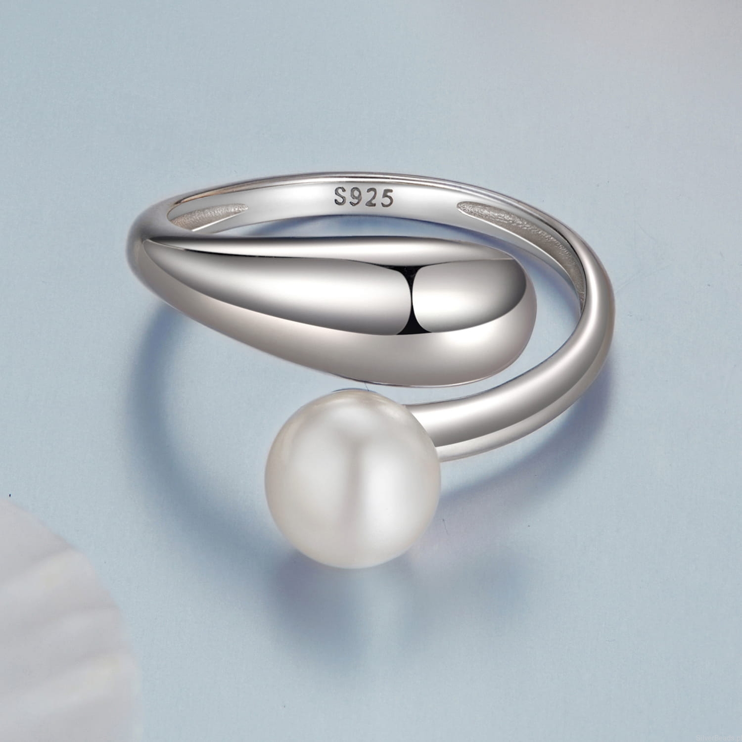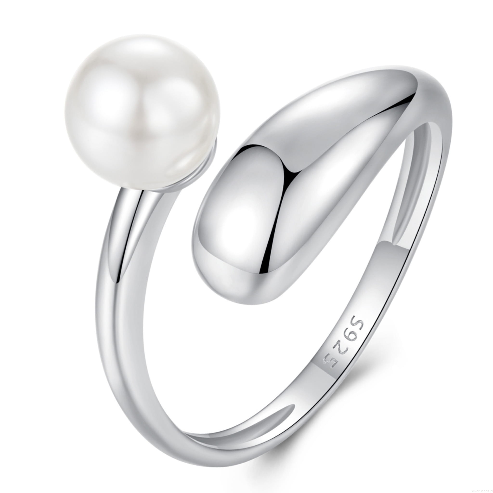 Srebrny pierścionek regulowany łezka z perełką srebro 925