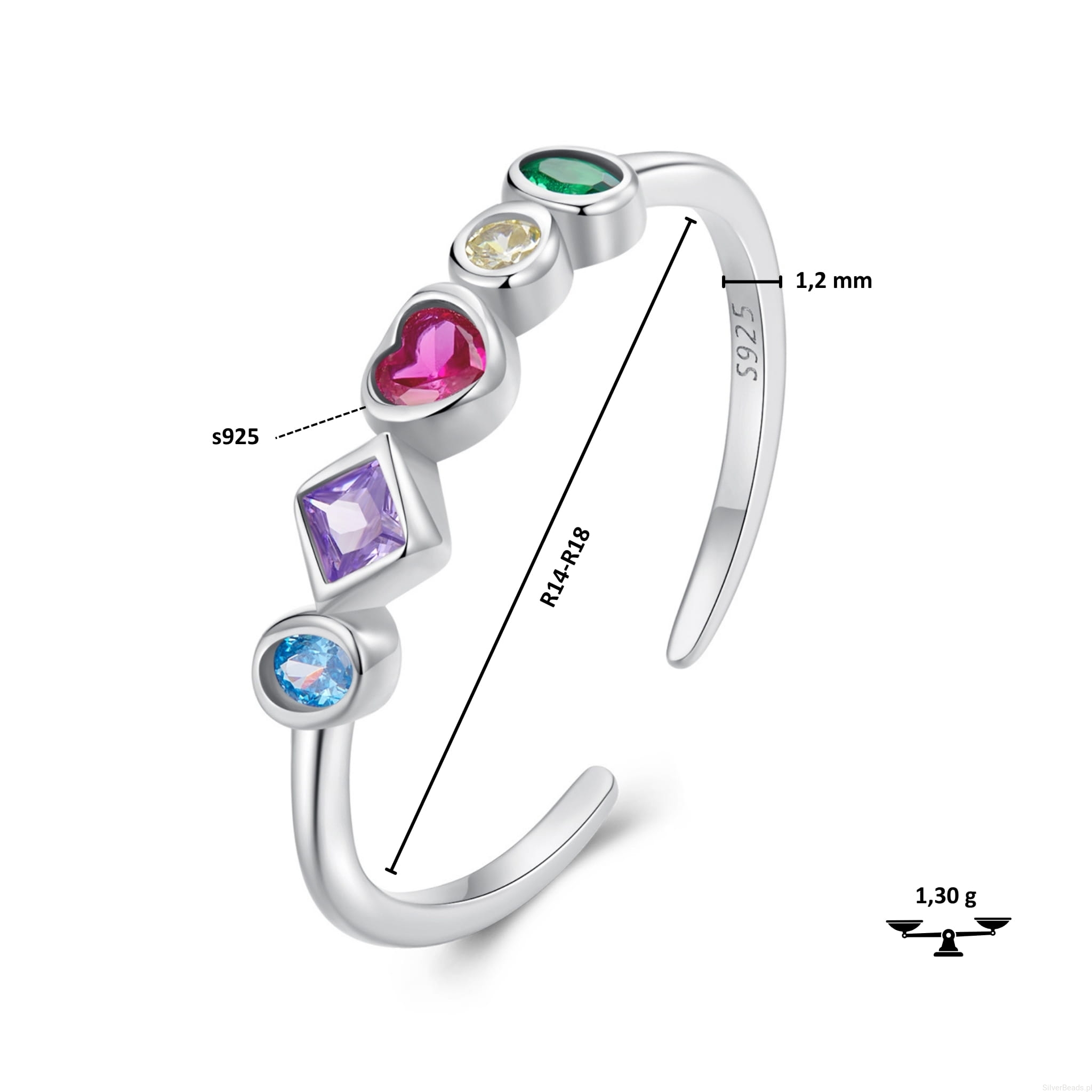 • grubość pierścionka: 1,2 mm