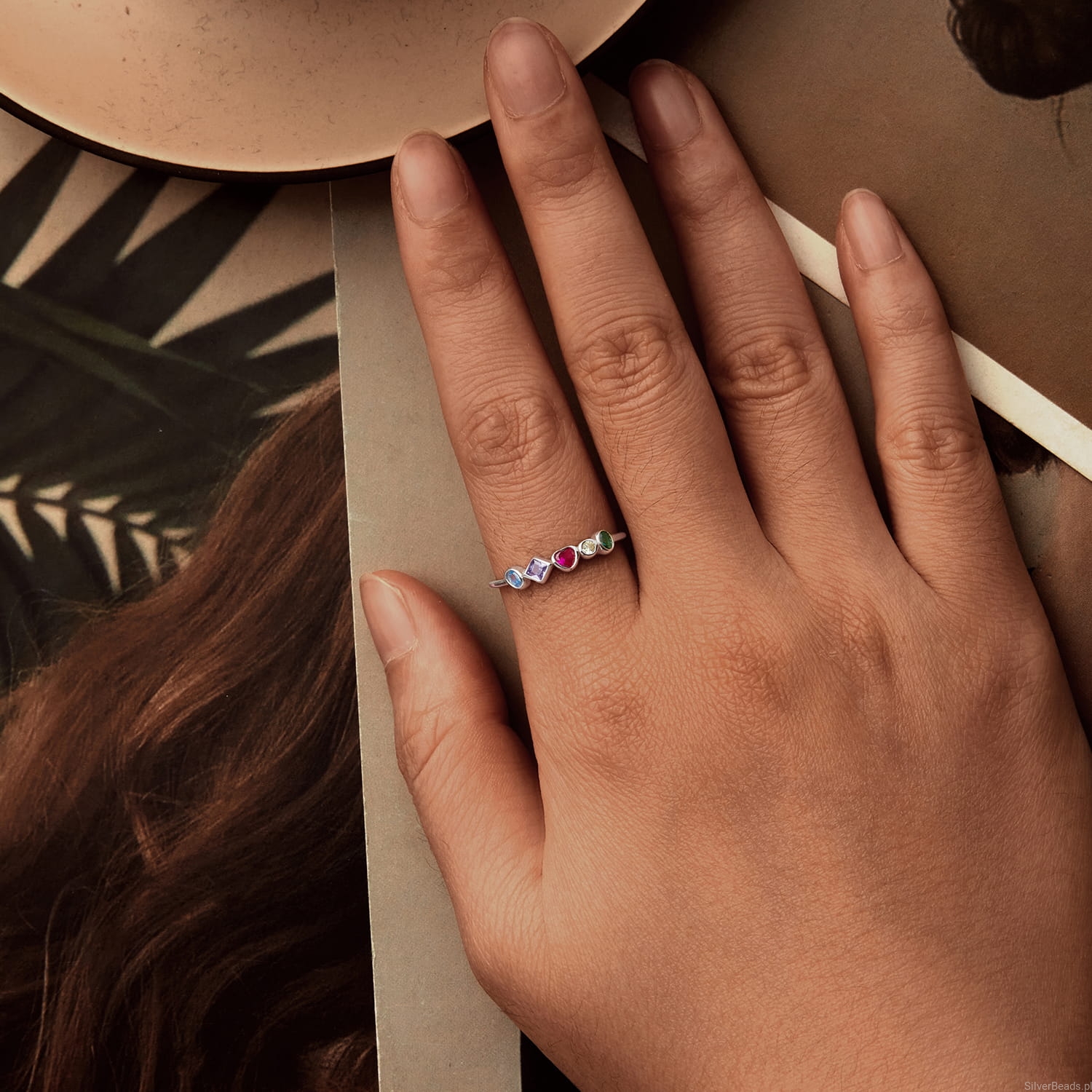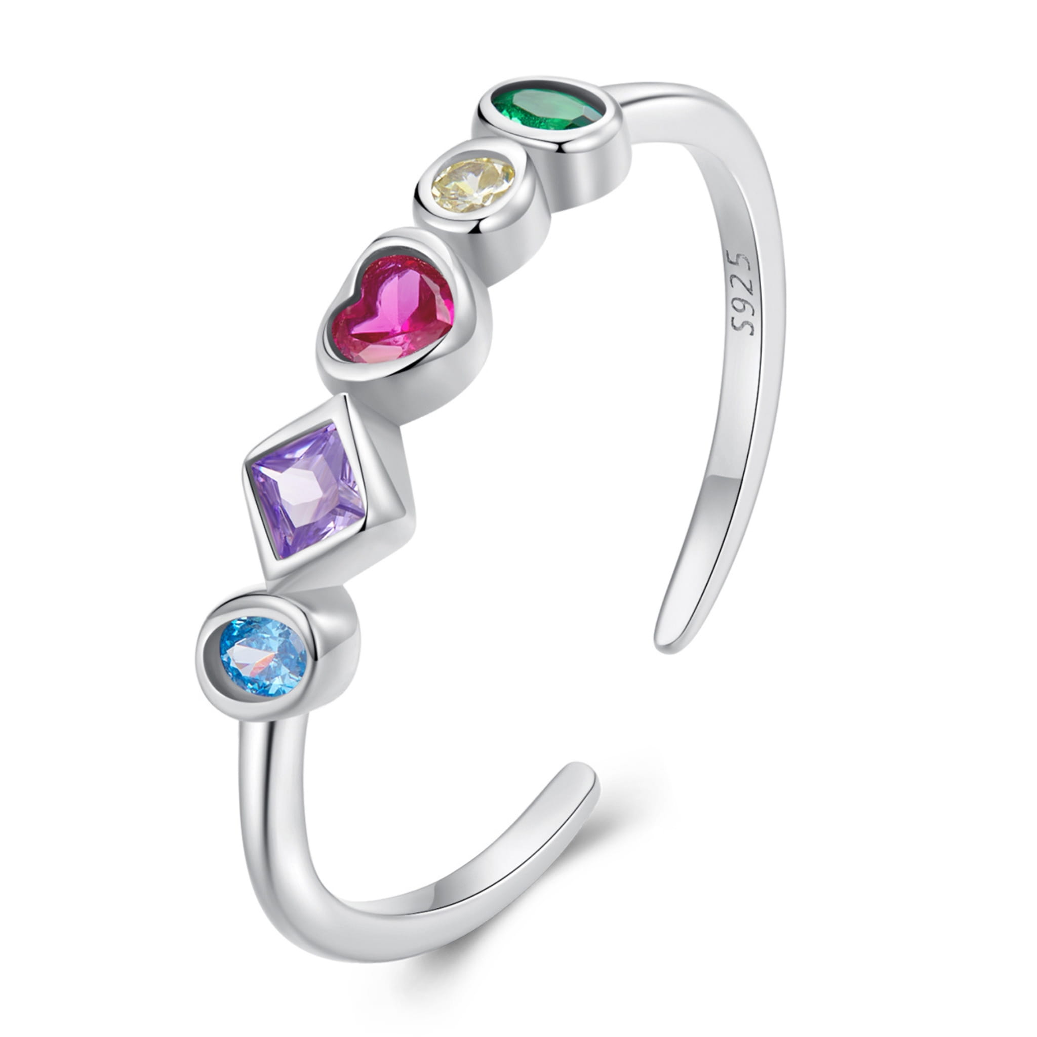 Pierścionek z wielobarwnymi kamieniami symbolizuje radość życia, różnorodność emocji i harmonię między energią a spokojem. Każdy kolor ma swoje znaczenie – róż symbolizuje miłość i wrażliwość, fiolet duchowość, błękit spokój, zieleń równowagę, a żółć optymizm i ciepło. Wspólnie tworzą pełnię emocji, przypominając o pięknie codziennych chwil i sile indywidualności. Ten srebrny pierścionek z kolorowymi cyrkoniami to manifest wolności, pewności siebie i pozytywnej energii – idealny dla kobiet, które kochają życie w pełnym kolorze.