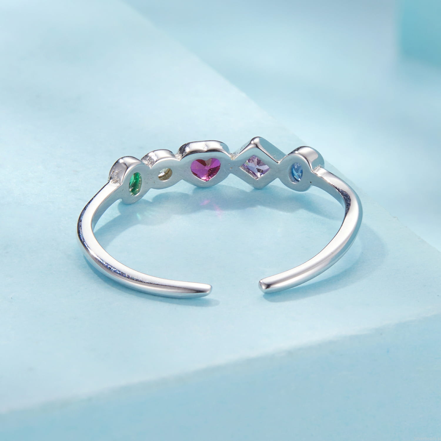 Srebrny pierścionek uniwersalny z kolorowymi KRYSZTAŁAMI srebro 925