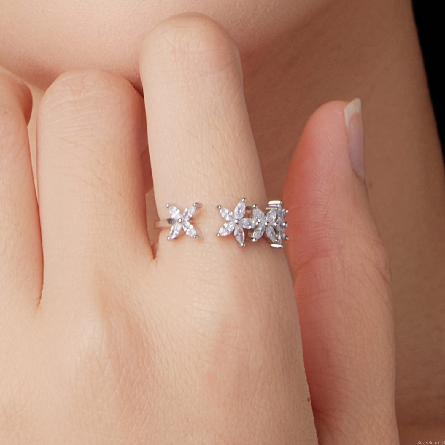 Srebrny pierścionek uniwersalny ze lśniącymi KWIATAMI srebro 925