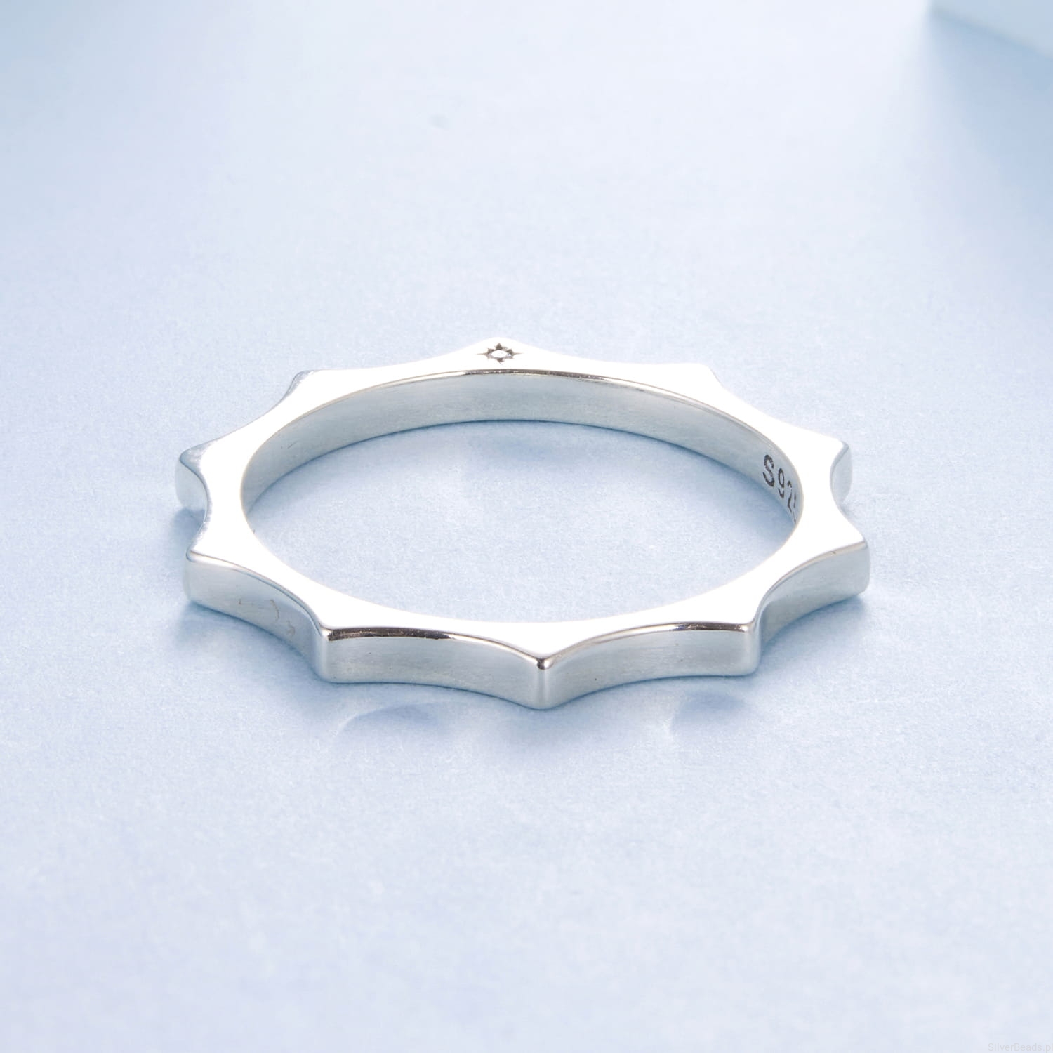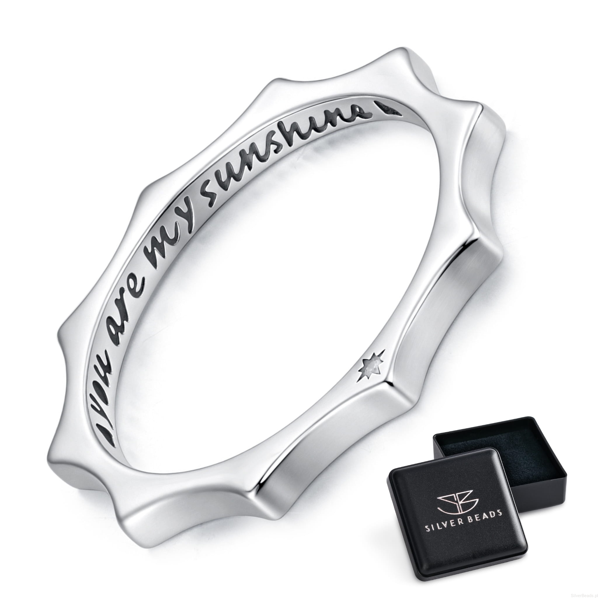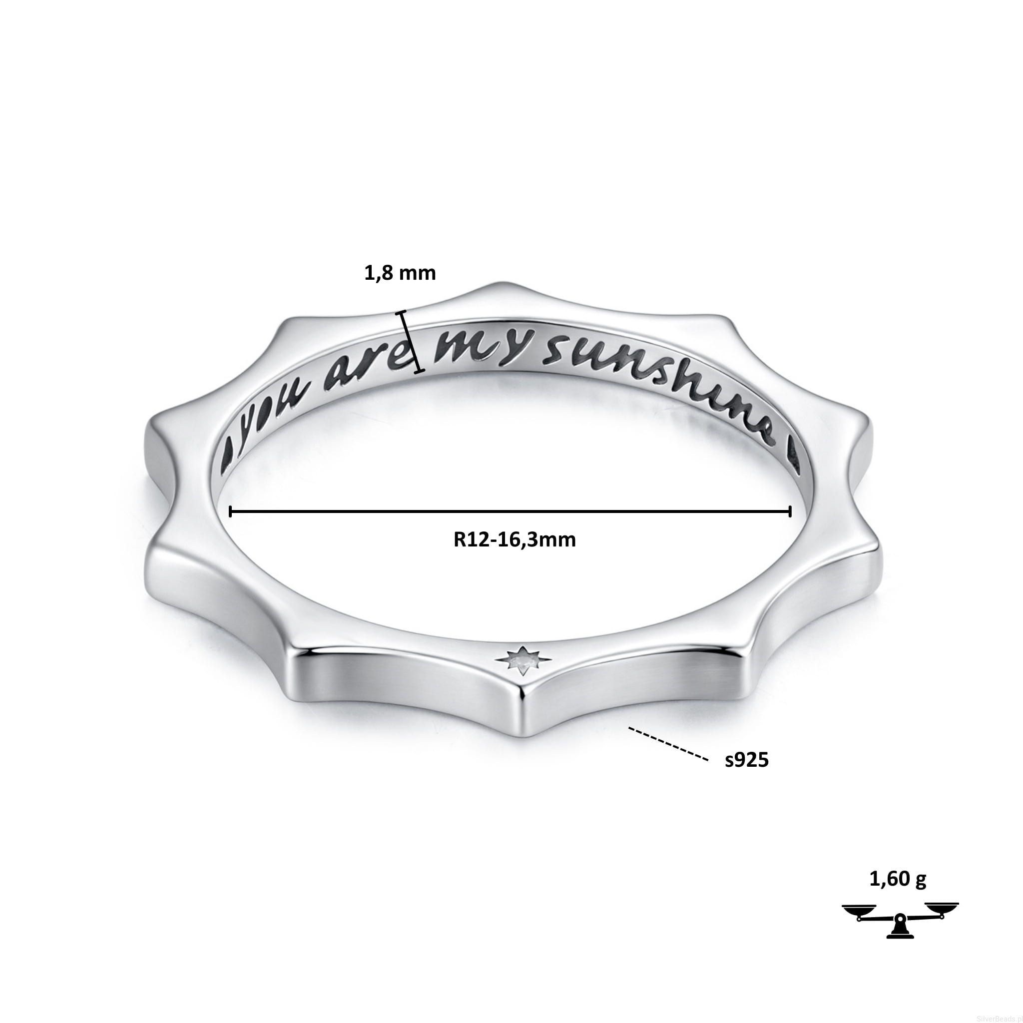 Srebrny pierścionek o kształcie promieni słońca skrywa wewnętrzny grawer z napisem „You are my sunshine”. Wykonany ze srebra próby 925, łączy minimalistyczny design z osobistym przesłaniem. To doskonały symbol ciepła, bliskości i pozytywnej energii – idealny na prezent dla kogoś wyjątkowego.