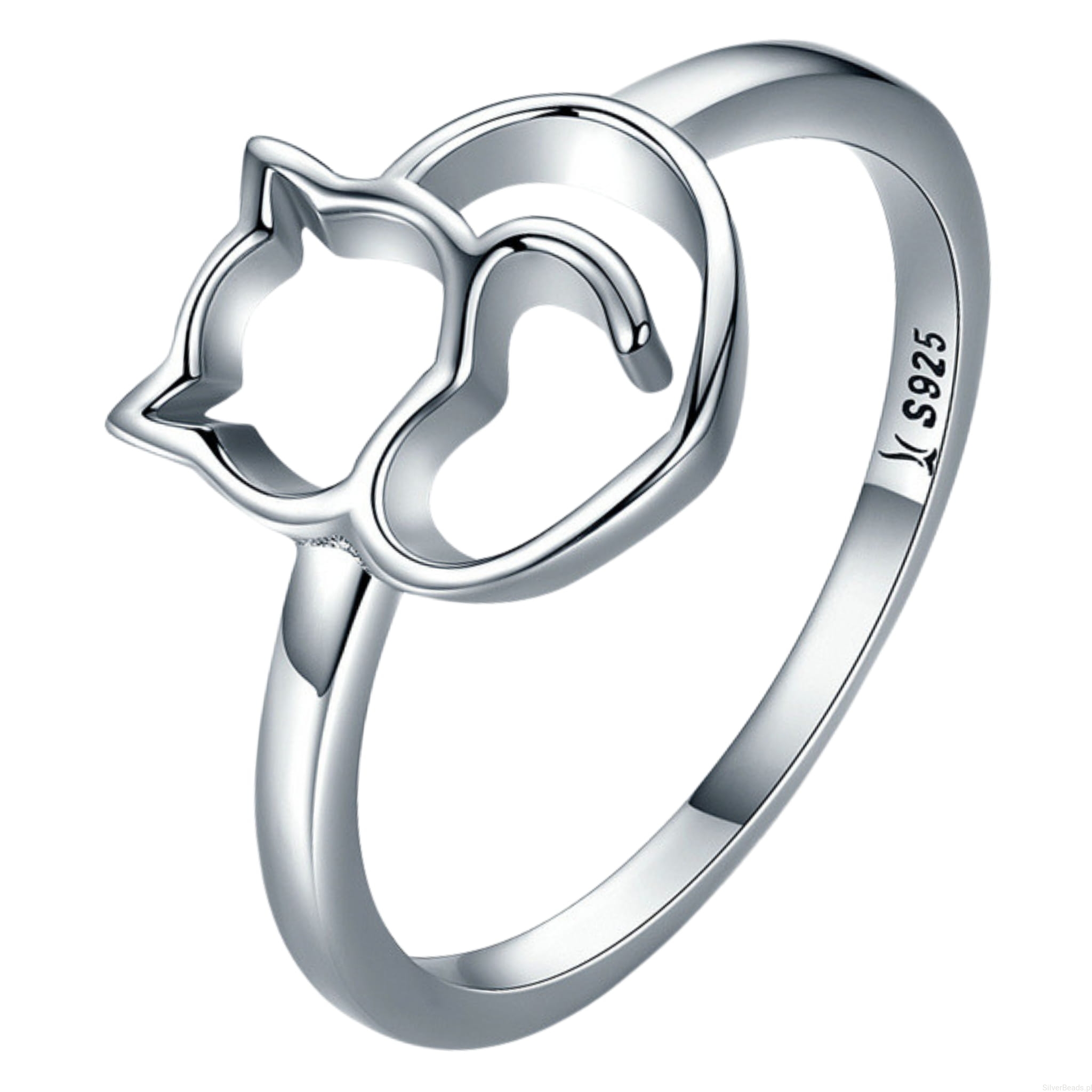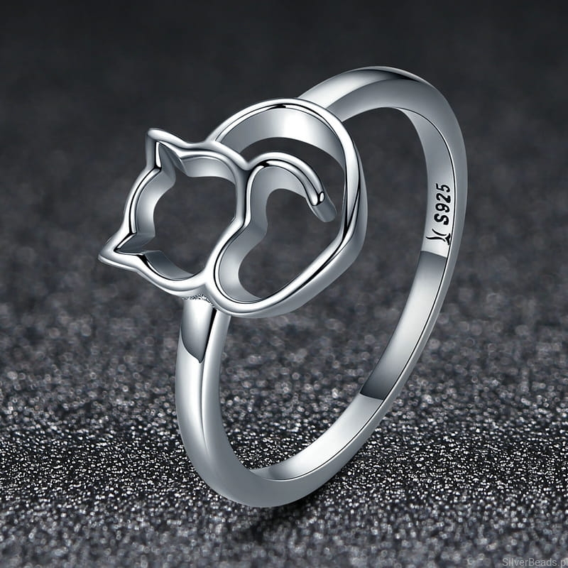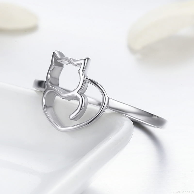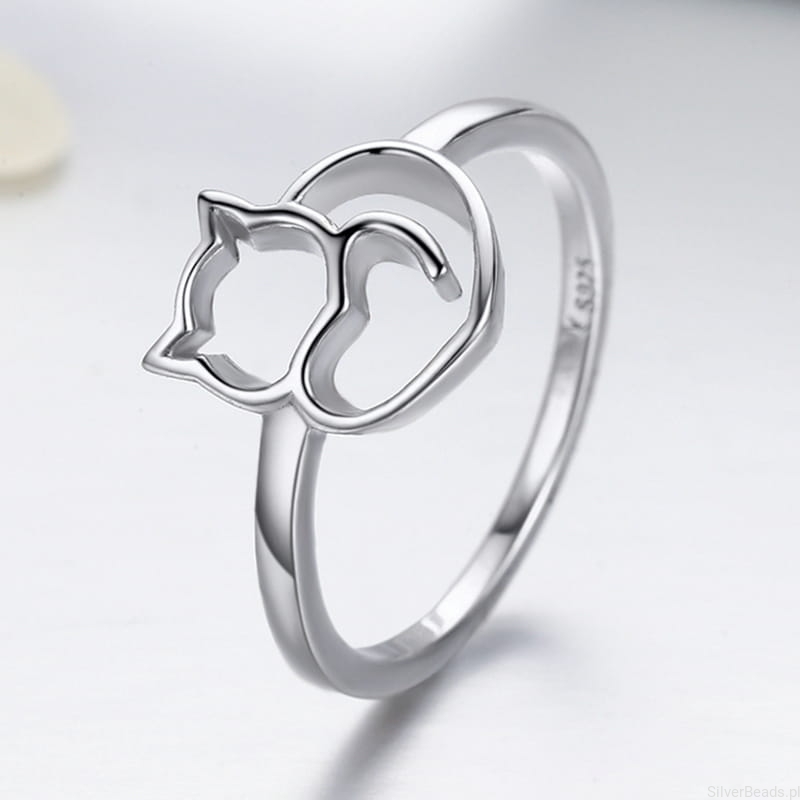 Srebrny pierścionek z kotem.