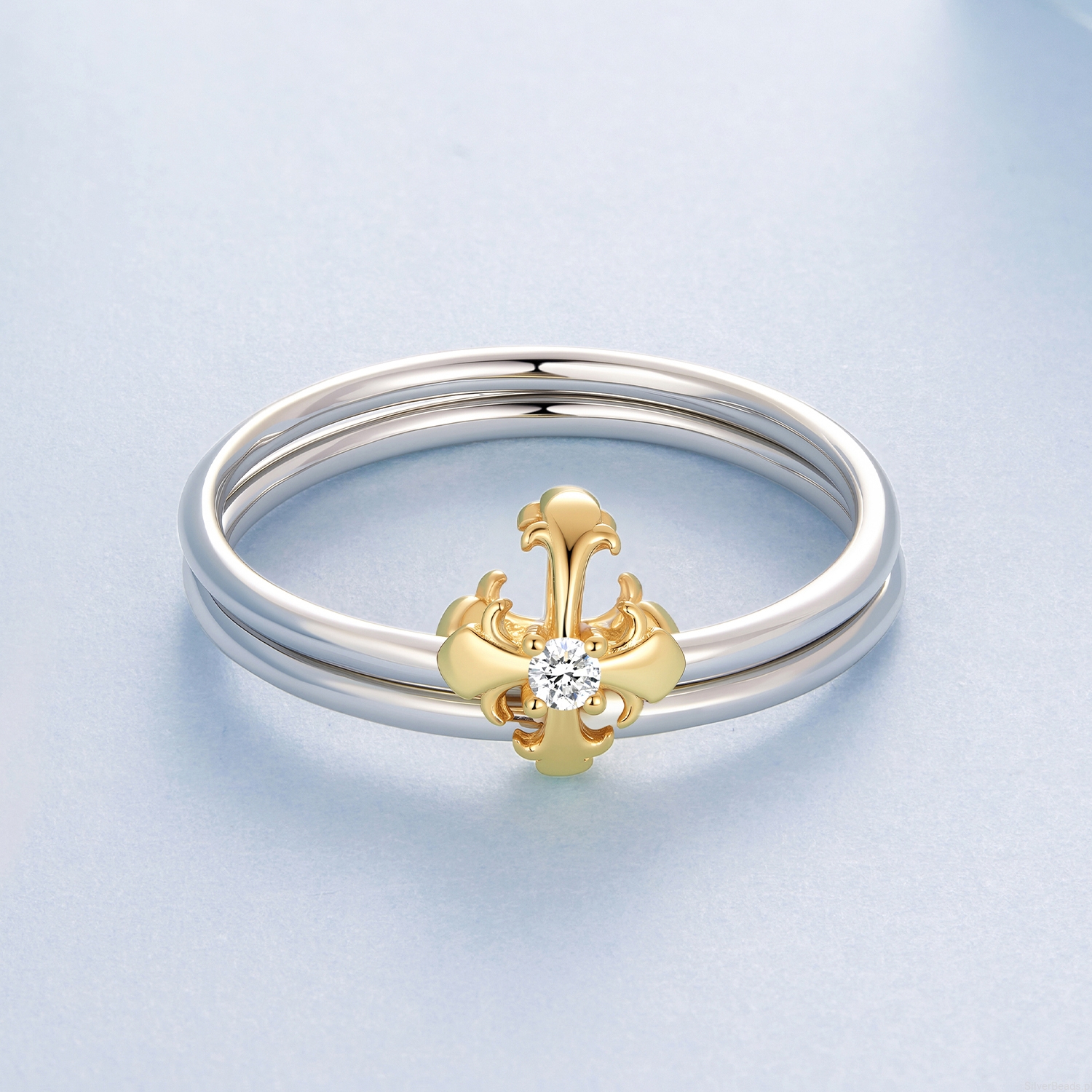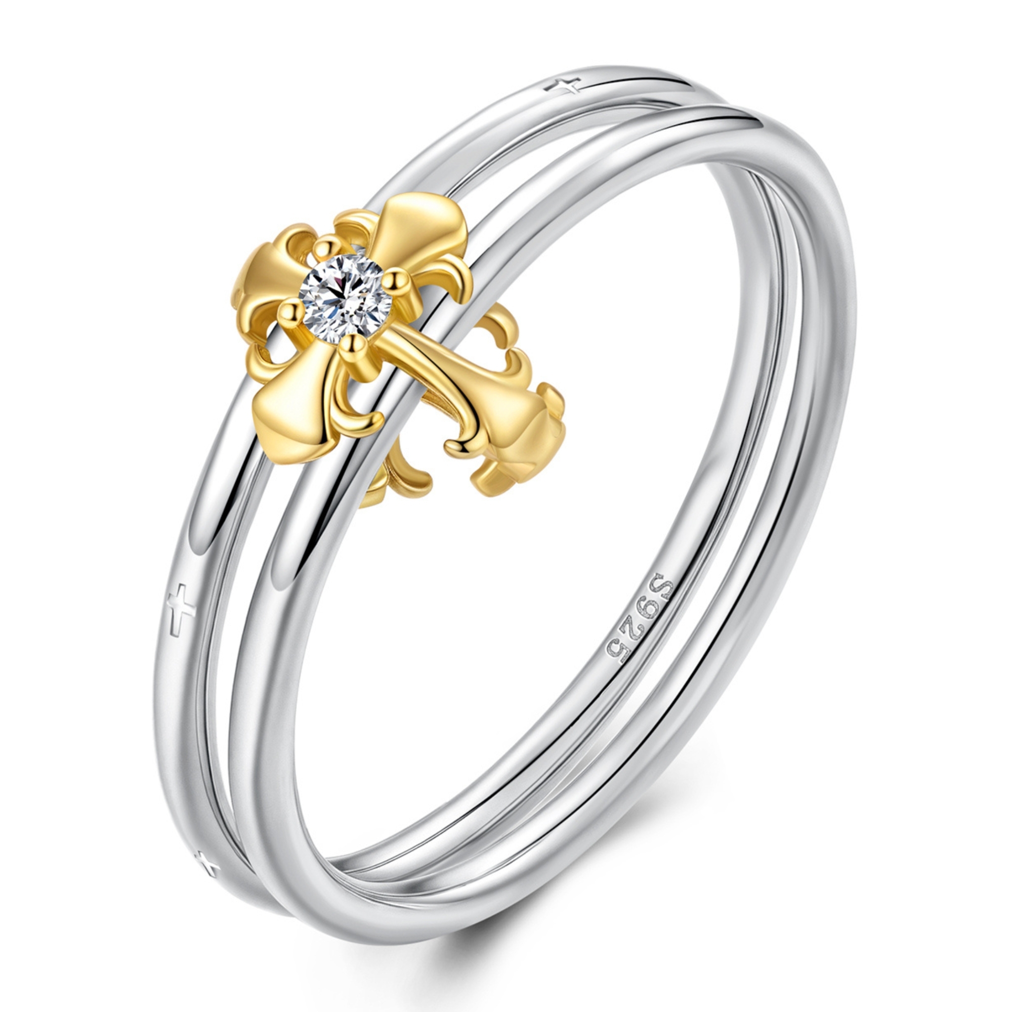 Srebrny pierścionek z pozłacanym krzyżykiem.