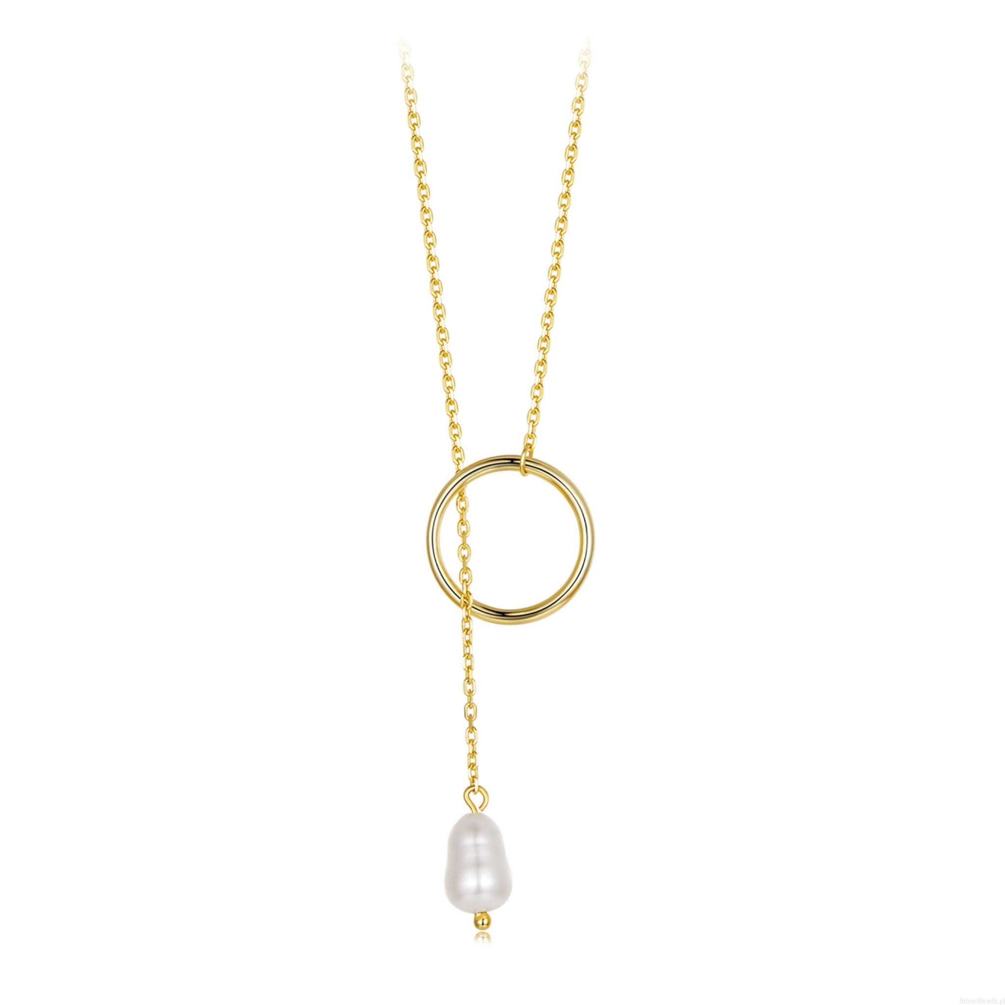 Srebrny pozłacany naszyjnik kółko z perłą srebro 925